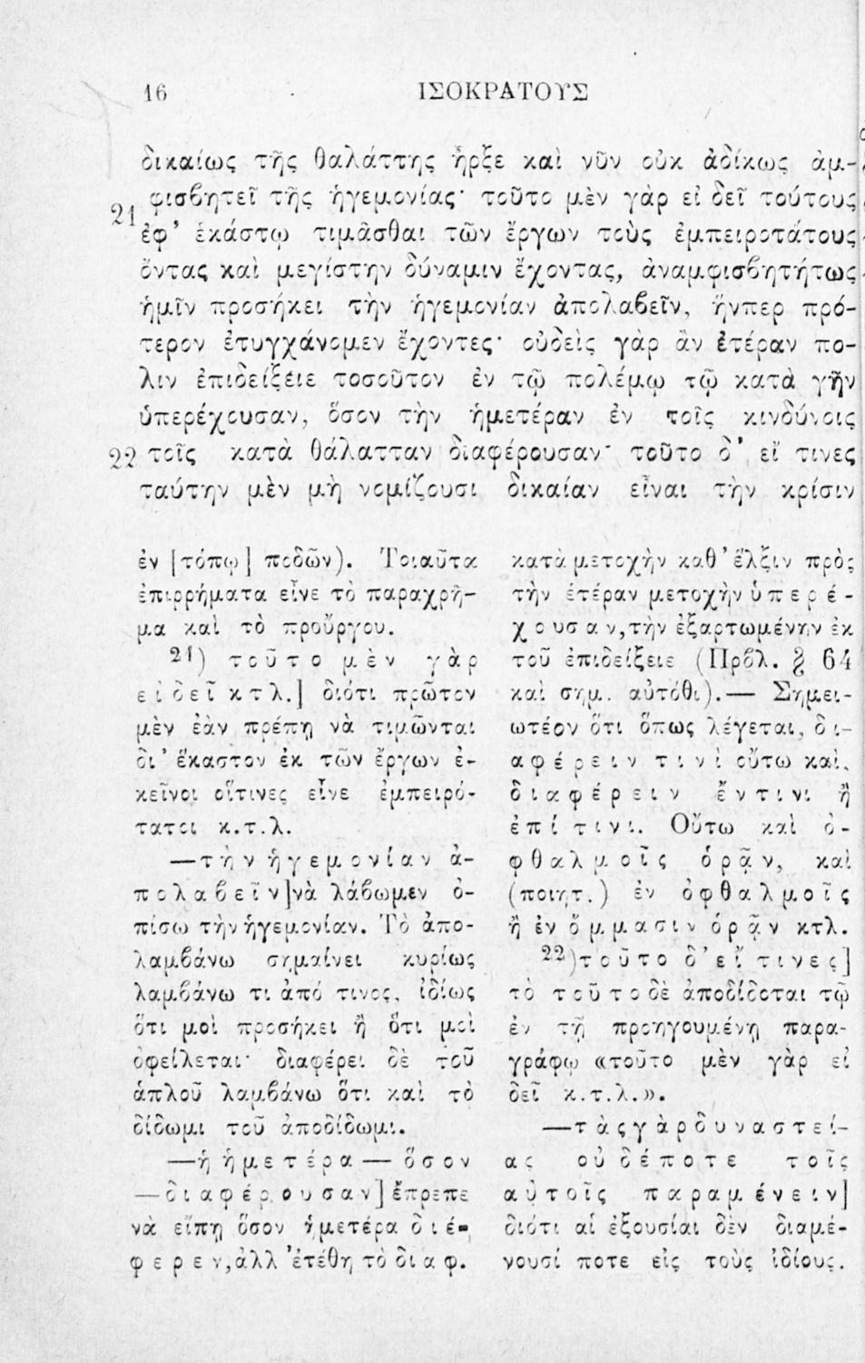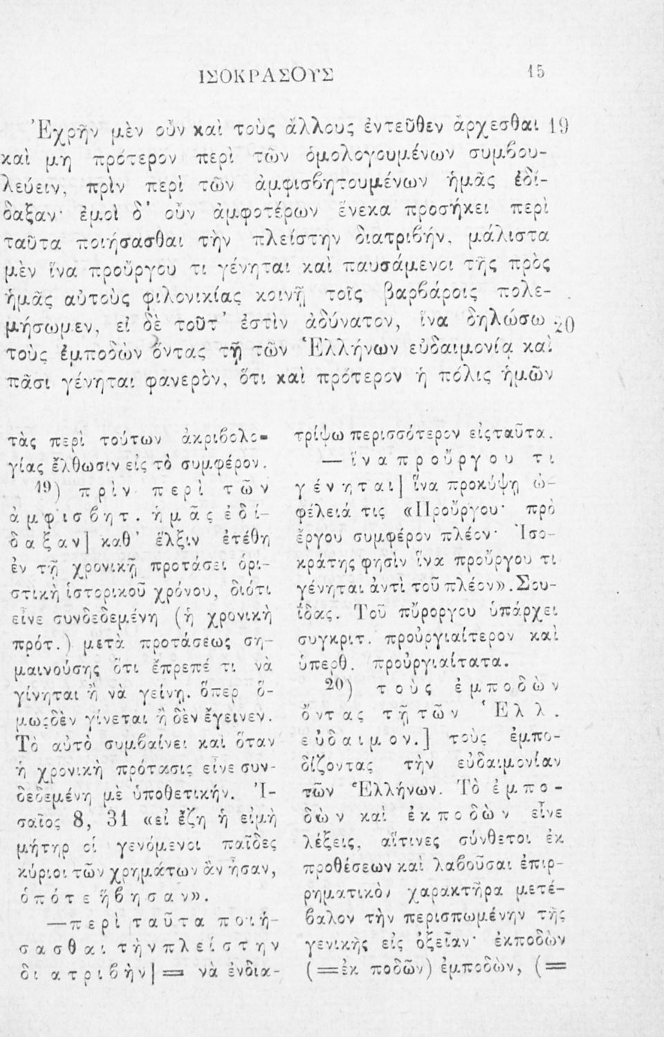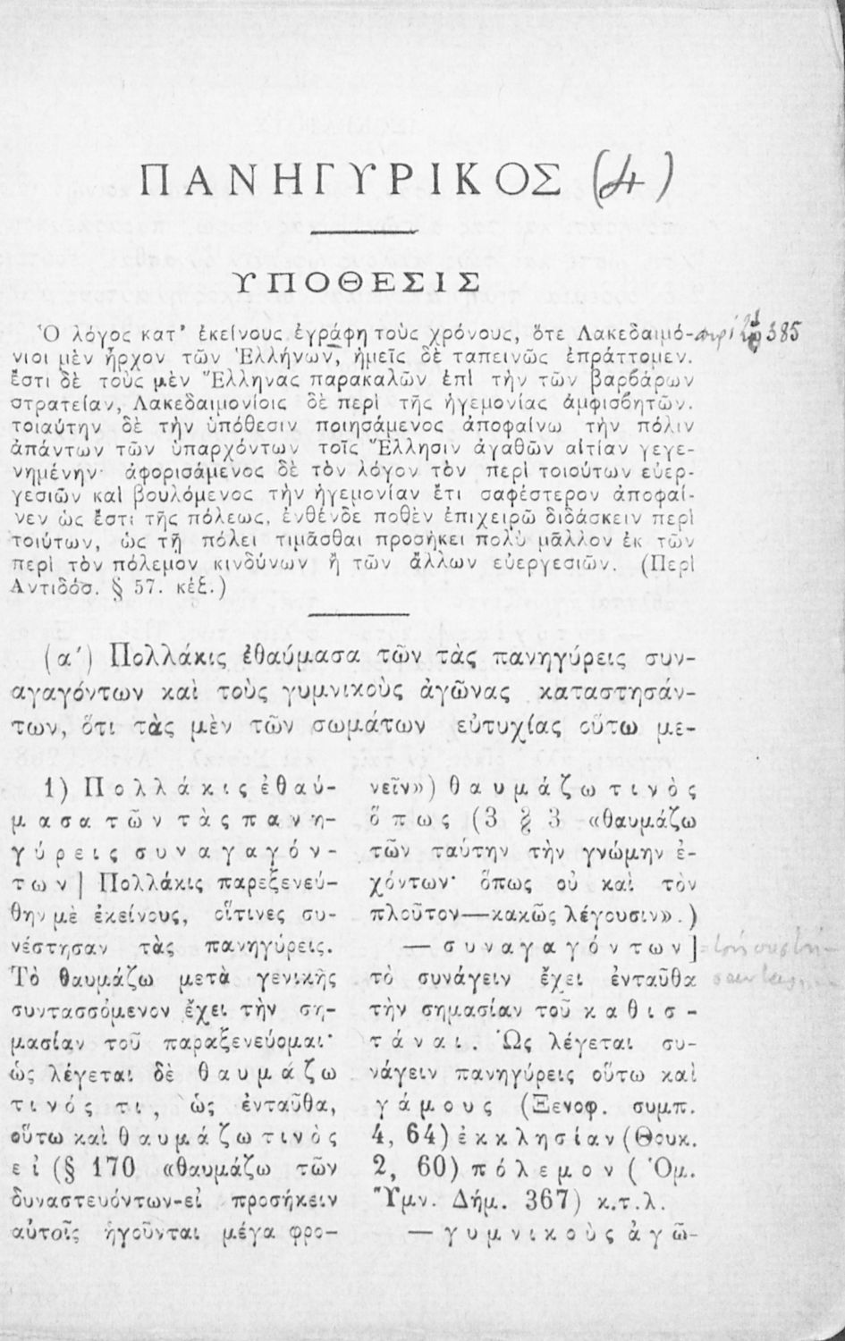 Σχολικό εγχειρίδιο Αρχαίων Ελληνικών Β΄ Γυμνασίου που περιλαμβάνει τους Λόγους του Ισοκράτη Πανηγυρικός και Αρεοπαγίτικος και ερμηνευτικά σχόλια.