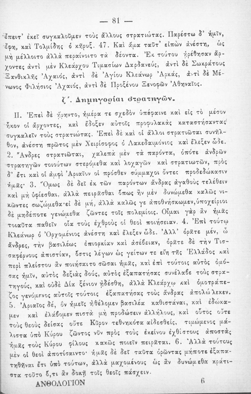 Ανθολόγιον ήτοι εκλογή κειμένου εκ των ομαλών πεζογράφων της αρχαίας γλώσσης προς χρήσιν της Ε΄ και ΣΤ΄ τάξεως των πλήρων σχολείων