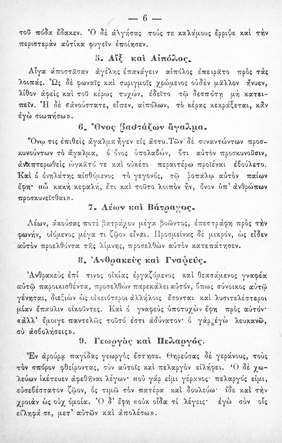 Σχολικό εγχειρίδιο Αρχαίων Ελληνικών Ε΄ και ΣΤ΄ Δημοτικού που περιλαμβάνει μύθους του Αισώπου, Θηβαϊκούς μύθους, αποφθέγματα και αποσπάσματα από την Κύρου Ανάβαση του Ξενοφώντα..