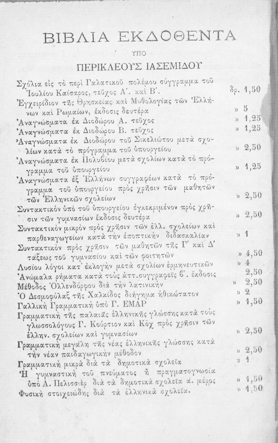 Σχολικό εγχειρίδιο Αρχαίων Ελληνικών για τα Ελληνικά Σχολεία και Παρθεναγωγεία που αποτελεί γραμματική της αρχαίας ελληνικής και είναι χωρισμένο σε φθογγολογικό, τυπολογικό και ετυμολογικό μέρος.