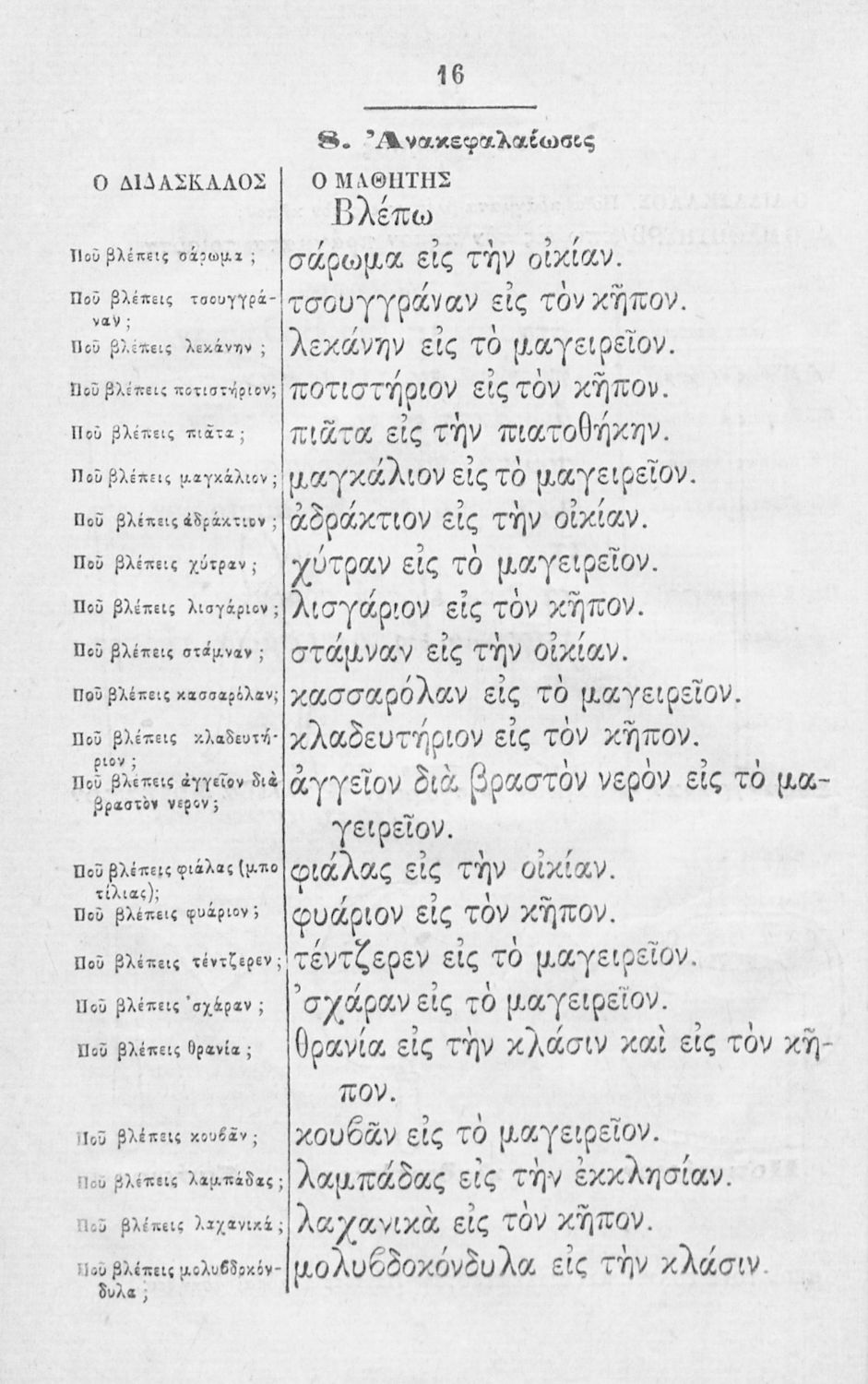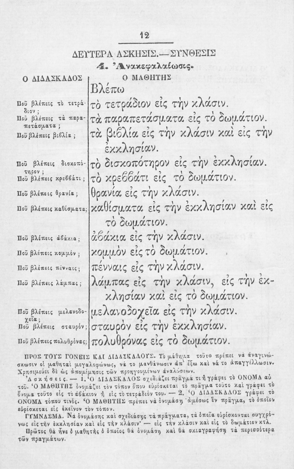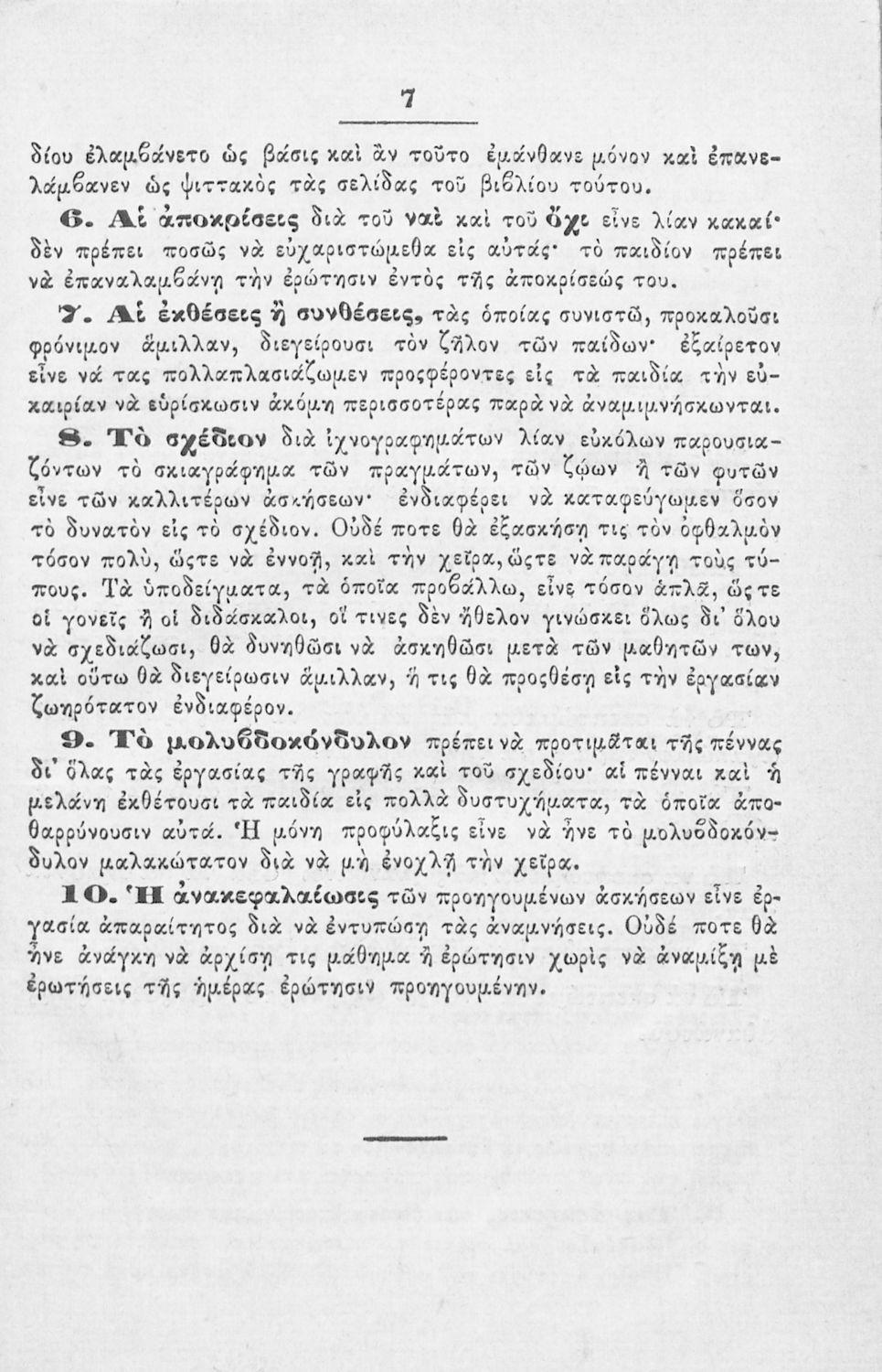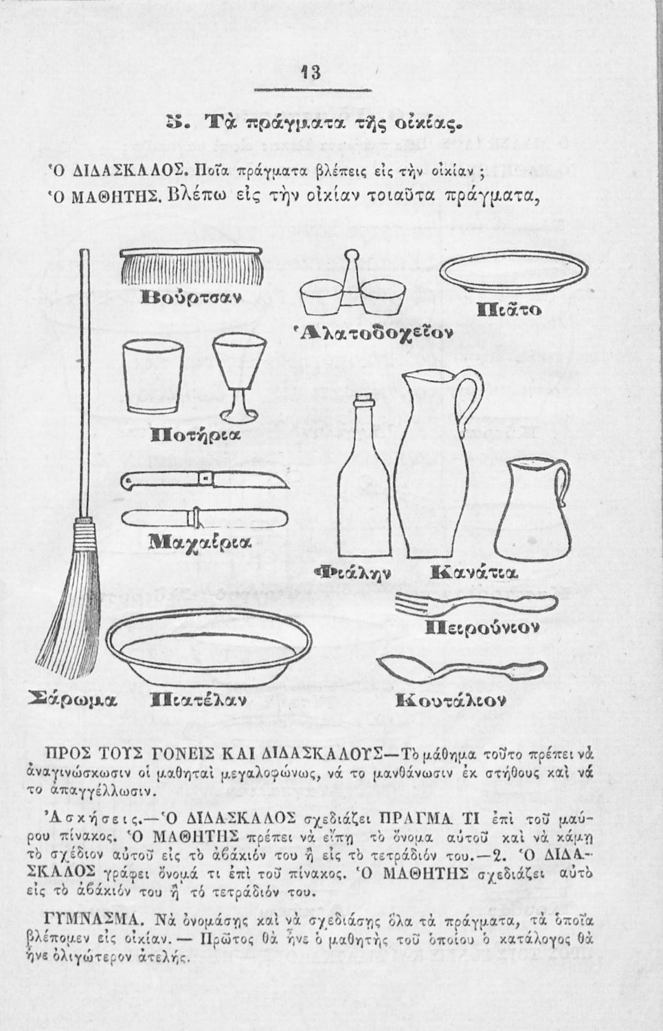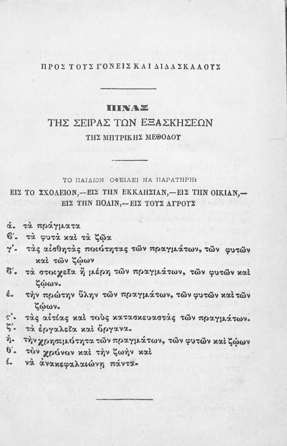 Κωδικός αναγνώρισης: 02-02263 Τίτλος: Η γυμναστική του πνεύματος, (μέθοδος μητρική), μέρος πρώτον, γνώσις των πραγμάτων, φυτών και ζώων, υποδείγματα και αντικείμενα ασκήσεων προφορικών και εγγράφων δια τα πενταετή και οκταετή παιδία Συγγραφέας: A. Pellissier Μέγεθος και υπόστρωμα: Παιδαγωγικό βοήθημα, σκληρό εξώφυλλο, 110 σελίδες. Σκίτσα (ασπρόμαυρα). |