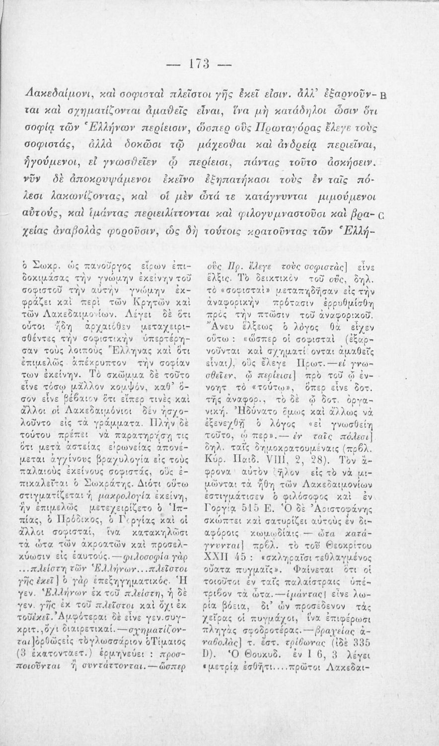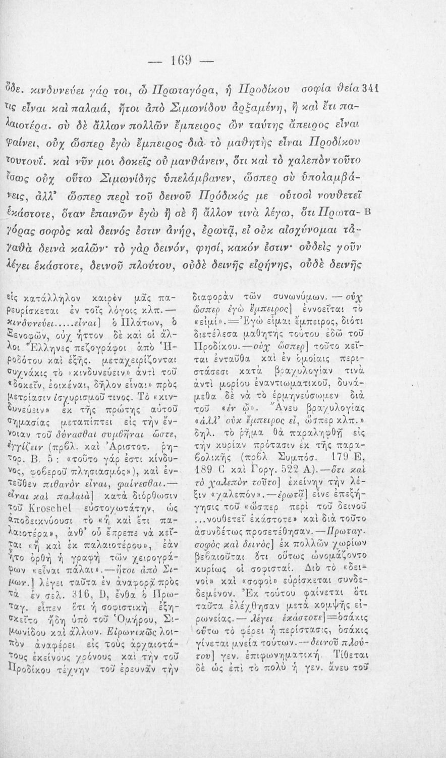Φιλολογική μελέτη που περιλαμβάνει εισαγωγή στη φιλοσοφία των σοφιστών και τη σχέση τους με το Πλάτωνα, τον διάλογο Πρωταγόρας και ερμηνευτικές σημειώσεις.