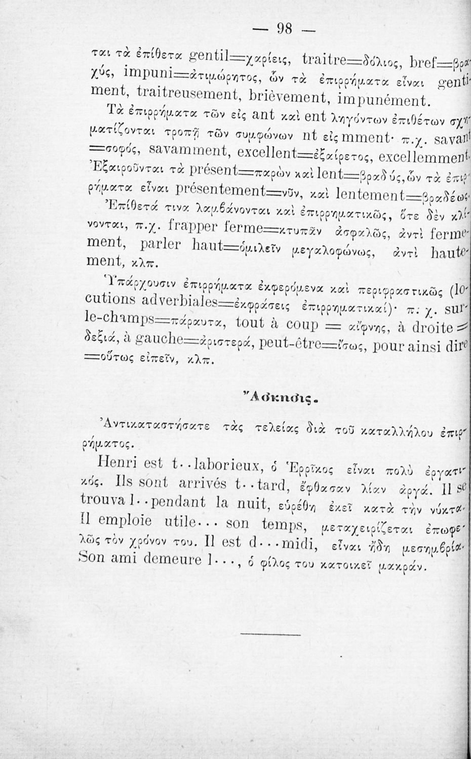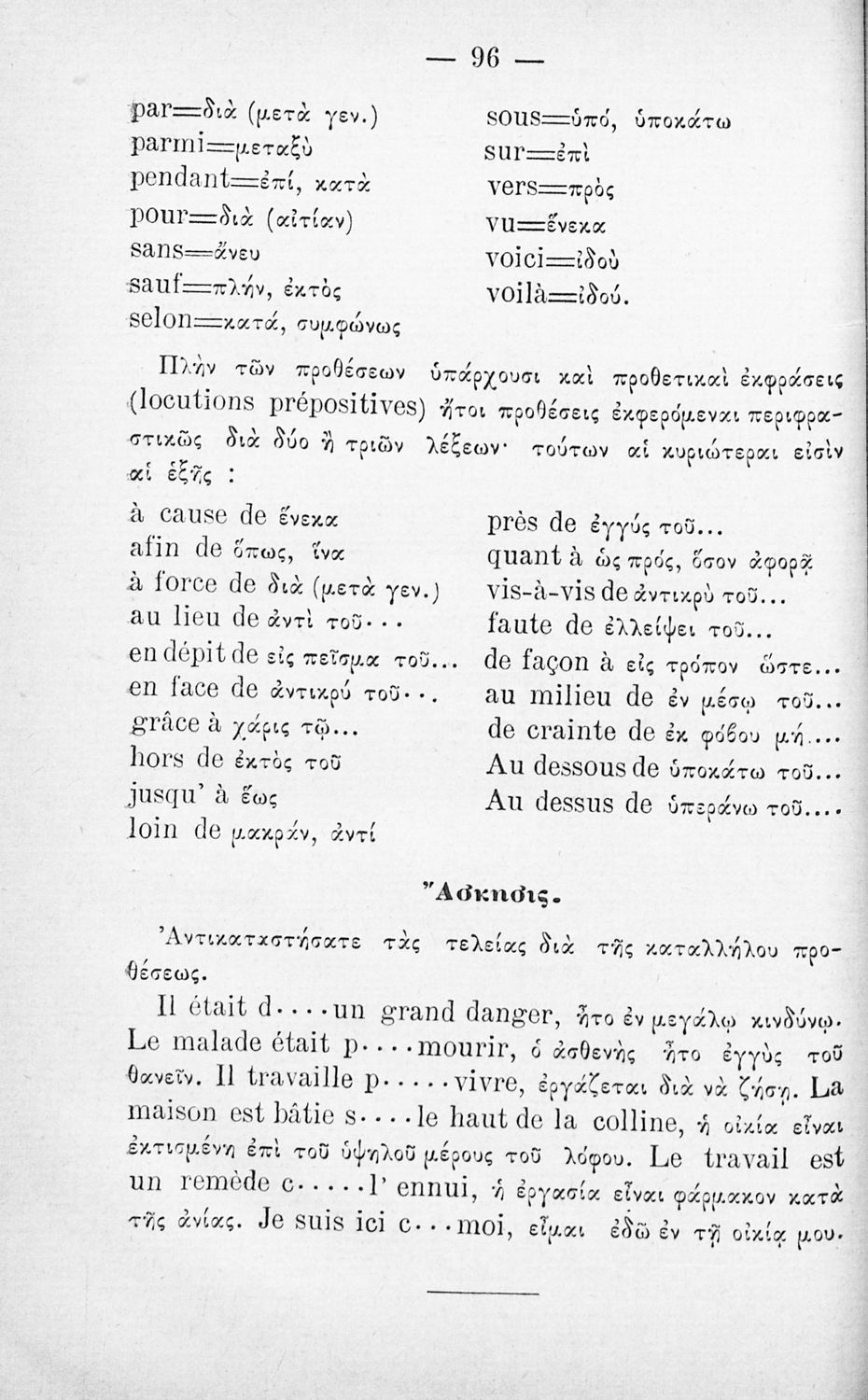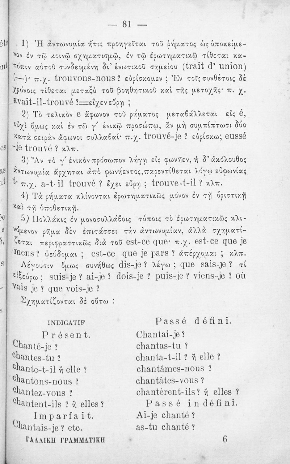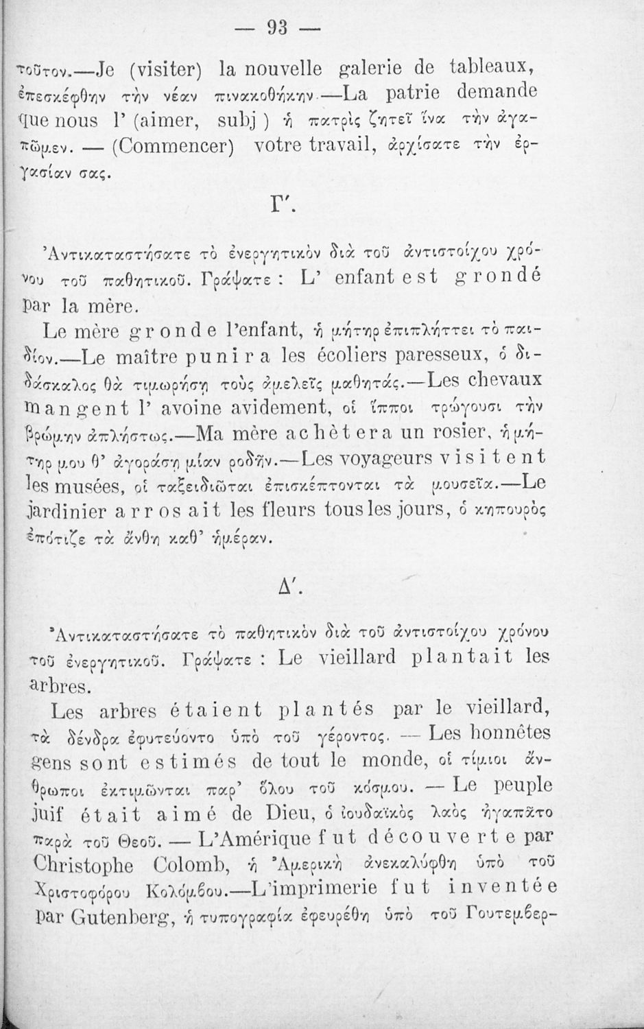 Στοιχειώδης γραμματική της γαλλικής γλώσσης, Προς χρήσιν των Ελληνικών σχολείων