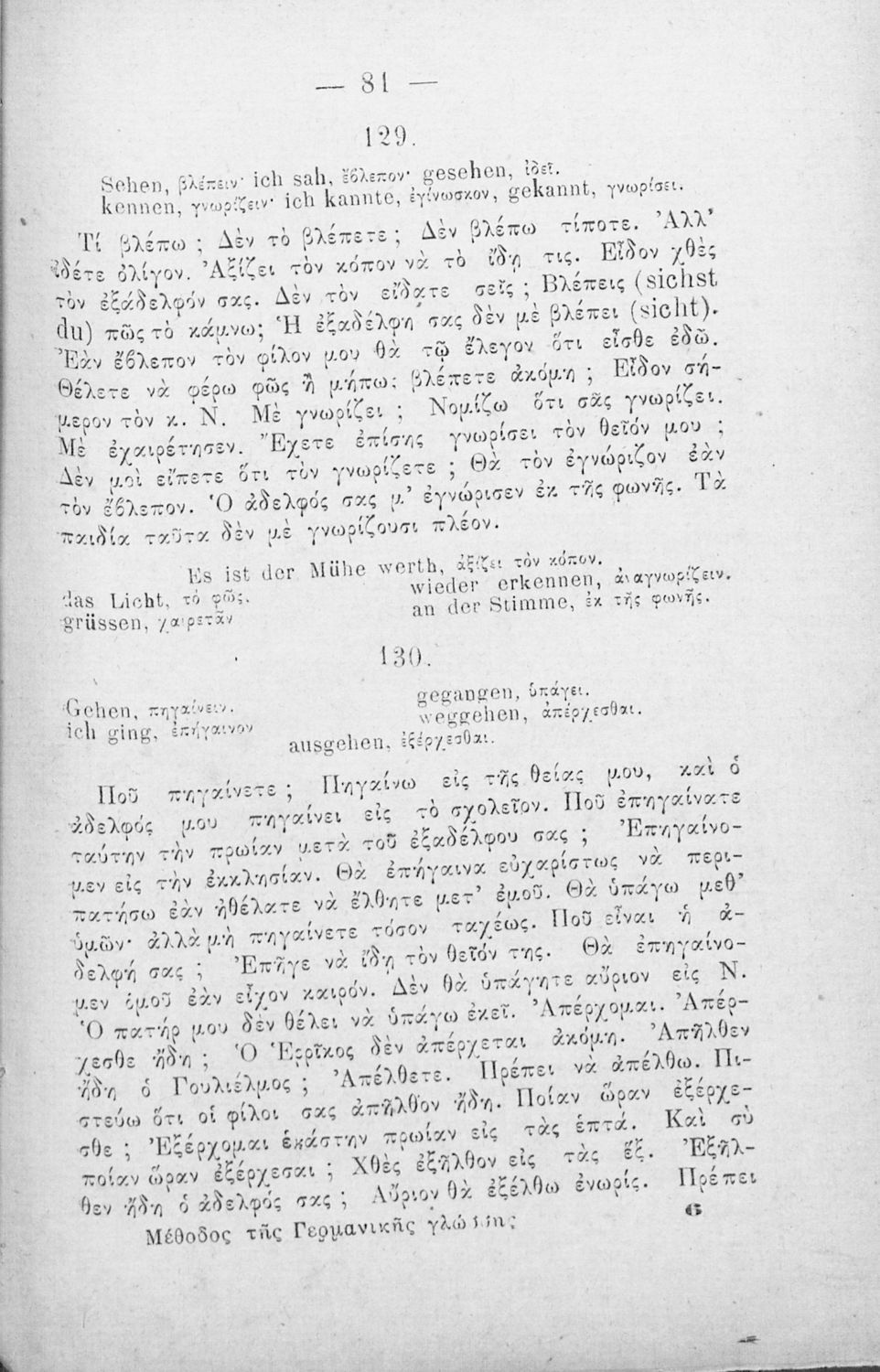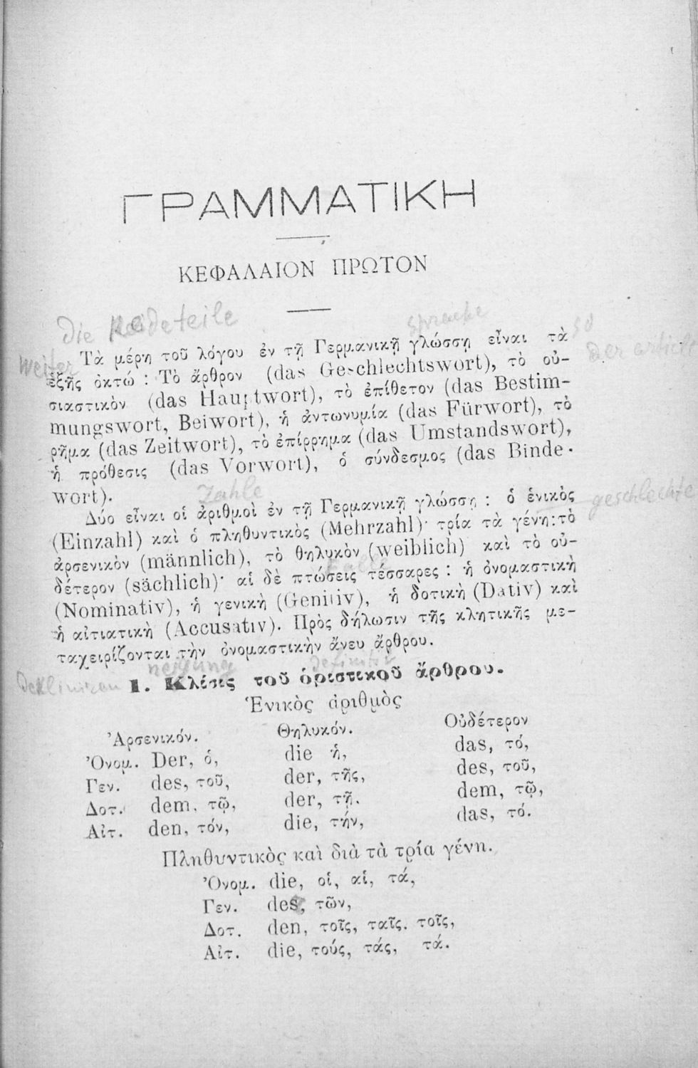 520 ## _aΠρόκειται για εγχειρίδιο που στόχο είχε την εκμάθηση των γραμματικών και συντακτικών φαινομένων της Γερμανικής γλώσσας με στόχο την ταχεία εκμάθησή της από Ελληνικό πληθυσμό. Φέρει λίγες προσωπικές σημειώσεις του μαθητή.