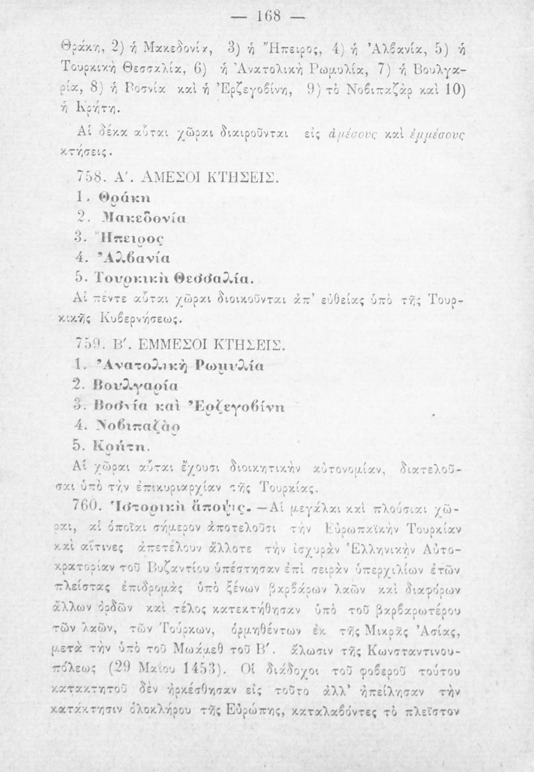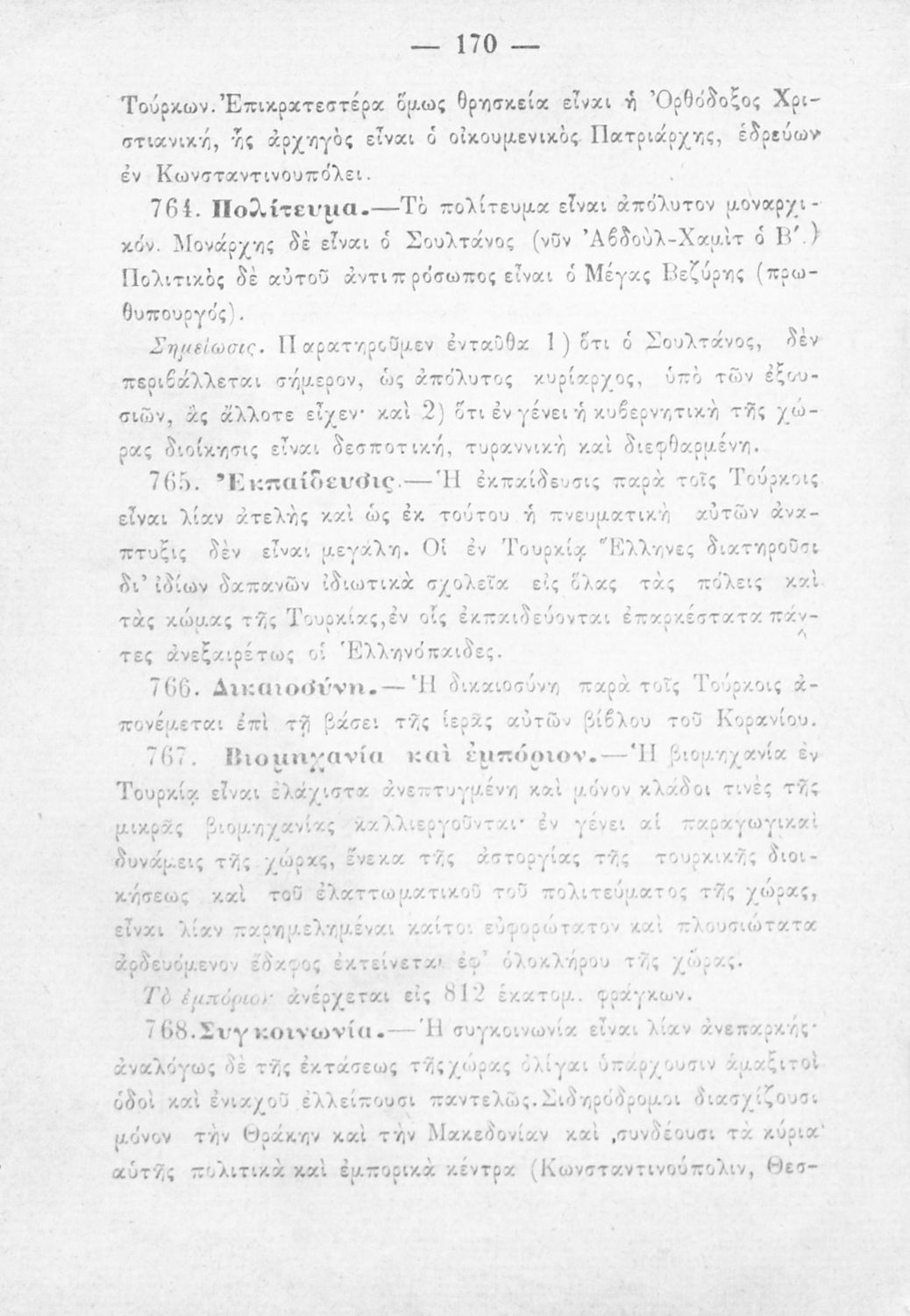 Σχολικό εγχειρίδιο Γεωγραφίας για τα Ελληνικά Σχολεία και Παρθεναγωγεία που περιλαμβάνει εισαγωγή στη φυσική, πολιτική και οικονομική γεωγραφία και μια γενική επισκόπηση της Ελλάδας και της Ευρωπαϊκής Τουρκίας ανά διαμέρισμα και νομό.
