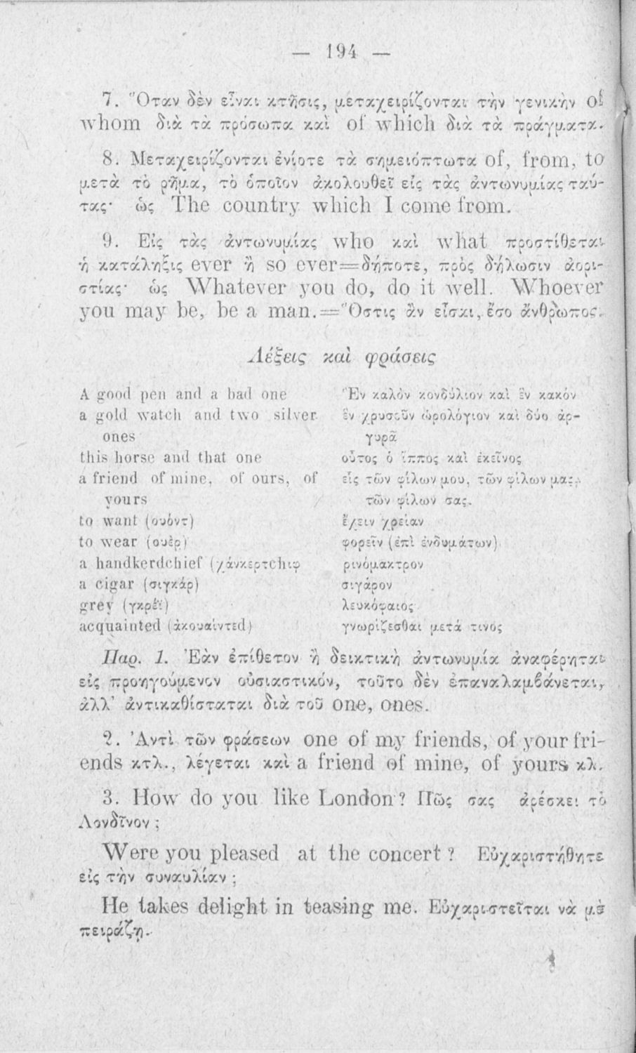 Σχετιζόμενοι όροι:  λεξιλόγιο, αντωνυμίες, ρήματα