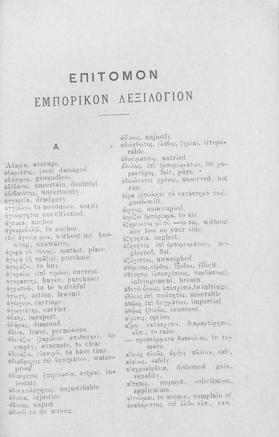 Γλώσσα: Αγγλικά / Καθαρεύουσα