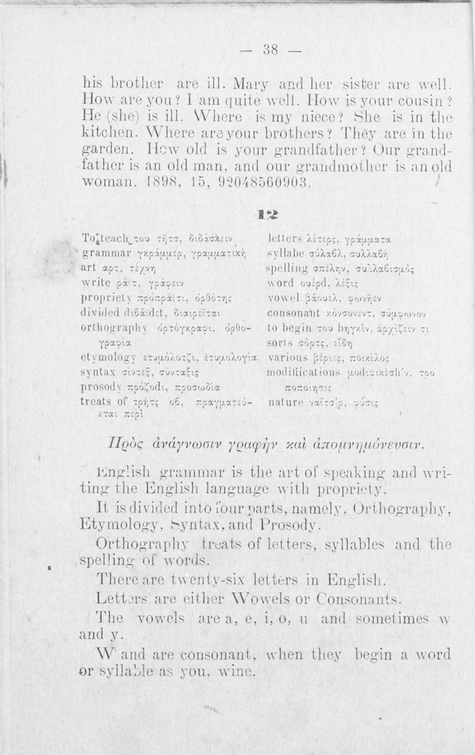 Τίτλος: Νεωτάτη μέθοδος προς ταχείαν εκμάθησιν της αγγλικής γλώσσης καταλλήλως διασκευασθείσα και επαυξηθείσα, προς χρήσιν των Ελλήνων