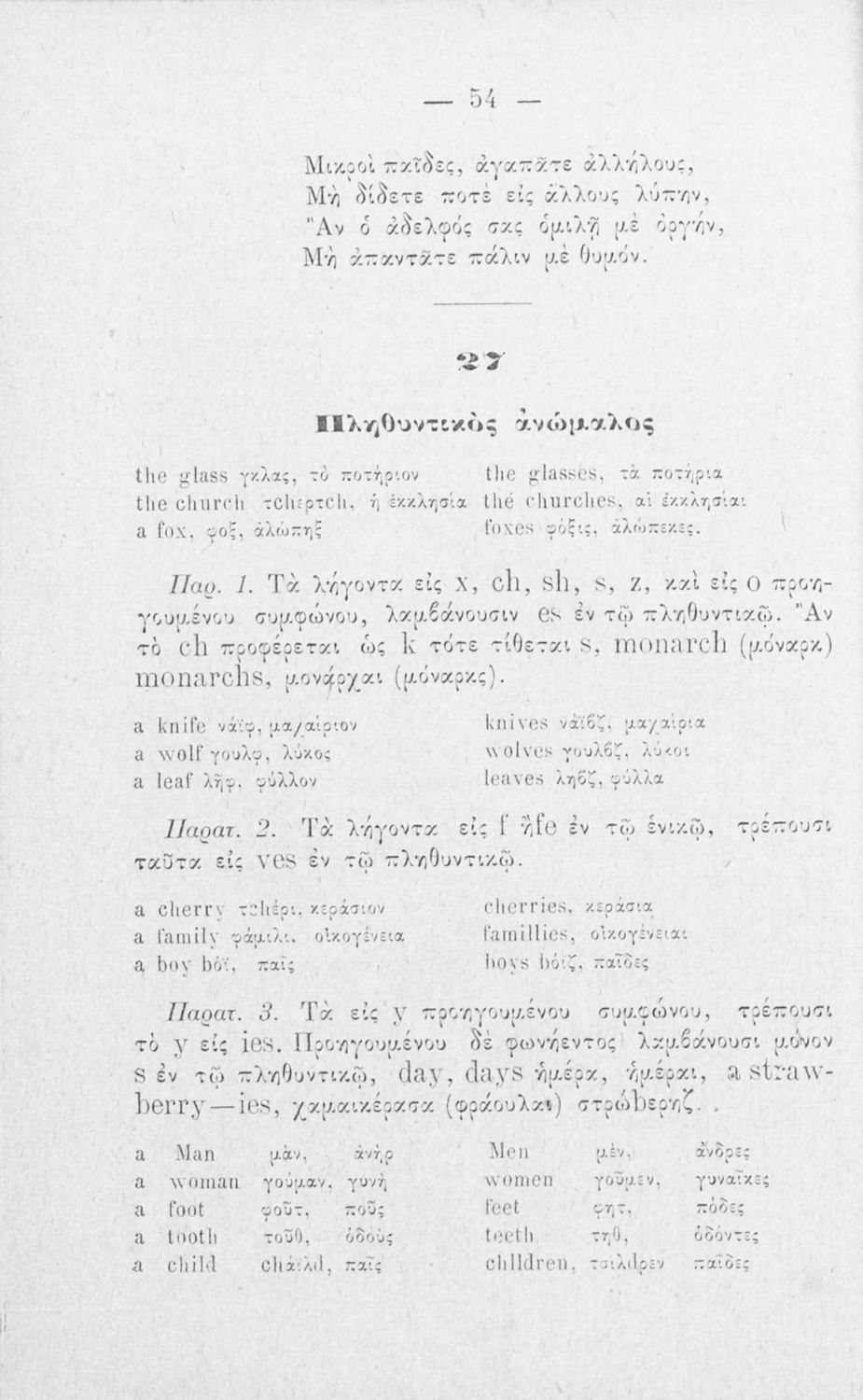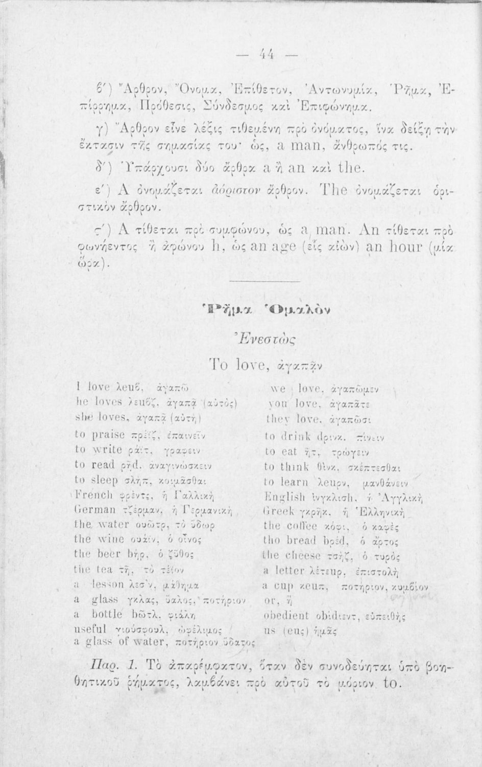 Σχετιζόμενοι όροι:  λεξιλόγιο, αντωνυμίες, ρήματα