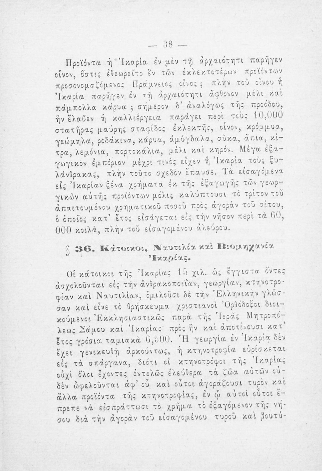 Κωδικός αναγνώρισης: 02-02280 Τίτλος: Ικαρία, ήτοι γεωγραφική της νήσου περιγραφή, προς χρήσιν των Δημοτικών σχολείων της νήσου Συγγραφέας: Γεώργιος Σταμ. Λομβαρδάς Μέγεθος και υπόστρωμα: Σχολικό εγχειρίδιο, μαλακό εξώφυλλο, 50 σελίδες. |