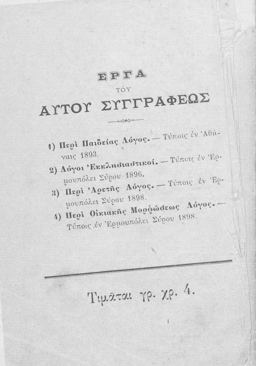 Εκδότης: Ν. Φρέρης Έτος έκδοσης: 1903 Τόπος έκδοσης: Αθήνα |