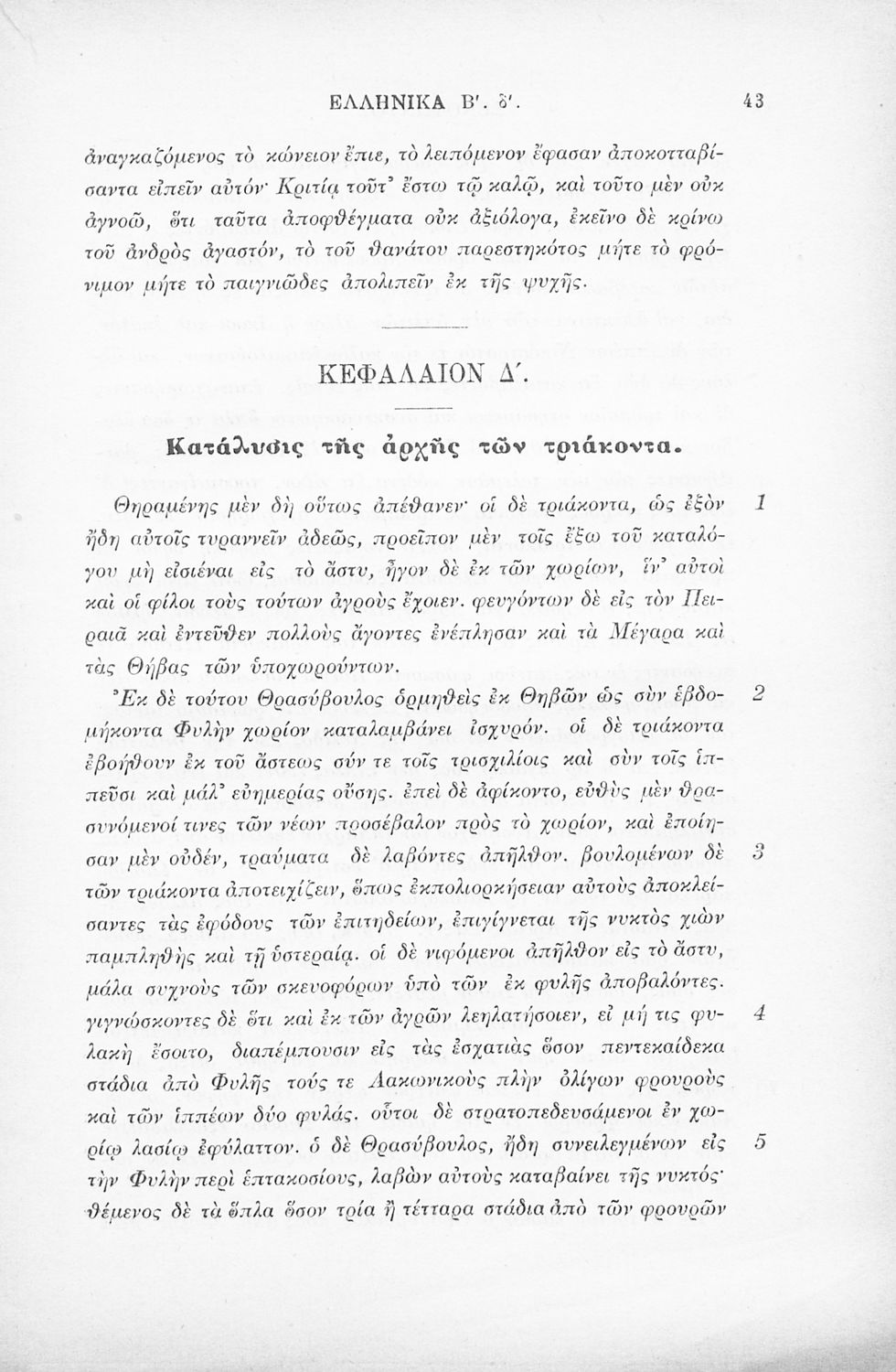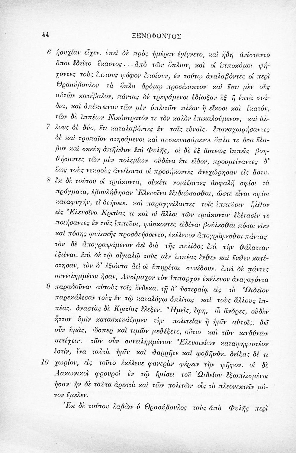 Σχολικό εγχειρίδιο Αρχαίων Ελληνικών Β΄ Γυμνασίου που περιλαμβάνει εισαγωγή στα Ελληνικά του Ξενοφώντα, το 3ο και το 4ο βιβλίο από τα Ελληνικά, ερμηνευτικές σημειώσεις και χωρογραφικό πίνακα της περιοχής.