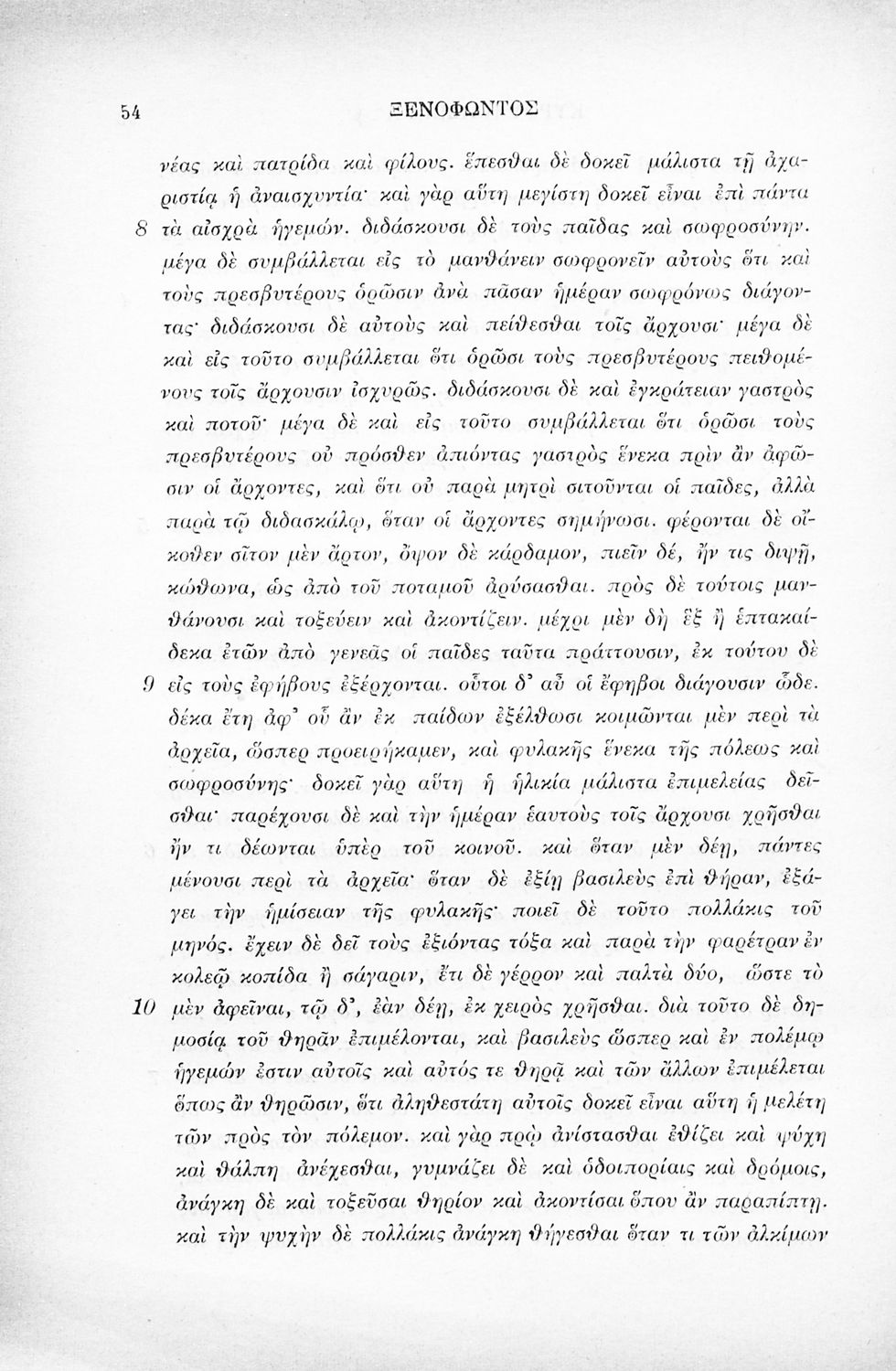 Σχολικό εγχειρίδιο Αρχαίων Ελληνικών για τη Γ' Ελληνικού Σχολείου και Παρθεναγωγείου που περιλαμβάνει αποσπάσματα από τα έργα του Ξενοφώντα Ελληνικά και Κύρου Παιδεία, εισαγωγή στη ζωή και το έργο του Ξενοφώντα και λεξικολογικές παρατηρήσεις.