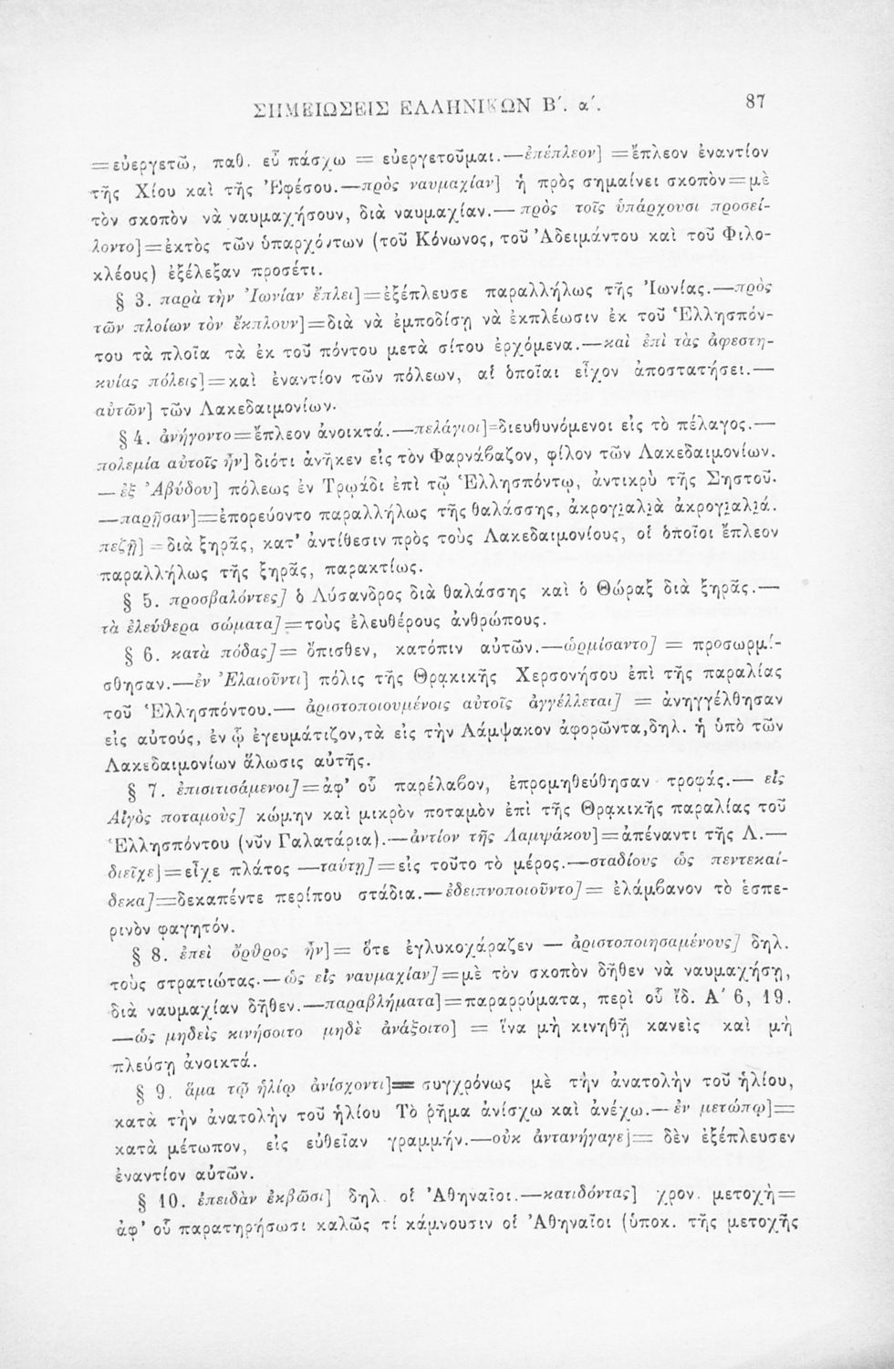 Σχολικό εγχειρίδιο Αρχαίων Ελληνικών Β΄ Γυμνασίου που περιλαμβάνει εισαγωγή στα Ελληνικά του Ξενοφώντα, το 3ο και το 4ο βιβλίο από τα Ελληνικά, ερμηνευτικές σημειώσεις και χωρογραφικό πίνακα της περιοχής.