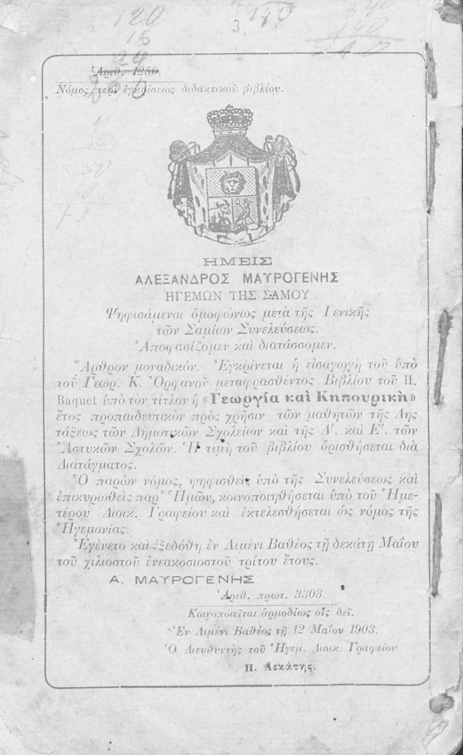 Τάξη:  Γυμνάσιο / Αστικό Σχολείο / Πρακτικό Λύκειο / Παρθεναγωγείο
