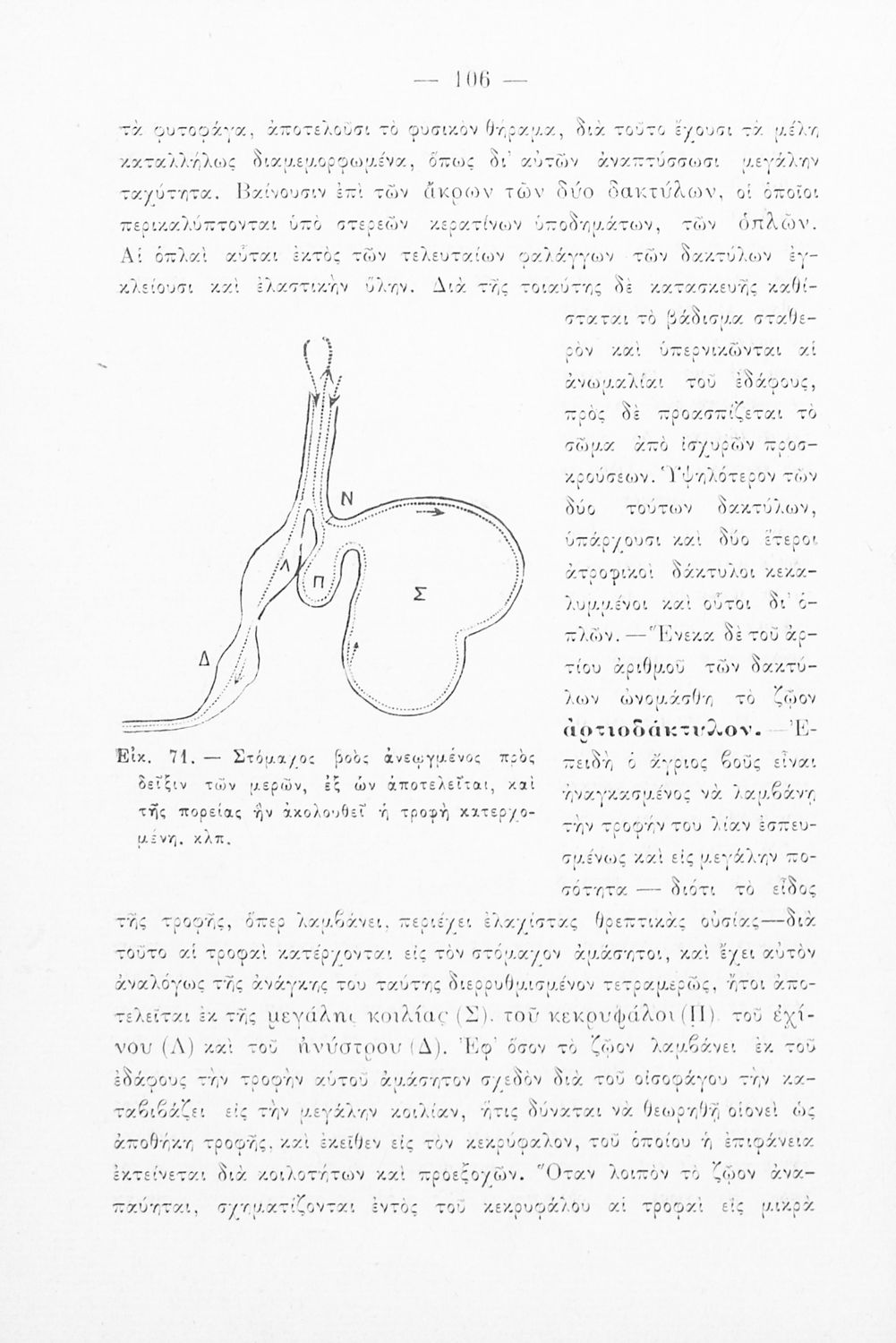 Σχολικό εγχειρίδιο Ζωολογίας για τα Γυμνάσια, τα Παρθεναγωγεία και τα Διδασκαλεία που εστιάζει στην ανθρώπινη φυσιολογία και παρουσιάζει τα διάφορα ζώα ανάλογα με την συνομοταξία στην οποία ανήκουν.