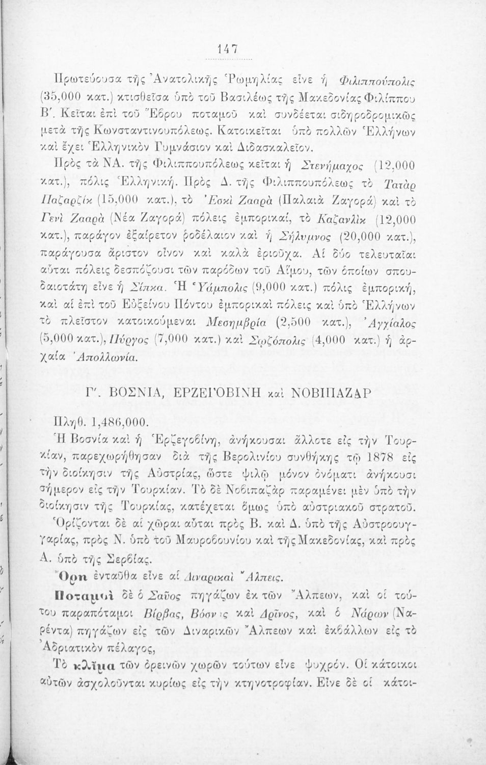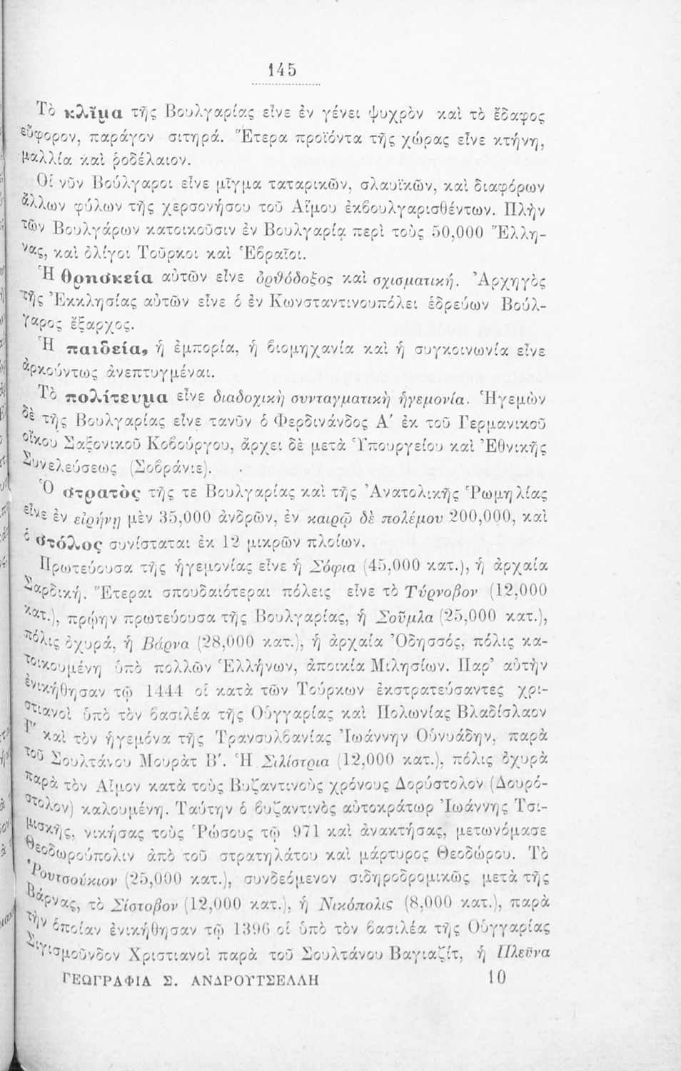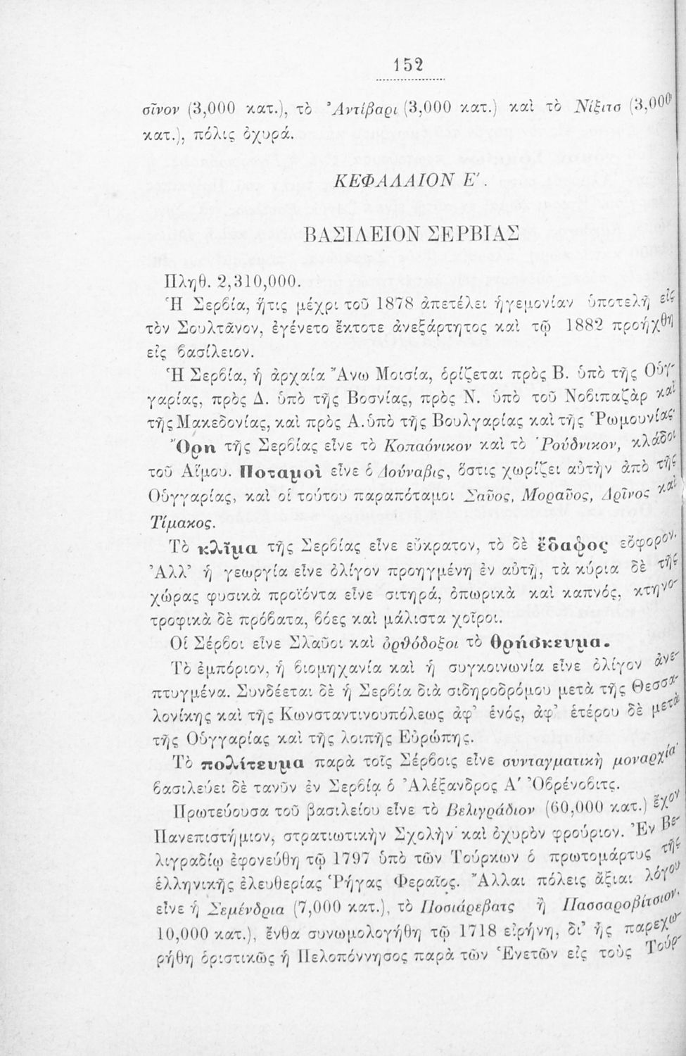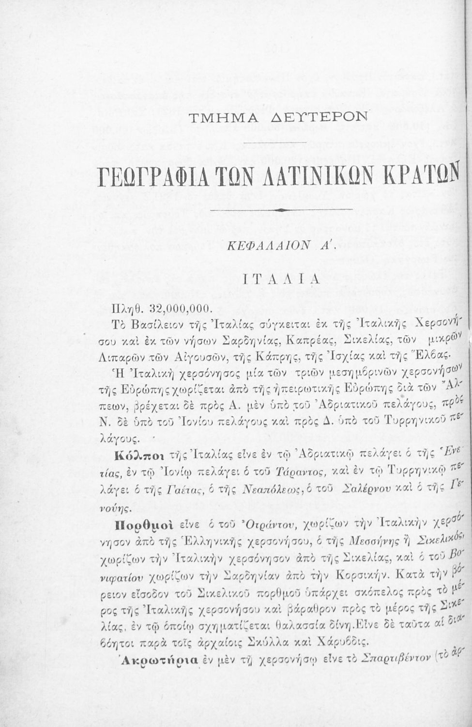 Σχολικό εγχειρίδιο Γεωγραφίας για τους μαθητές των Ελληνικών Σχολείων και Παρθεναγωγείων που περιλαμβάνει μια γενική επισκόπηση της πολιτικής, οικονομικής και φυσικής γεωγραφίας της Ελλάδας και ενδεικτικών ...