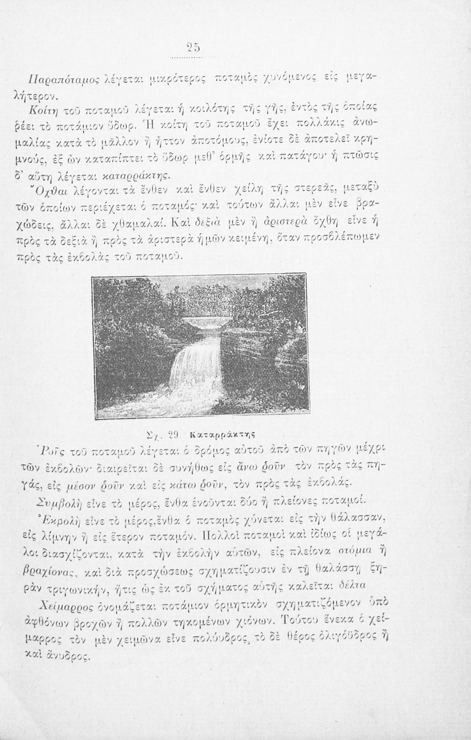 Σχολικό εγχειρίδιο Γεωγραφίας για τα Ελληνικά Σχολεία και τα Παρθεναγωγεία που αναλύει τη γεωμορφολογία της Γης και παρουσιάζει, διεξοδικά, κάποιους από τους νομούς της Ελλάδας και, συνοπτικά, τα γενικά χαρακτηριστικά των 5 ηπείρων.