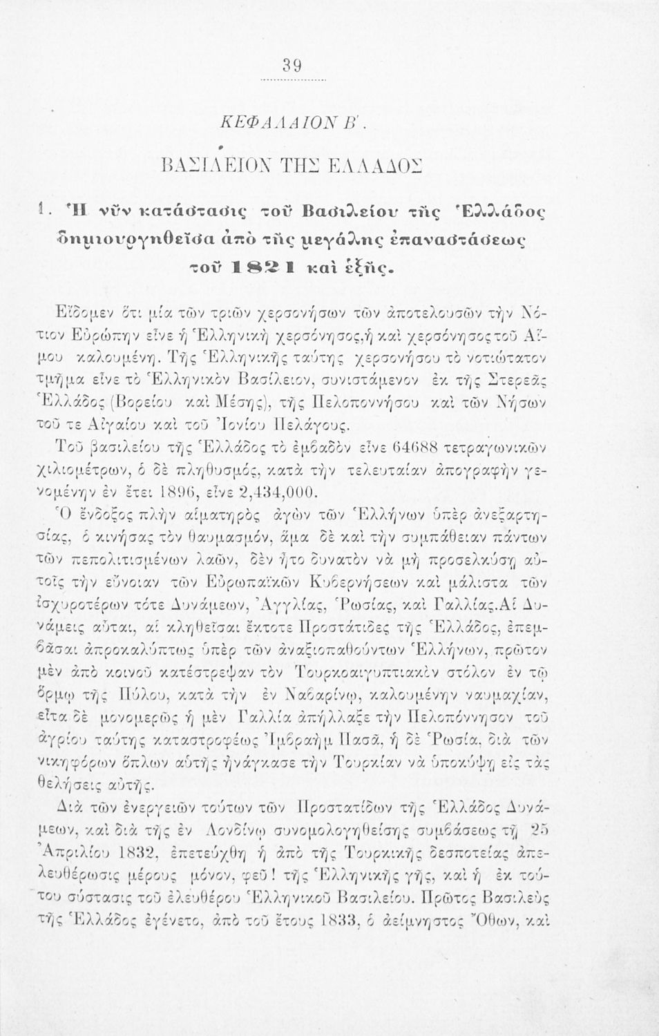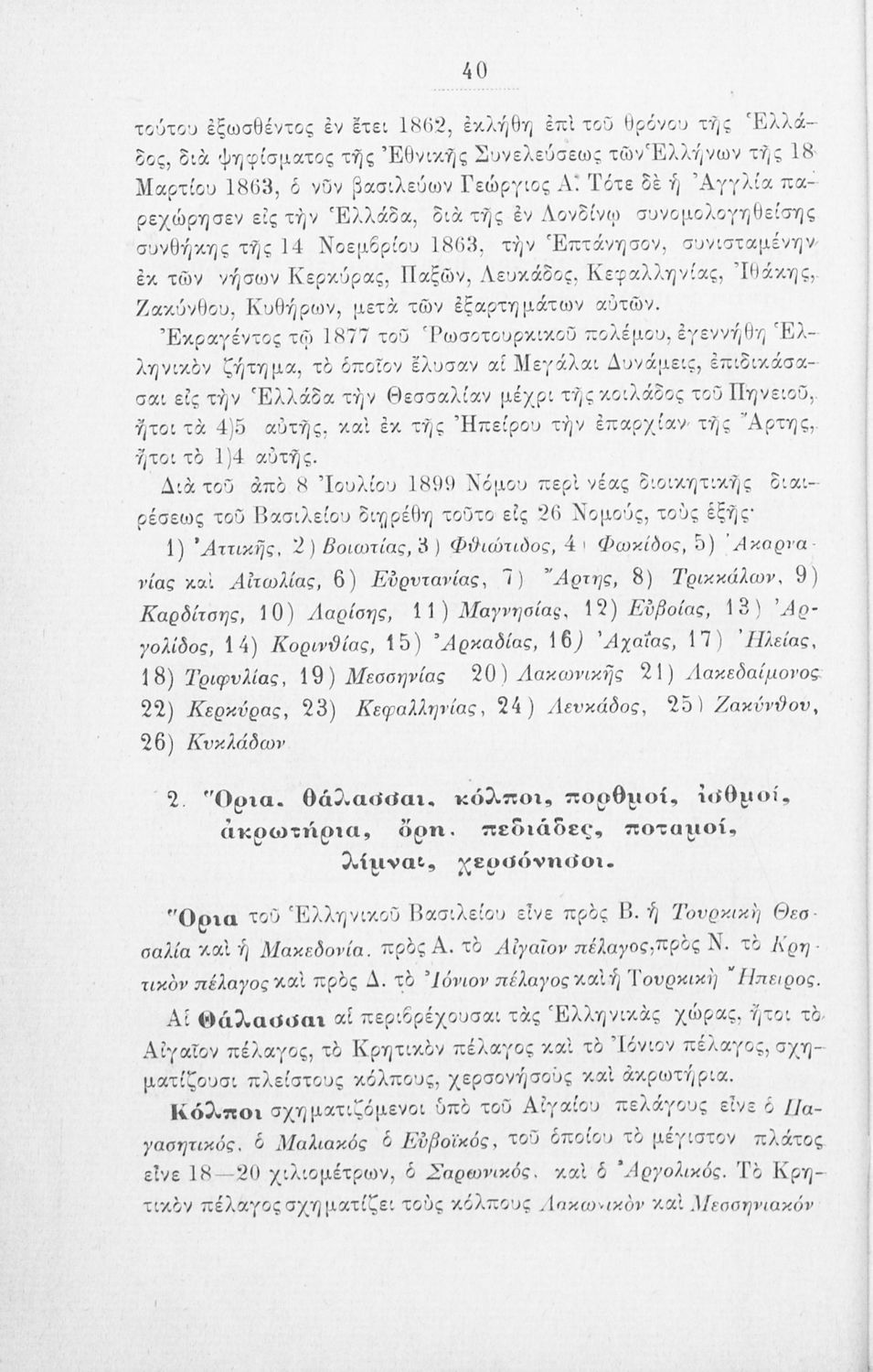 Σχολικό εγχειρίδιο Γεωγραφίας για τους μαθητές των Ελληνικών Σχολείων και Παρθεναγωγείων που περιλαμβάνει μια γενική επισκόπηση της πολιτικής, οικονομικής και φυσικής γεωγραφίας της Ελλάδας και ενδεικτικών ...