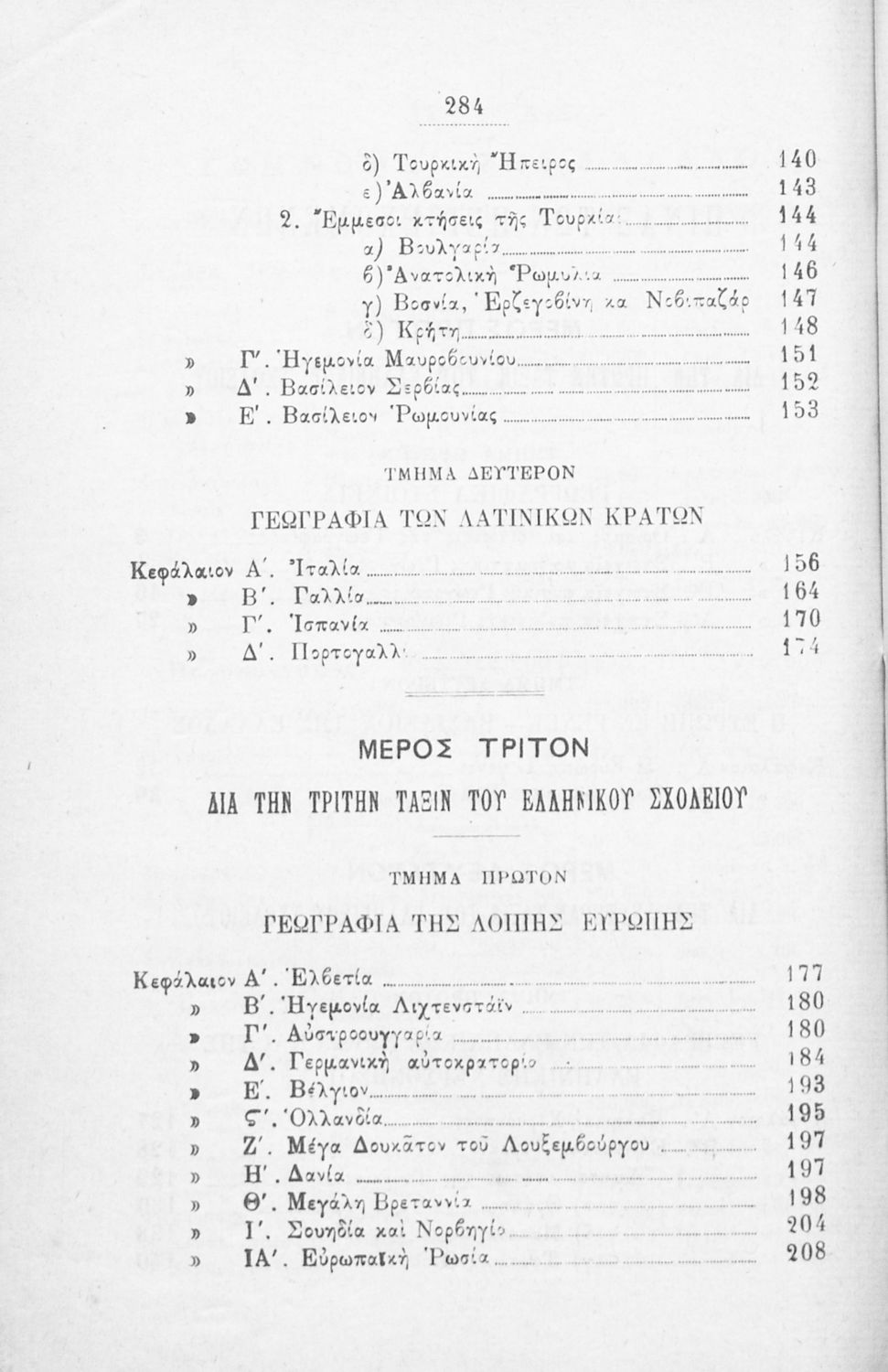 Σχολικό εγχειρίδιο Γεωγραφίας για τους μαθητές των Ελληνικών Σχολείων και Παρθεναγωγείων που περιλαμβάνει μια γενική επισκόπηση της πολιτικής, οικονομικής και φυσικής γεωγραφίας της Ελλάδας και ενδεικτικών ...