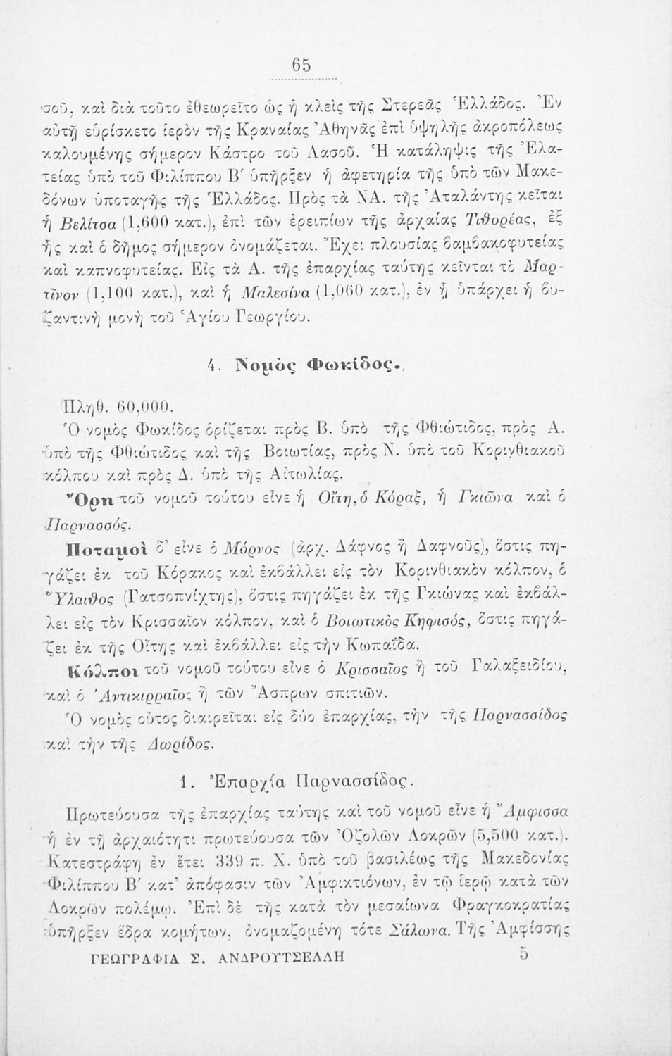 Σχολικό εγχειρίδιο Γεωγραφίας για τα Ελληνικά Σχολεία και τα Παρθεναγωγεία που αναλύει τη γεωμορφολογία της Γης και παρουσιάζει, διεξοδικά, κάποιους από τους νομούς της Ελλάδας και, συνοπτικά, τα γενικά χαρακτηριστικά των 5 ηπείρων.