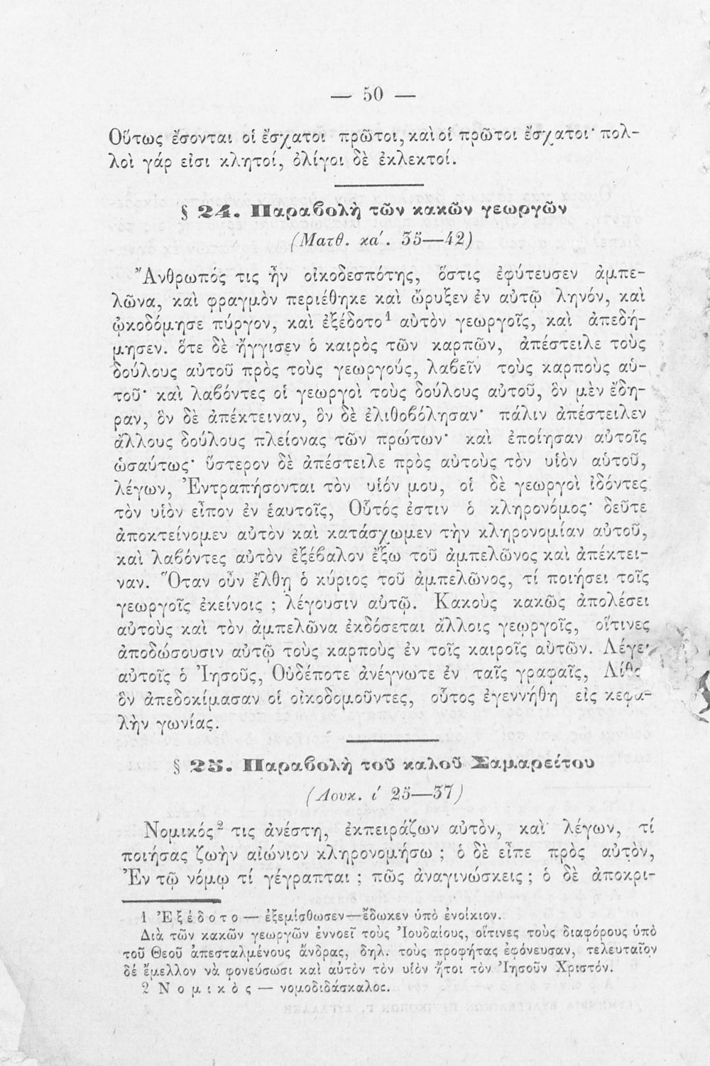Βαθμίδα εκπαίδευσης: Πρωτοβάθμια Μάθημα: Θρησκευτικά Γλώσσα: Καθαρεύουσα Παρουσίαση περιεχομένου: Σχολικό εγχειρίδιο Θρησκευτικών Δημοτικού που περιλαμβάνει περικοπές από τα Ευαγγέλια, λεξικολογικά σχόλια και πραγματολογικές σημειώσεις |