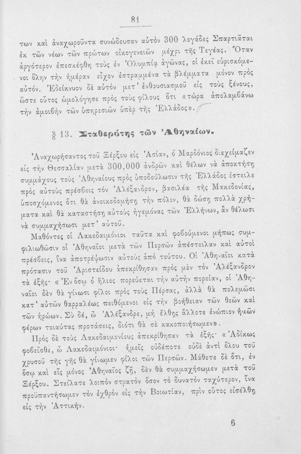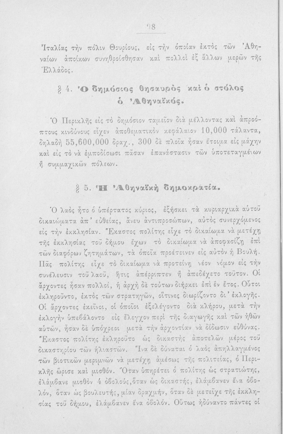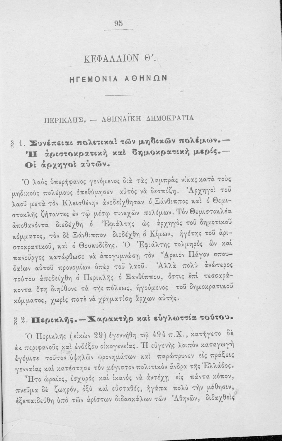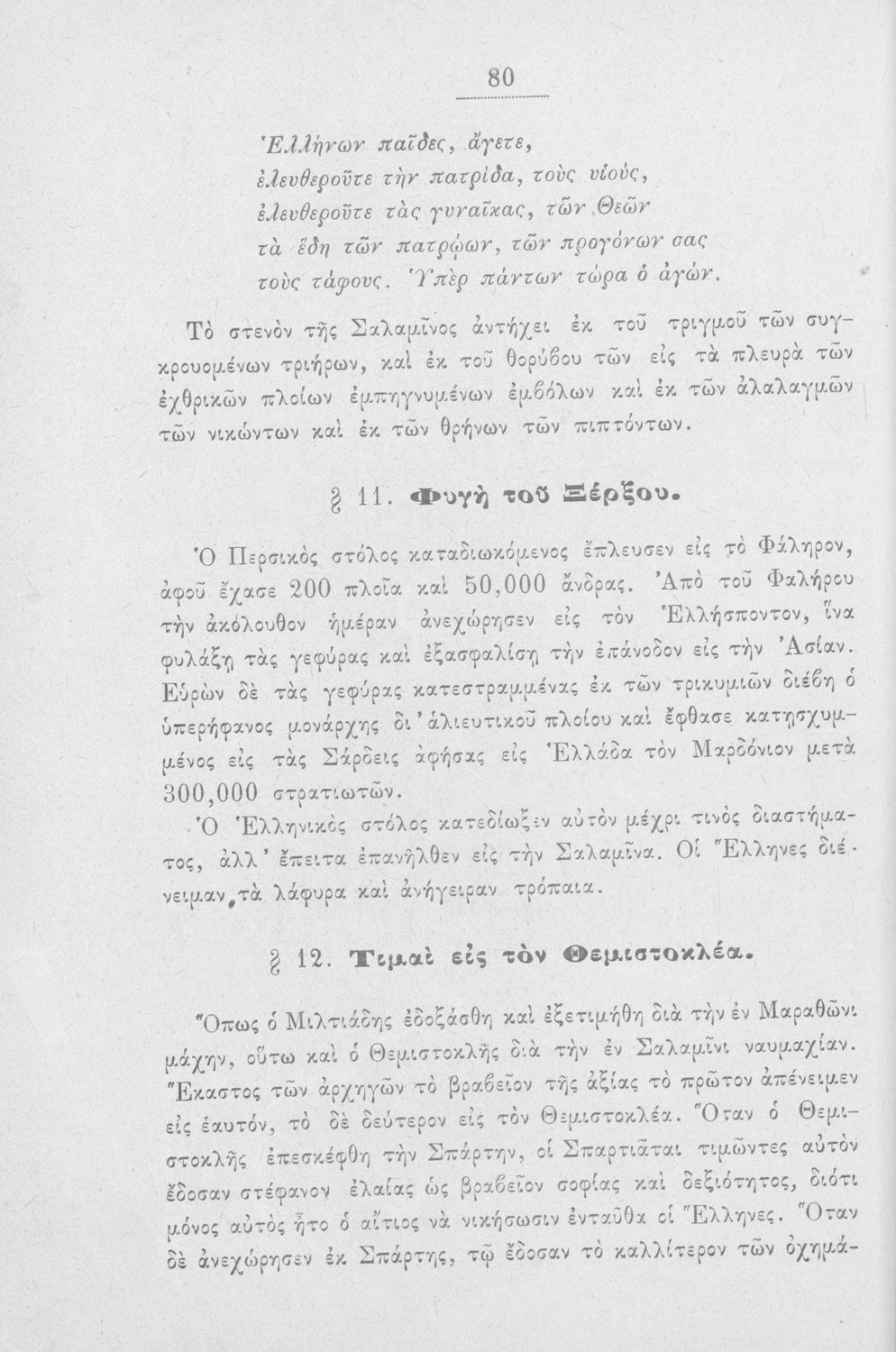 Βαθμίδα εκπαίδευσης: Δευτεροβάθμια Τάξη: Α' Ελληνικού Σχολείου Μάθημα: Ιστορία Γλώσσα: Καθαρεύουσα Παρουσίαση περιεχομένου: Σχολικό εγχειρίδιο για την Α΄ Ελληνικού για το μάθημα της Ιστορίας. Το εγχειρίδιο περιλαμβάνει ιστορίες και κείμενα από την αρχαία ελληνική ιστορία, από τους μυθικούς και ηρωικούς χρόνους του Ηρακλή, του Θησέα, της αργοναυτικής εκστρατείας, του Τρωικού πολέμου, την ηγεμονία της Αθήνας, της Σπάρτης και της Θήβας, τα γεγονότα του Πελοποννησιακού πολέμου, την αξία και την σπουδαιότητα του Σωκράτη, του Θεμιστοκλή, του Επαμεινώνδα κ.α. |