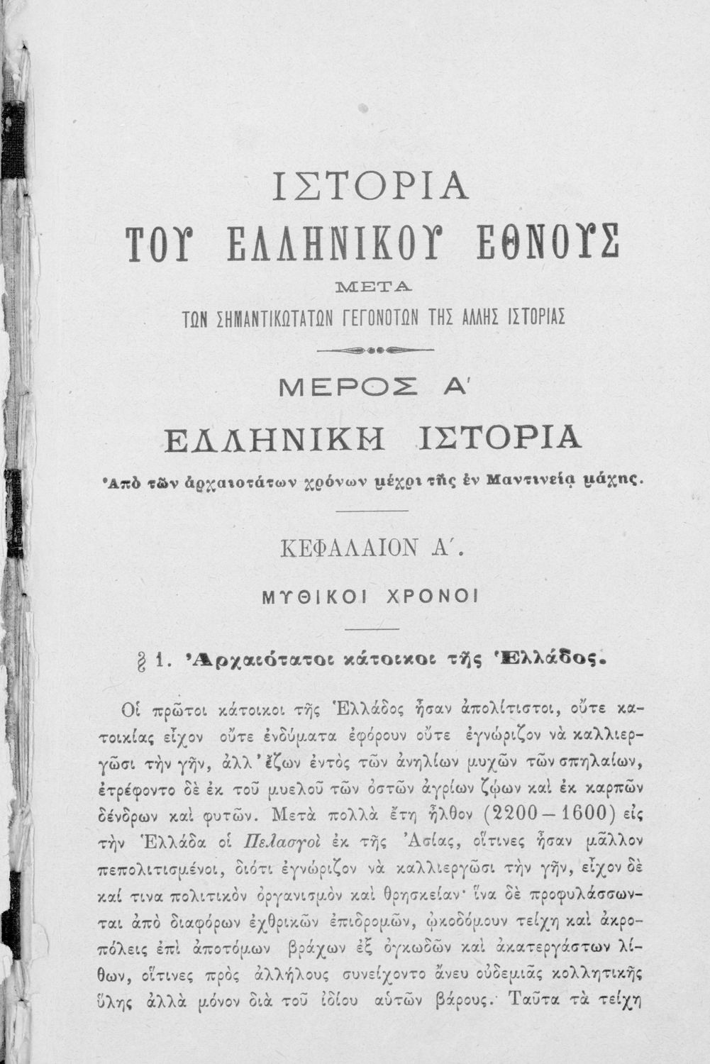 Βαθμίδα εκπαίδευσης: Δευτεροβάθμια Τάξη: Α' Ελληνικού Σχολείου Μάθημα: Ιστορία Γλώσσα: Καθαρεύουσα Παρουσίαση περιεχομένου: Σχολικό εγχειρίδιο για την Α΄ Ελληνικού για το μάθημα της Ιστορίας. Το εγχειρίδιο περιλαμβάνει ιστορίες και κείμενα από την αρχαία ελληνική ιστορία, από τους μυθικούς και ηρωικούς χρόνους του Ηρακλή, του Θησέα, της αργοναυτικής εκστρατείας, του Τρωικού πολέμου, την ηγεμονία της Αθήνας, της Σπάρτης και της Θήβας, τα γεγονότα του Πελοποννησιακού πολέμου, την αξία και την σπουδαιότητα του Σωκράτη, του Θεμιστοκλή, του Επαμεινώνδα κ.α. |