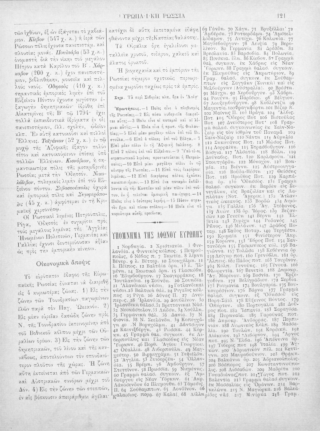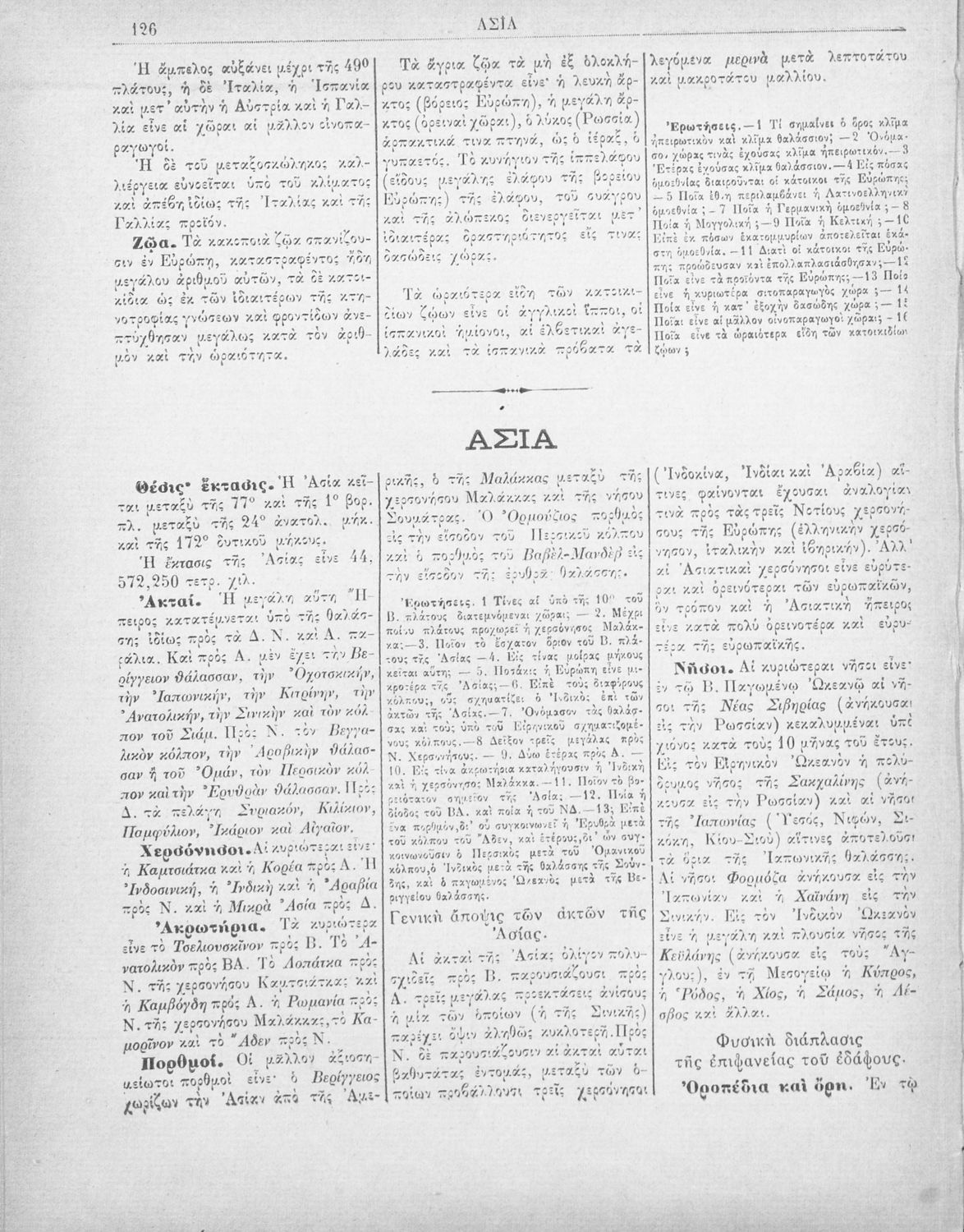Βαθμίδα εκπαίδευσης: Δευτεροβάθμια Τάξη: Ελληνικό Σχολείο / Παρθεναγωγείο Μάθημα: Γεωγραφία Γλώσσα: Καθαρεύουσα Παρουσίαση περιεχομένου: Σχολικό εγχειρίδιο Γεωγραφίας για τα Ελληνικά Σχολεία και Παρθεναγωγεία που περιλαμβάνει εισαγωγή στην φυσική γεωγραφία και ανθρωπογεωγραφία, και μια γενική επισκόπηση της πολιτικής, οικονομικής και φυσικής γεωγραφίας της Ελλάδας, της Ευρώπης και ενδεικτικών χώρων και περιοχών από τις υπόλοιπες ηπείρους. |