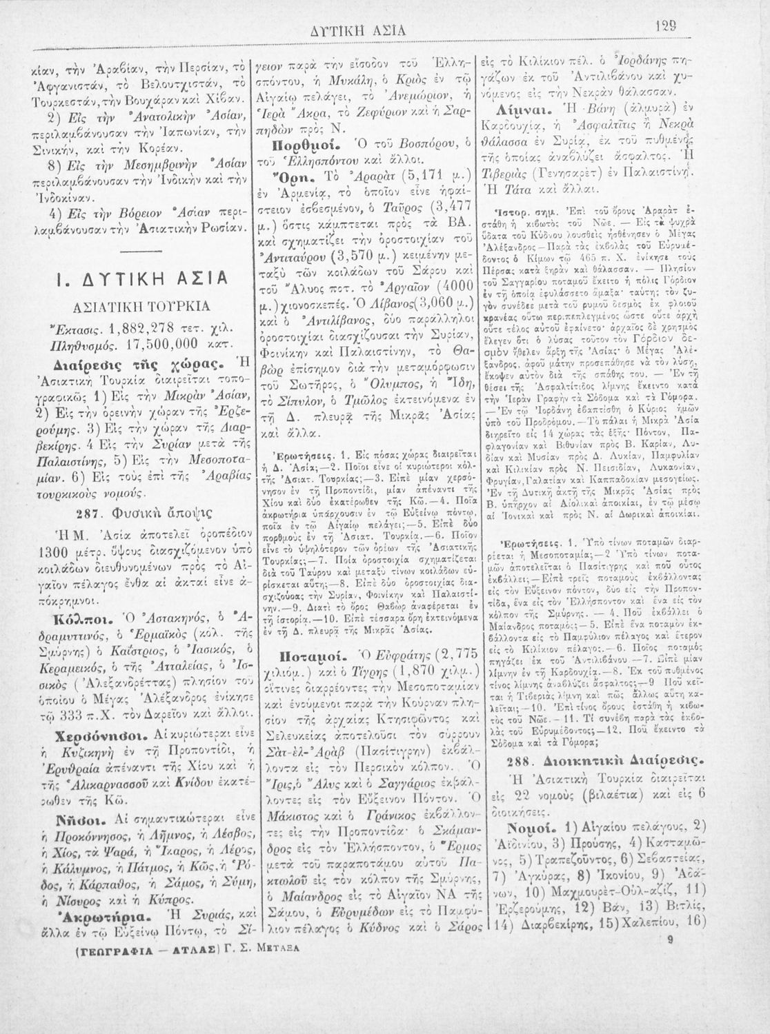 Κωδικός αναγνώρισης: 02-02297 Τίτλος: Γεωγραφία-Άτλας, προς χρήσιν των Ελληνικών Σχολείων και Παρθεναγωγείων Συγγραφέας: Γεώργιος Σ. Μεταξάς Μέγεθος και υπόστρωμα: Σχολικό εγχειρίδιο, σκληρό εξώφυλλο, 200 σελίδες. Εικόνες (ασπρόμαυρες), σκίτσα (ασπρόμαυρα), χάρτες (ασπρόμαυροι). |