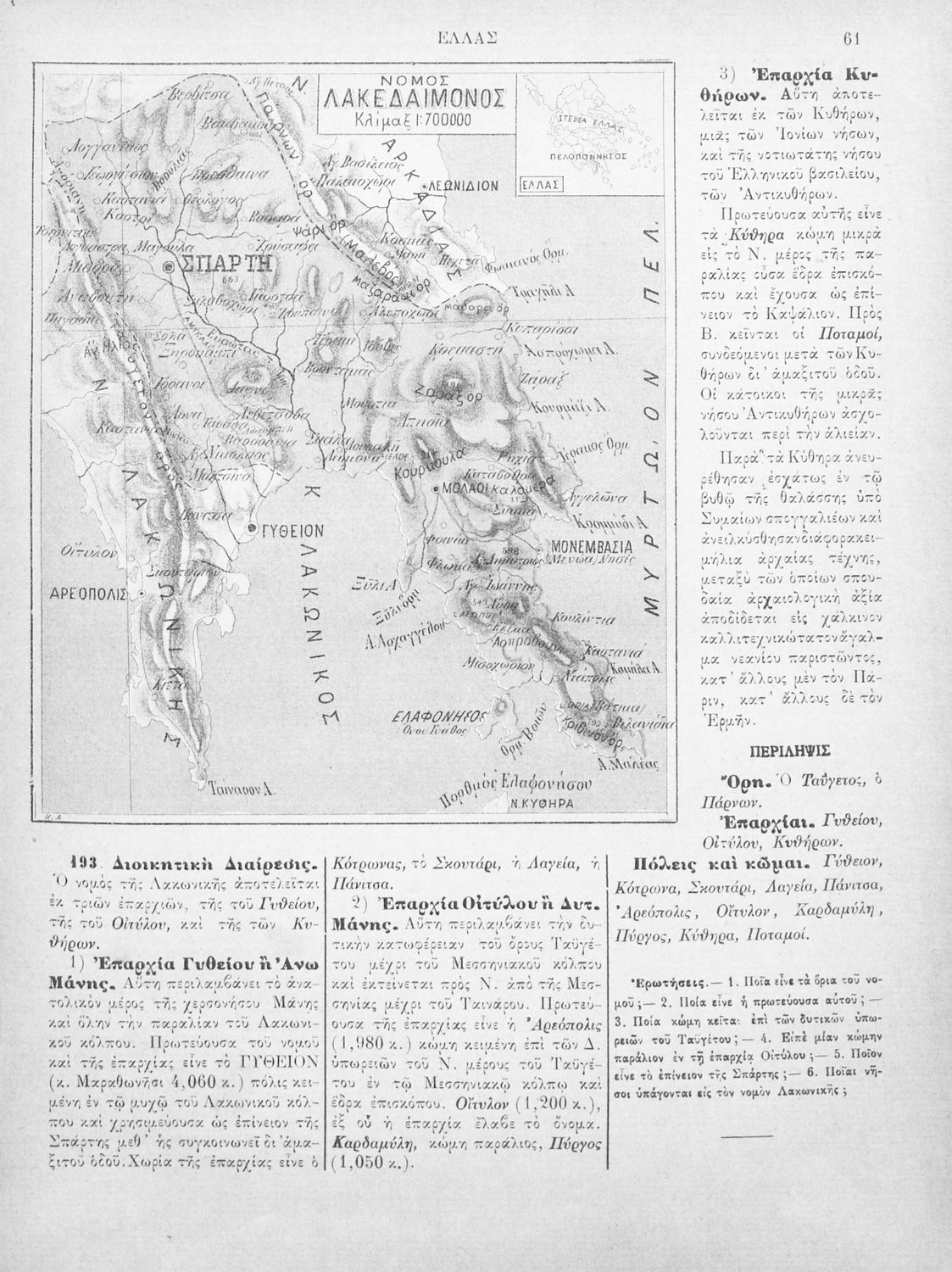 Βαθμίδα εκπαίδευσης: Δευτεροβάθμια Τάξη: Ελληνικό Σχολείο / Παρθεναγωγείο Μάθημα: Γεωγραφία Γλώσσα: Καθαρεύουσα Παρουσίαση περιεχομένου: Σχολικό εγχειρίδιο Γεωγραφίας για τα Ελληνικά Σχολεία και Παρθεναγωγεία που περιλαμβάνει εισαγωγή στην φυσική γεωγραφία και ανθρωπογεωγραφία, και μια γενική επισκόπηση της πολιτικής, οικονομικής και φυσικής γεωγραφίας της Ελλάδας, της Ευρώπης και ενδεικτικών χώρων και περιοχών από τις υπόλοιπες ηπείρους. |