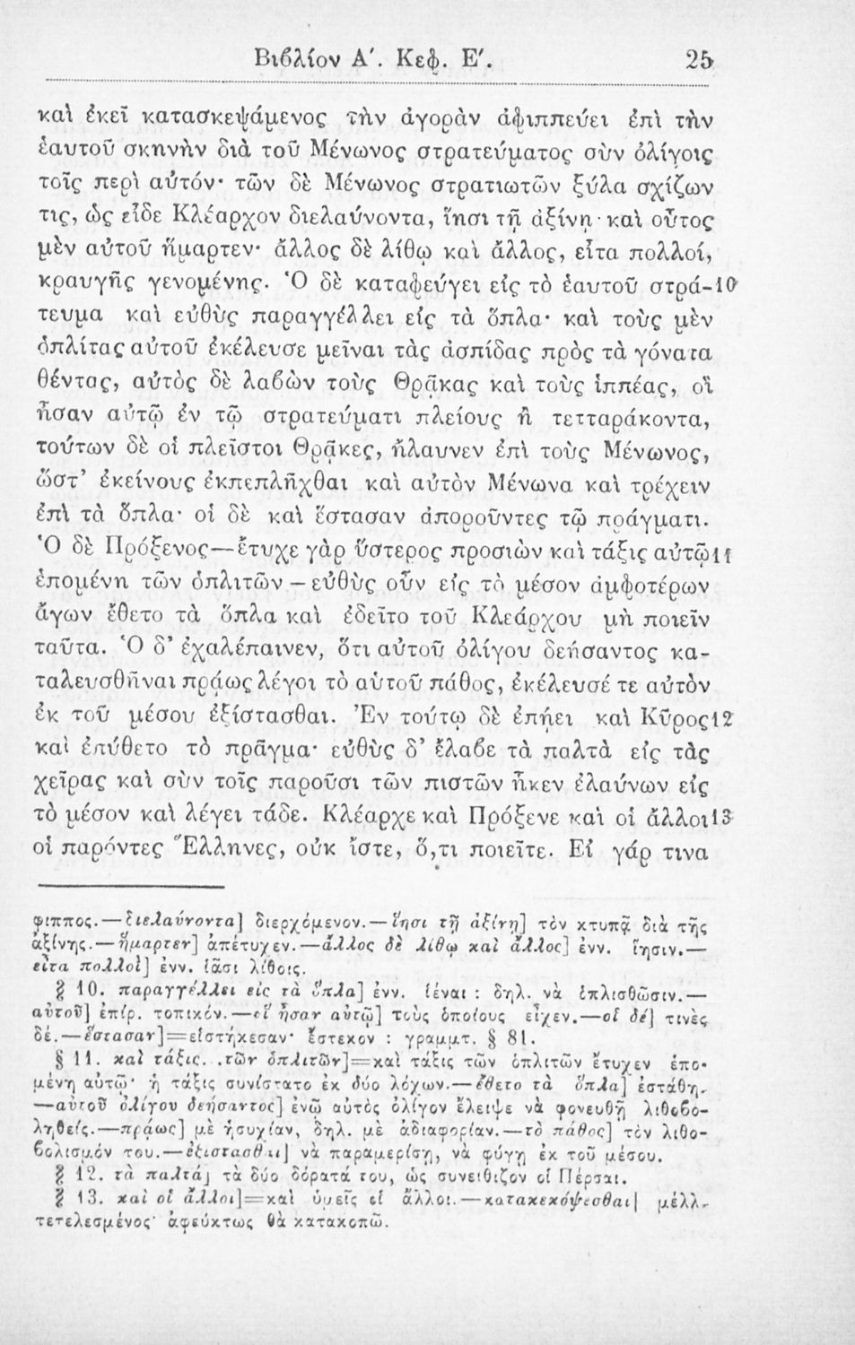 Σχολικό εγχειρίδιο Αρχαίων Ελληνικών για τα Ελληνικά Σχολεία και Παρθεναγωγεία που περιλαμβάνει αποσπάσματα από το έργο του Ξενοφώντα Κύρου Ανάβασις, και λεξικογραφικές παρατηρήσεις.