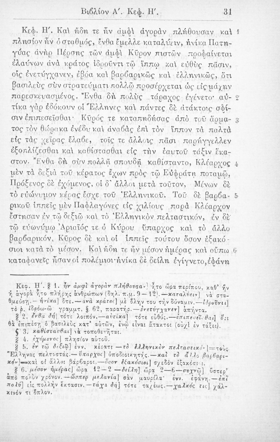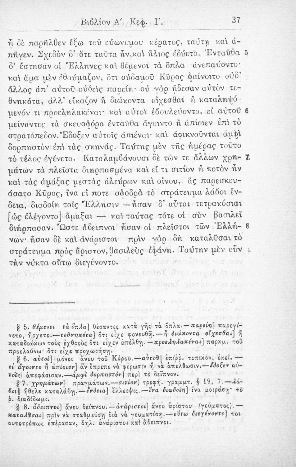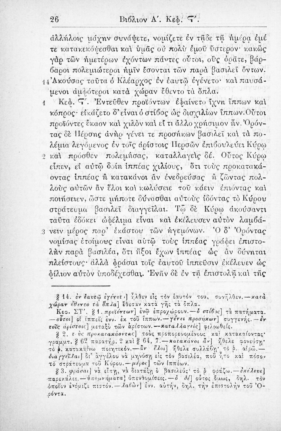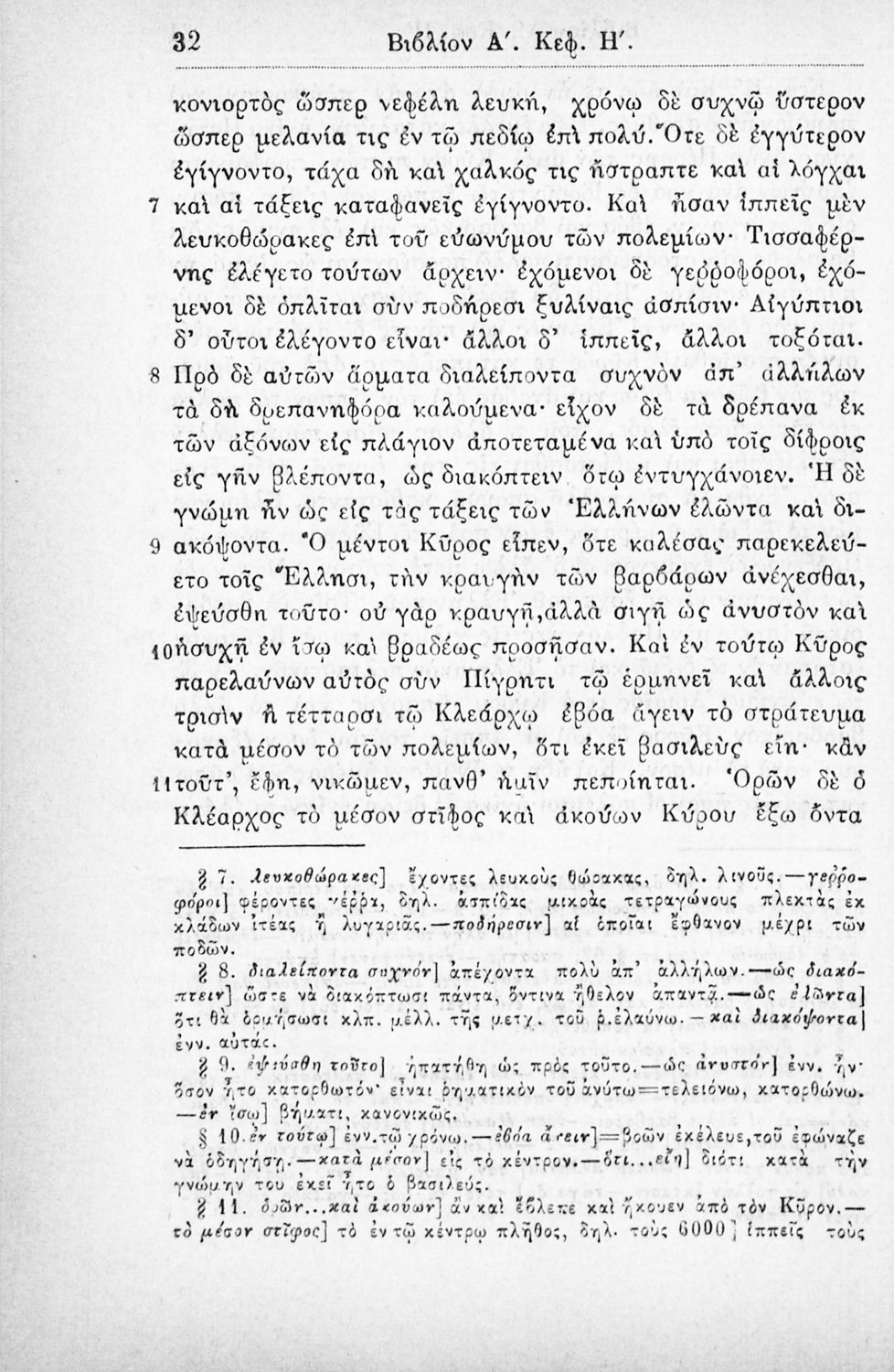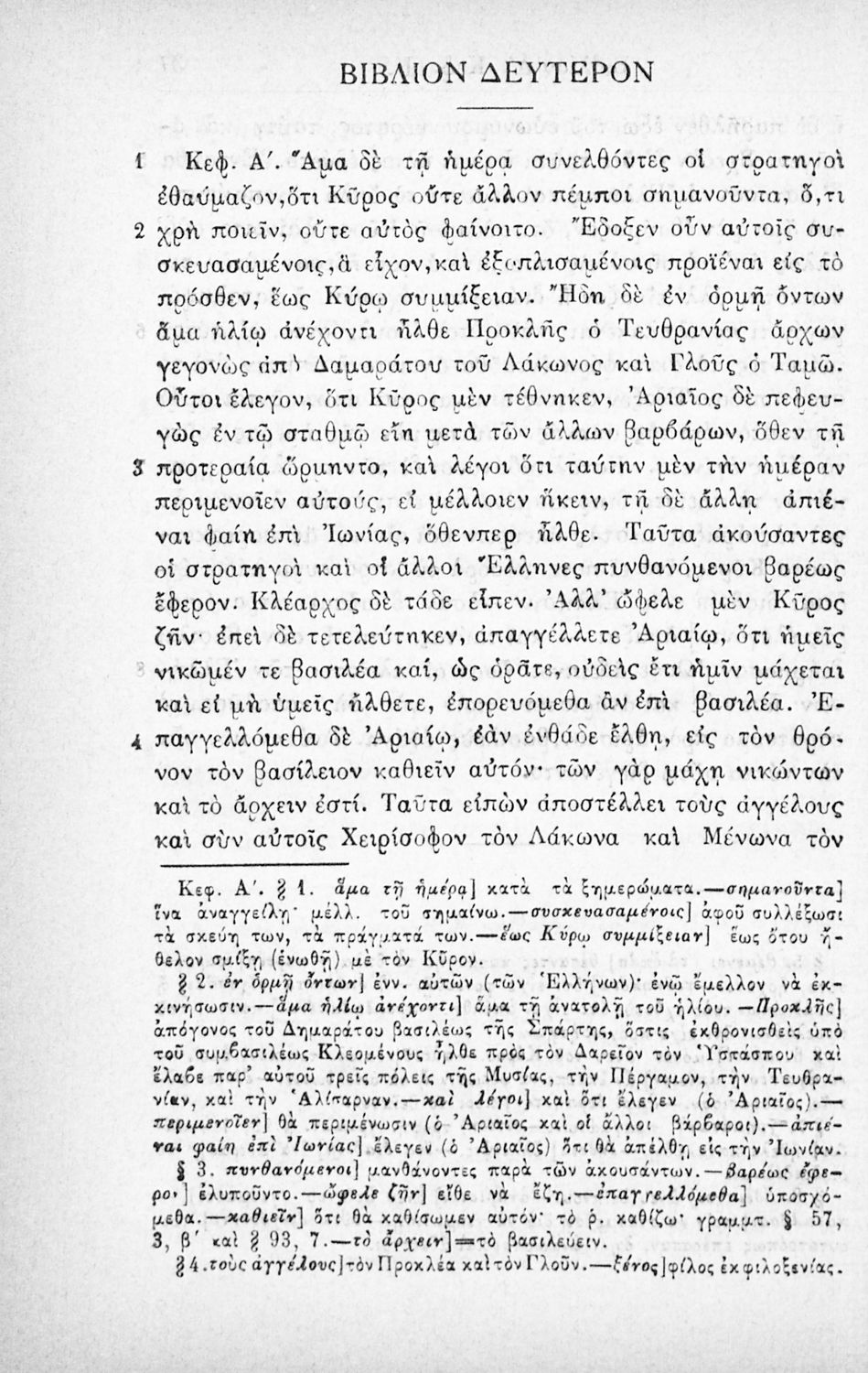 Ελληνική χρηστομάθεια περιέχουσα Ξενοφώντος Κύρου Ανάβασιν μέρη κατ΄ εκλογήν εκ των τεσσάρων πρώτων βιβλίων κατά το πρόγραμμα και τας επισήμους οδηγίας του Υπουργείου προς χρήσιν των Ελληνικών Σχολείων και Παρθεναγωγείων τόμος Β΄