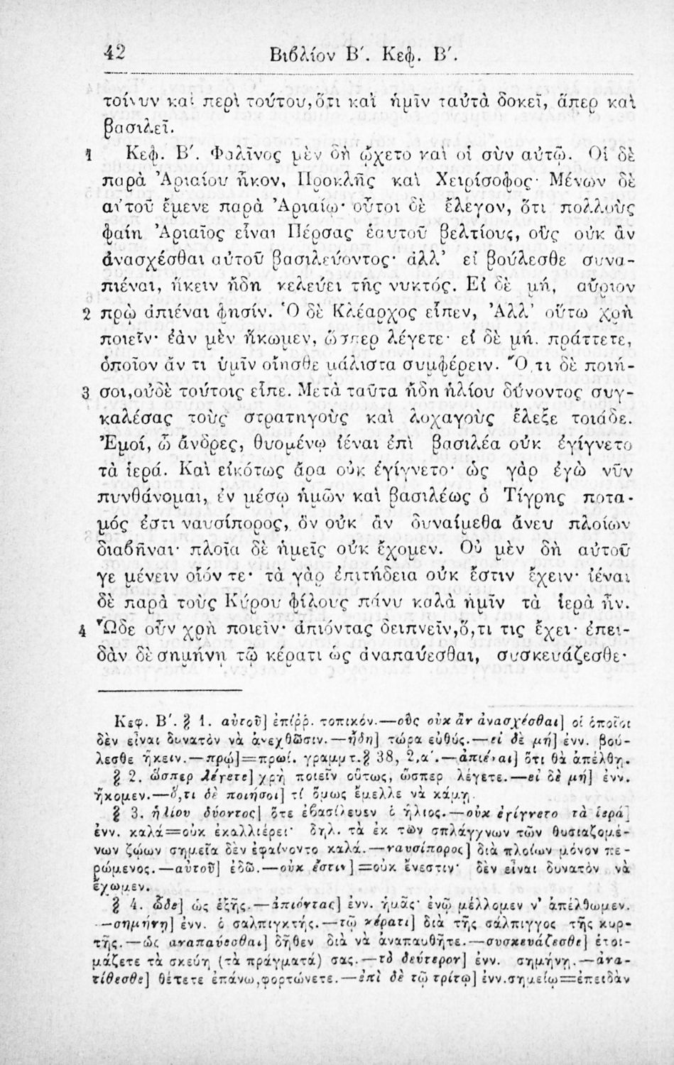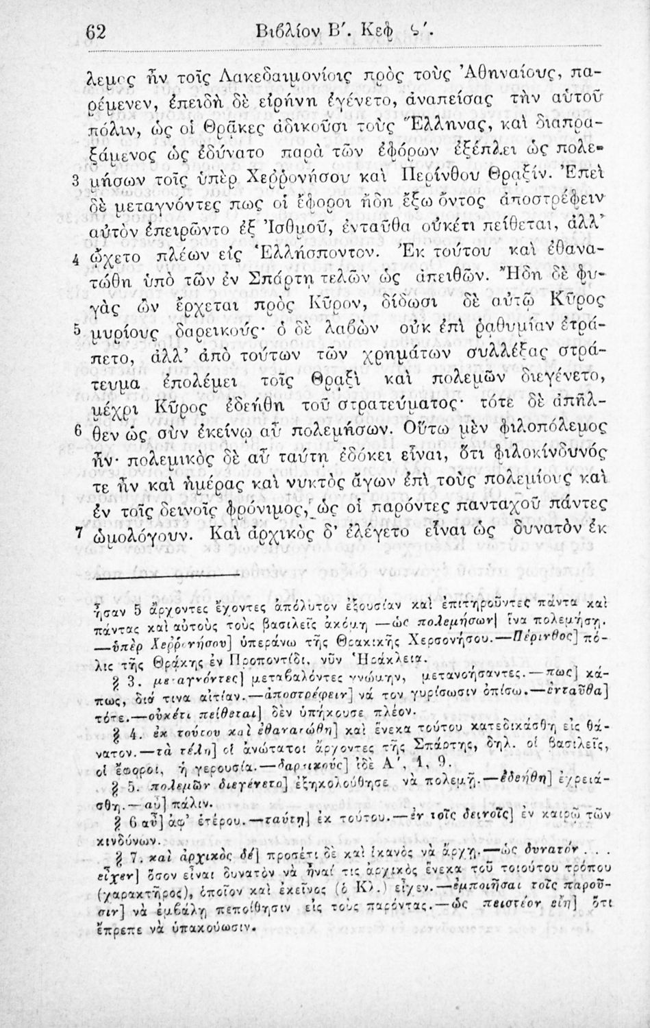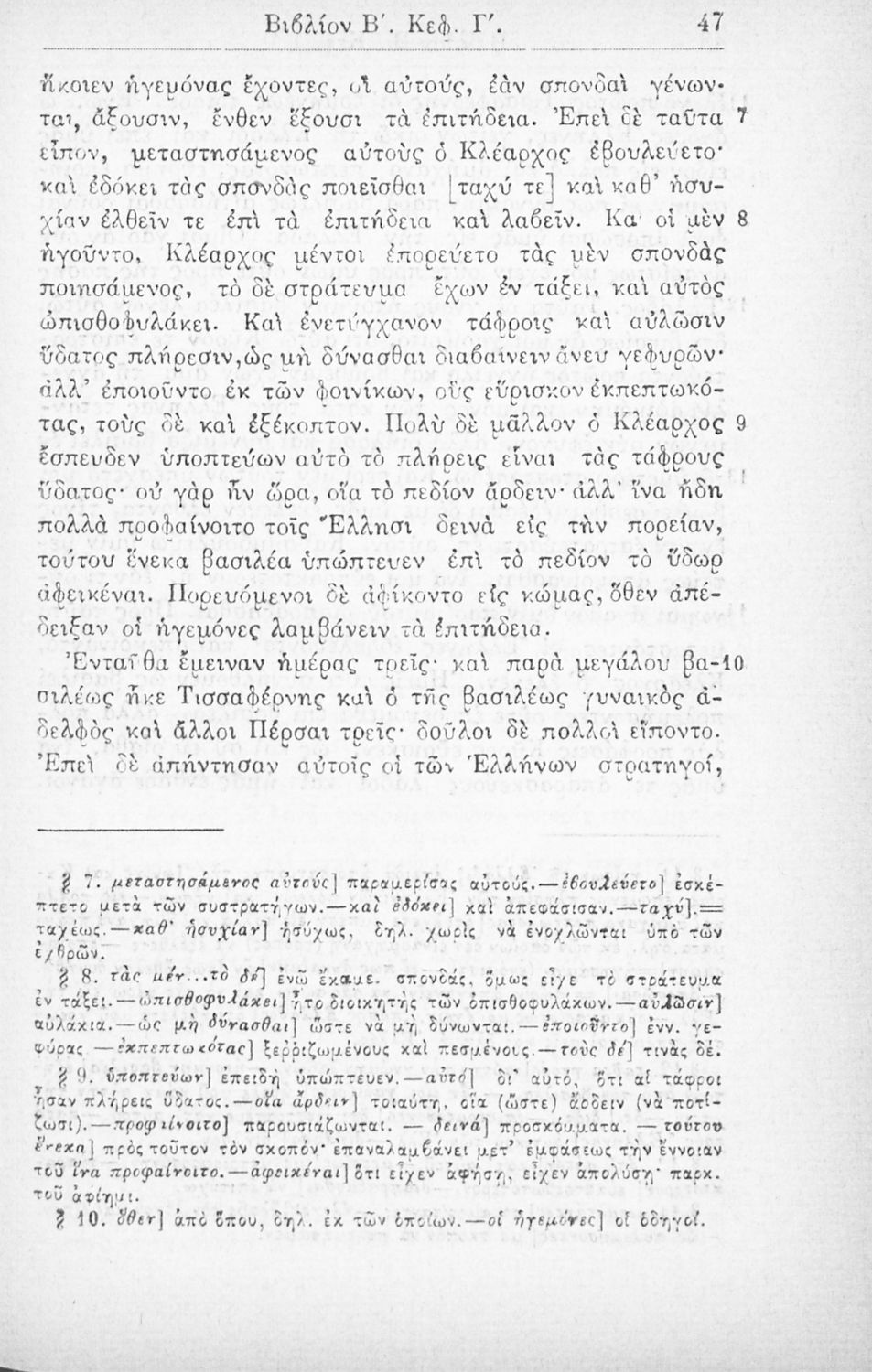 Σχολικό εγχειρίδιο Αρχαίων Ελληνικών για τα Ελληνικά Σχολεία και Παρθεναγωγεία που περιλαμβάνει αποσπάσματα από το έργο του Ξενοφώντα Κύρου Ανάβασις, και λεξικογραφικές παρατηρήσεις.