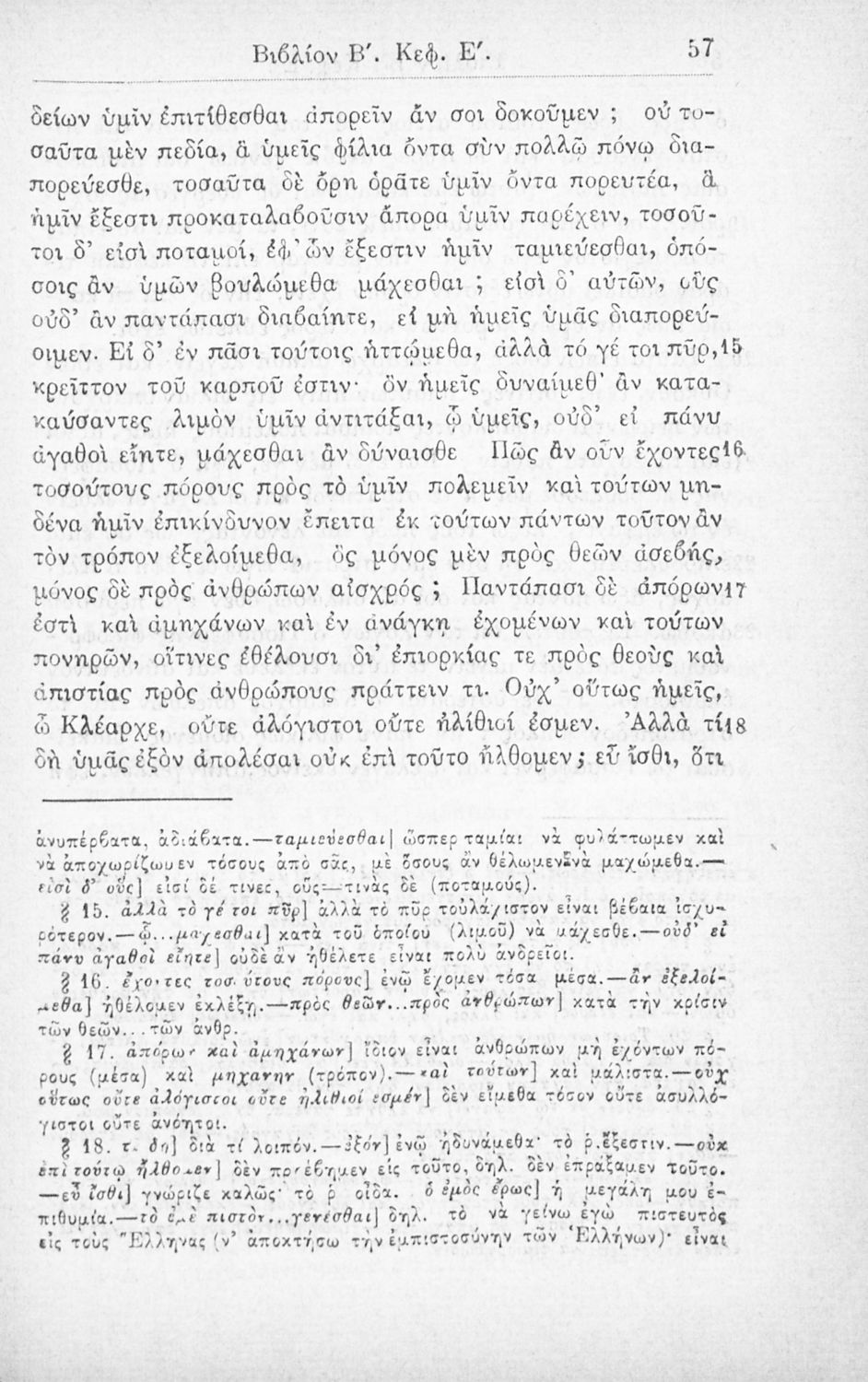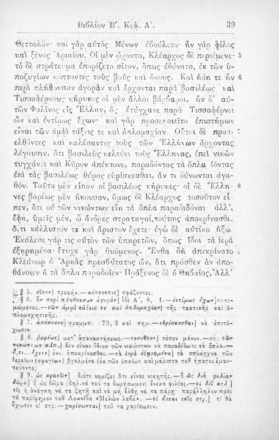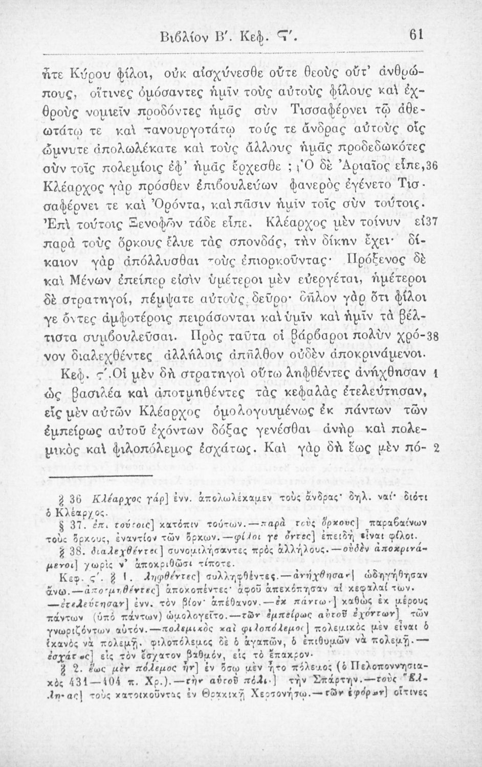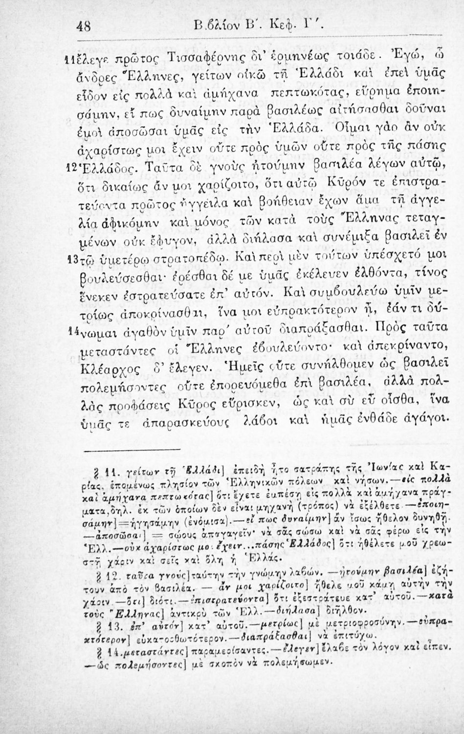 Σχολικό εγχειρίδιο Αρχαίων Ελληνικών για τα Ελληνικά Σχολεία και Παρθεναγωγεία που περιλαμβάνει αποσπάσματα από το έργο του Ξενοφώντα Κύρου Ανάβασις, και λεξικογραφικές παρατηρήσεις.