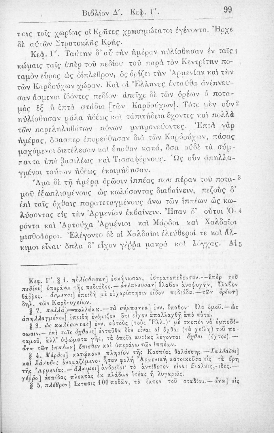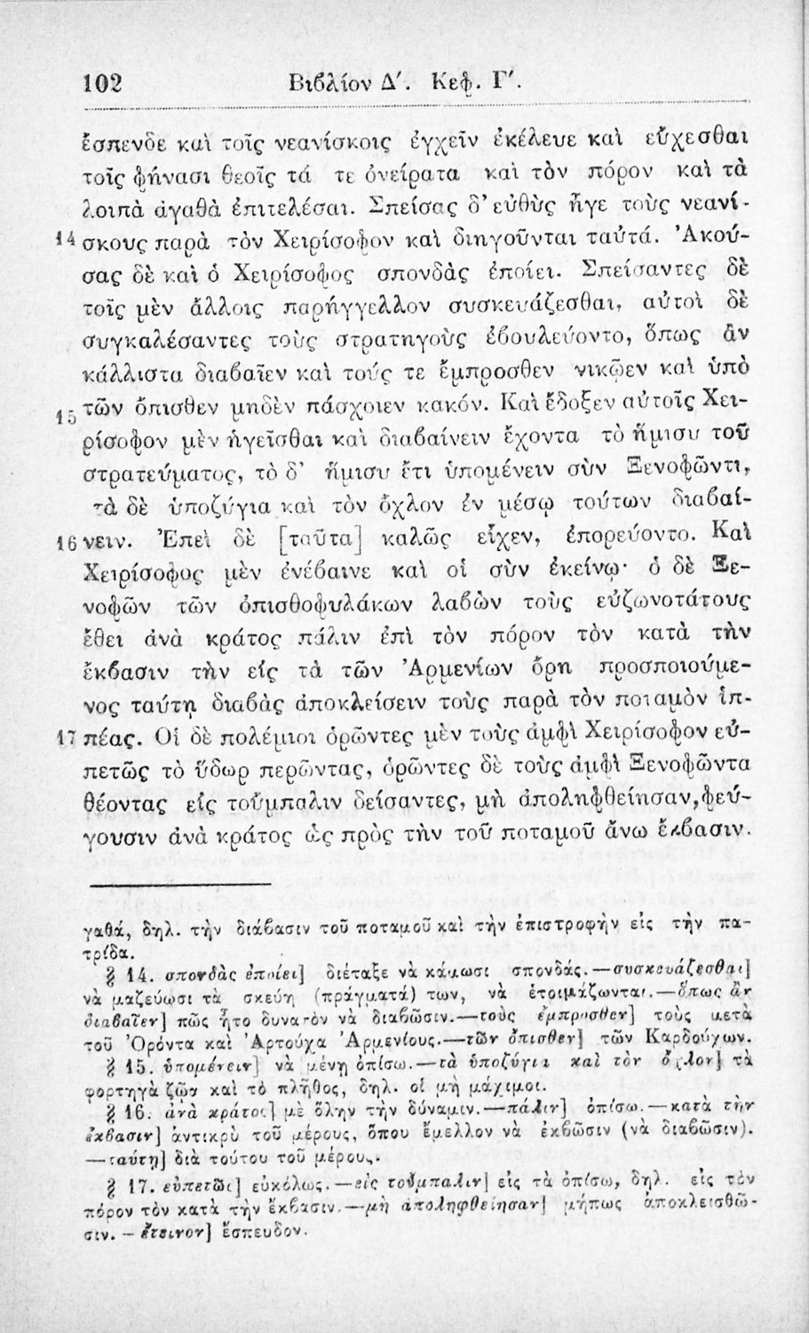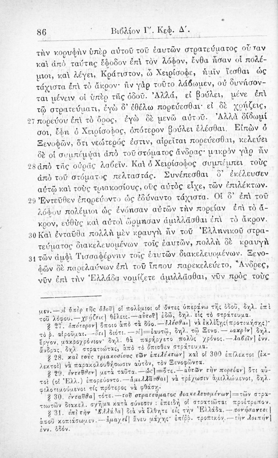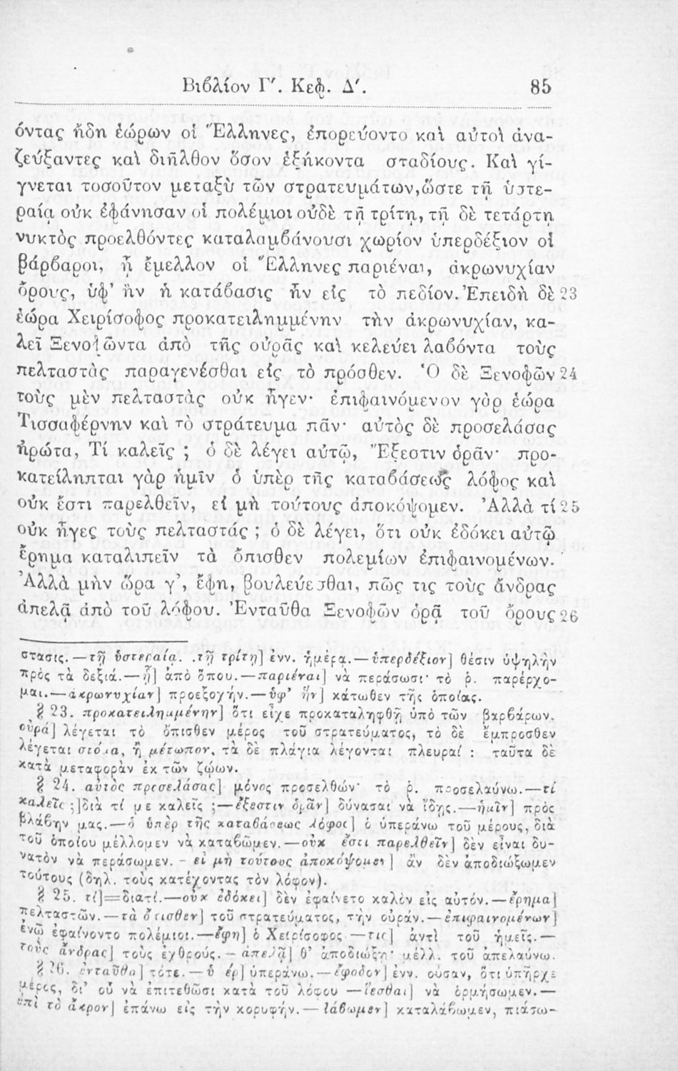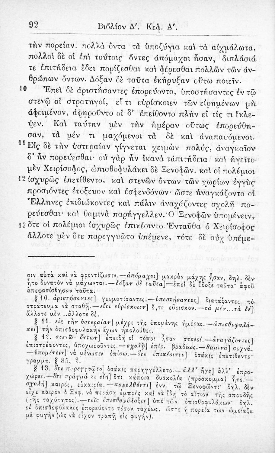 Σχολικό εγχειρίδιο Αρχαίων Ελληνικών για τα Ελληνικά Σχολεία και Παρθεναγωγεία που περιλαμβάνει αποσπάσματα από το έργο του Ξενοφώντα Κύρου Ανάβασις, και λεξικογραφικές παρατηρήσεις.