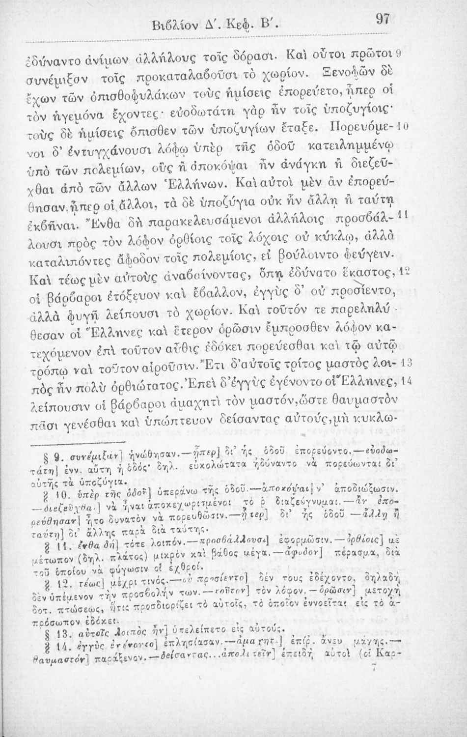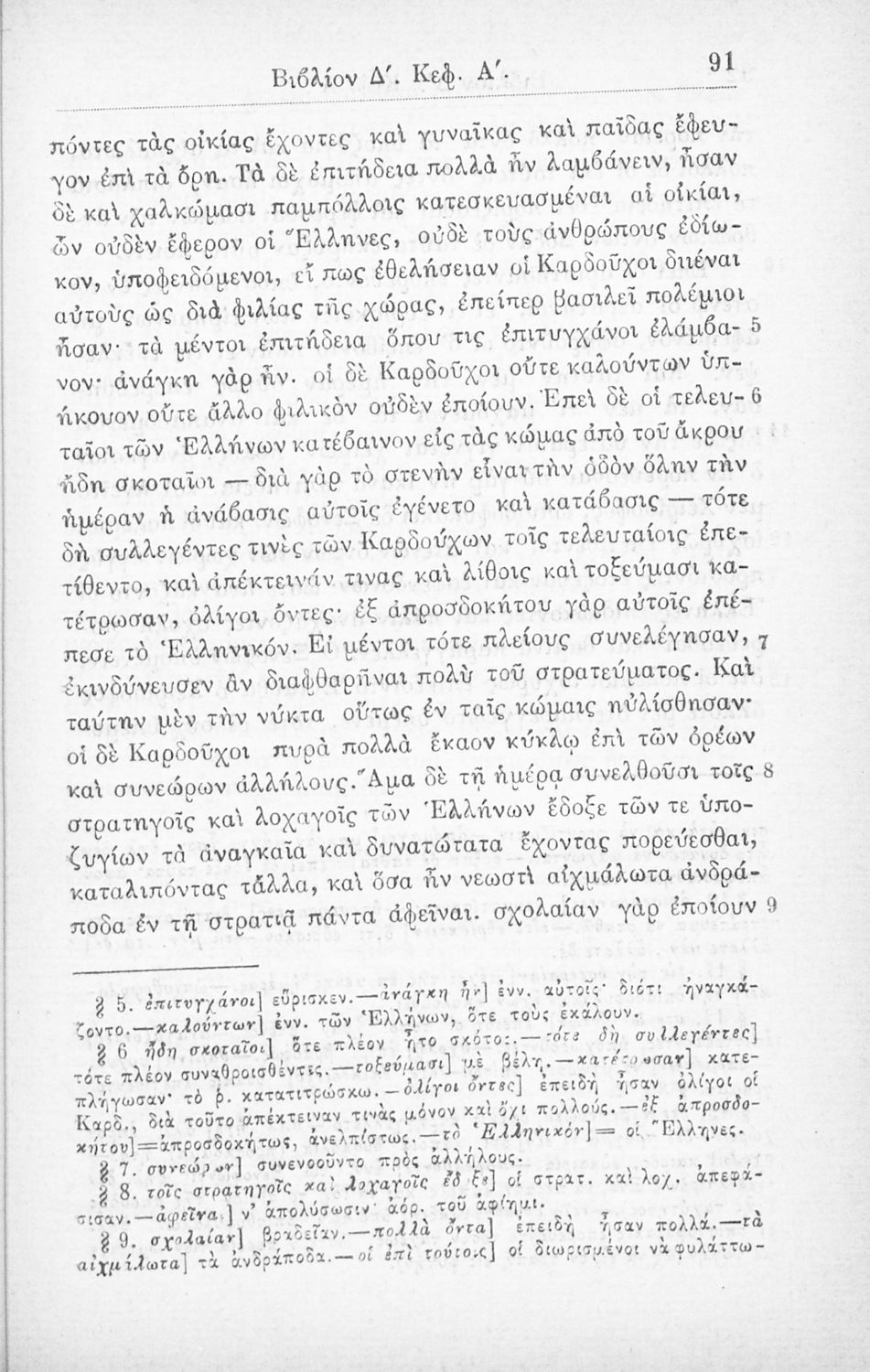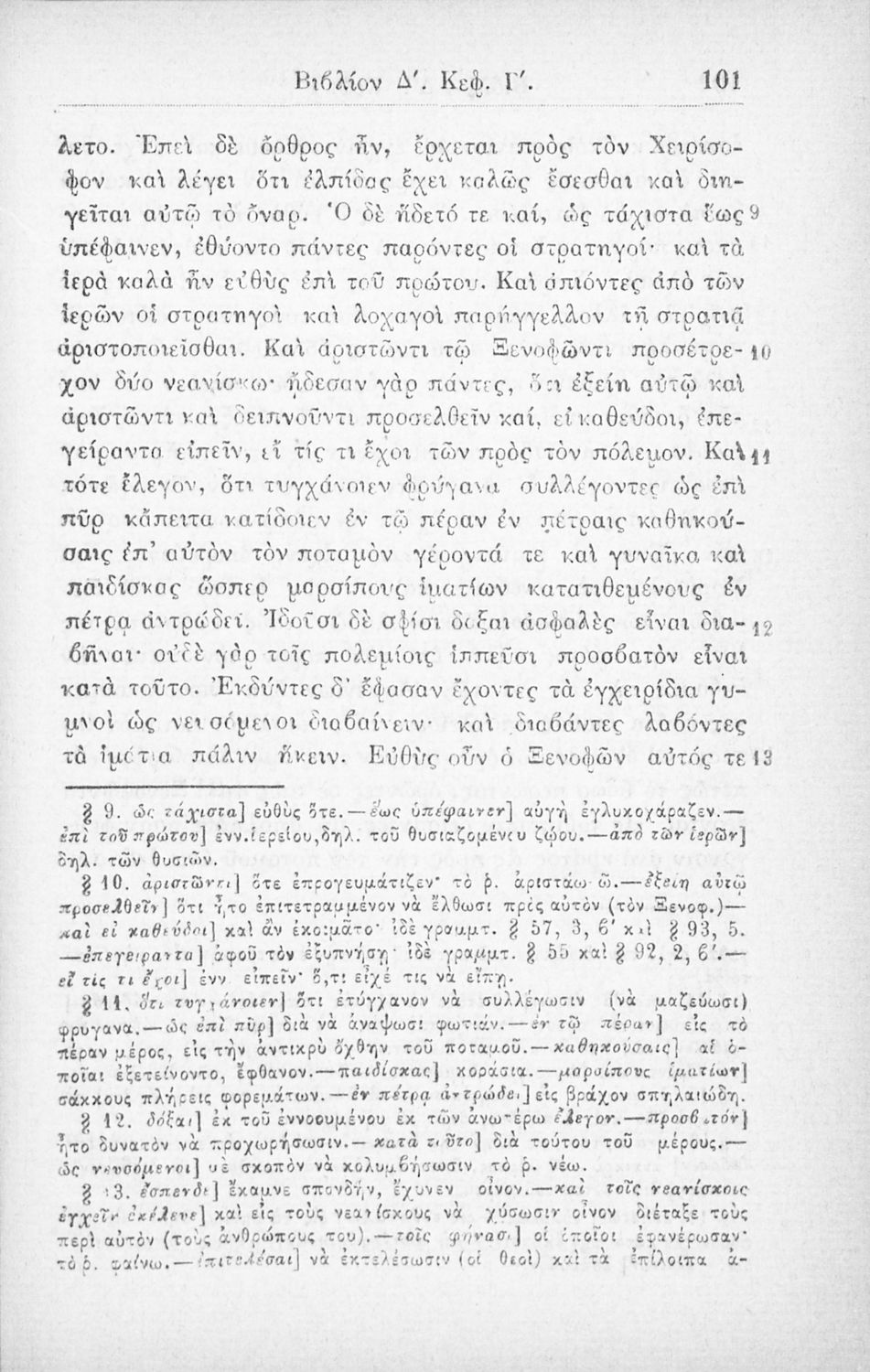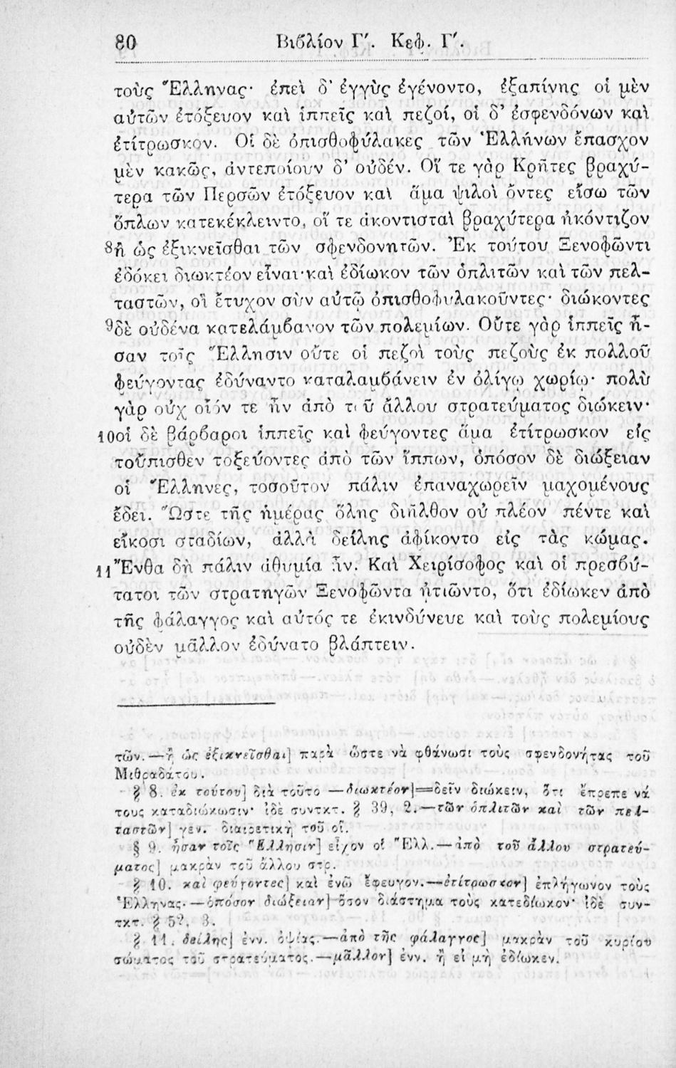 Σχολικό εγχειρίδιο Αρχαίων Ελληνικών για τα Ελληνικά Σχολεία και Παρθεναγωγεία που περιλαμβάνει αποσπάσματα από το έργο του Ξενοφώντα Κύρου Ανάβασις, και λεξικογραφικές παρατηρήσεις.