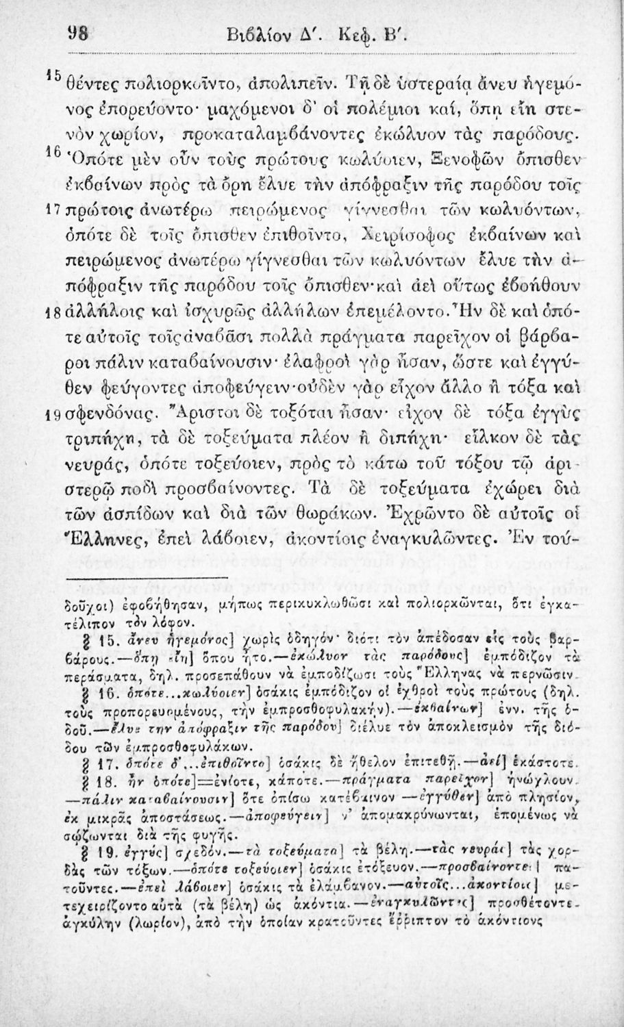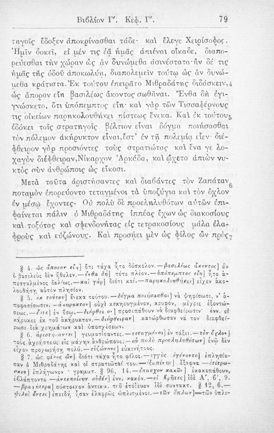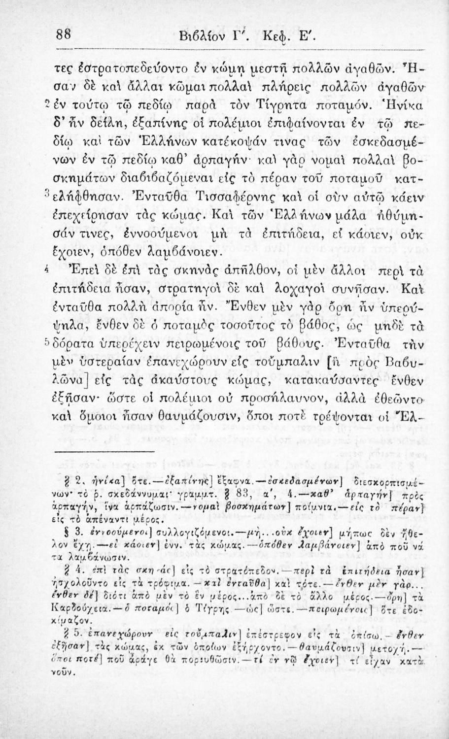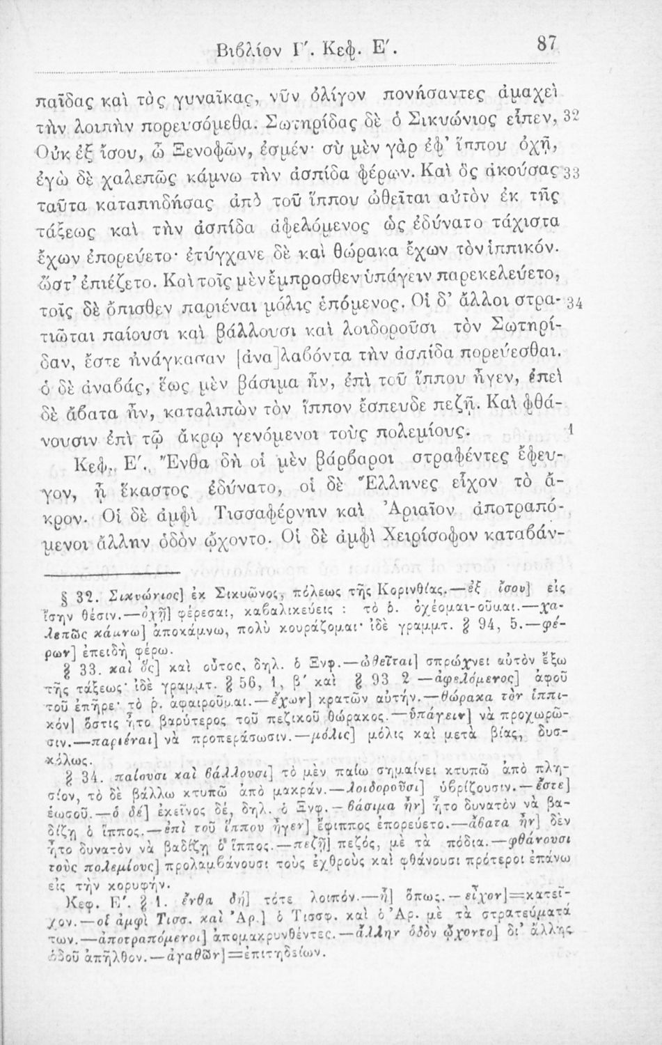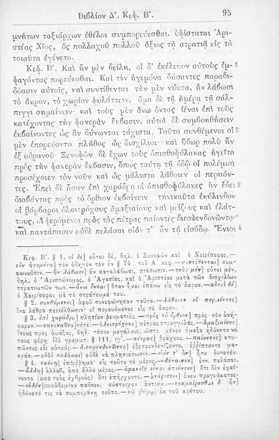 Σχολικό εγχειρίδιο Αρχαίων Ελληνικών για τα Ελληνικά Σχολεία και Παρθεναγωγεία που περιλαμβάνει αποσπάσματα από το έργο του Ξενοφώντα Κύρου Ανάβασις, και λεξικογραφικές παρατηρήσεις.