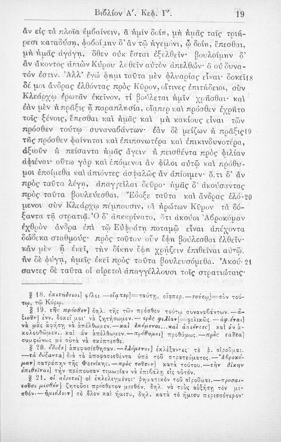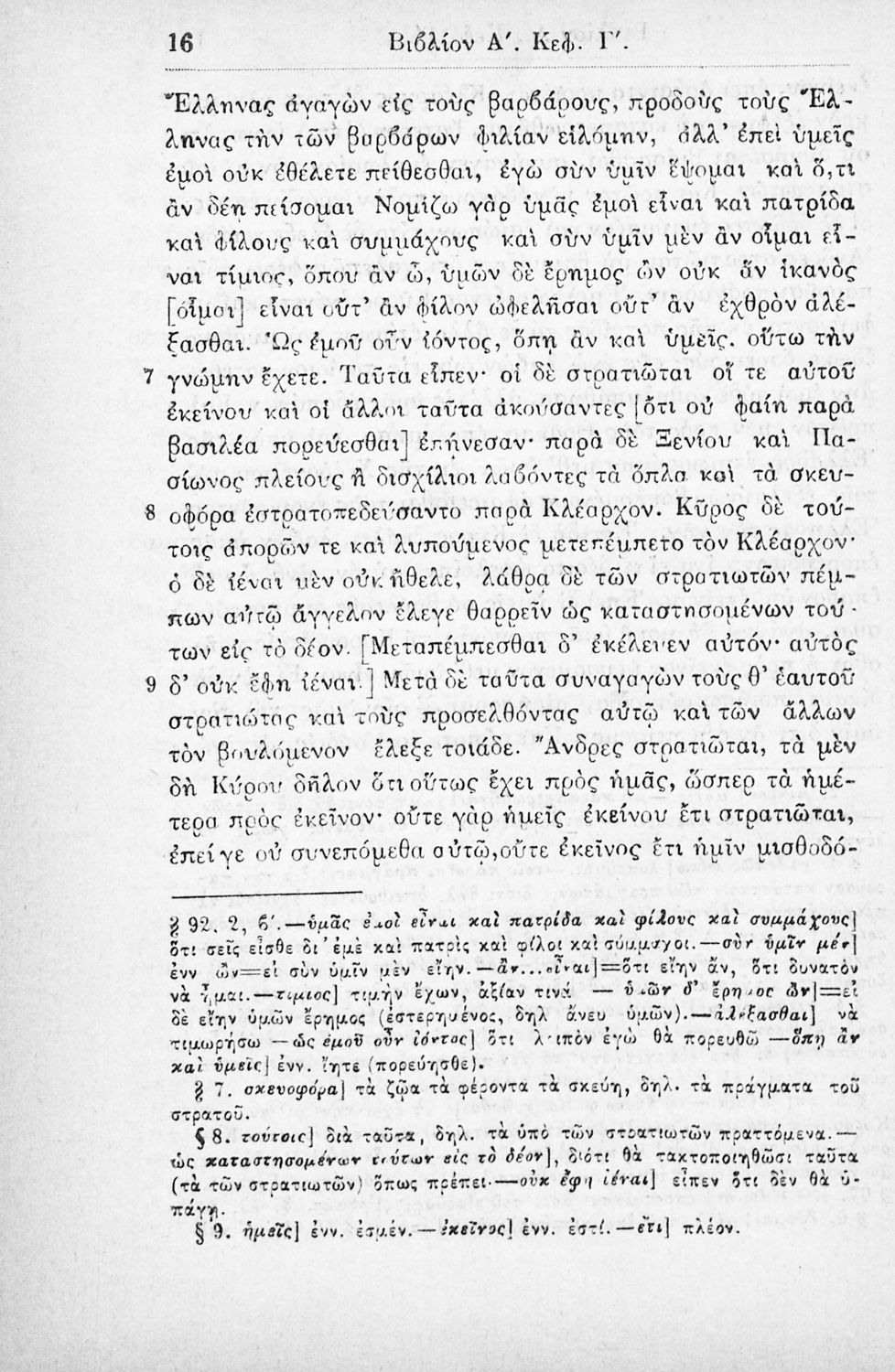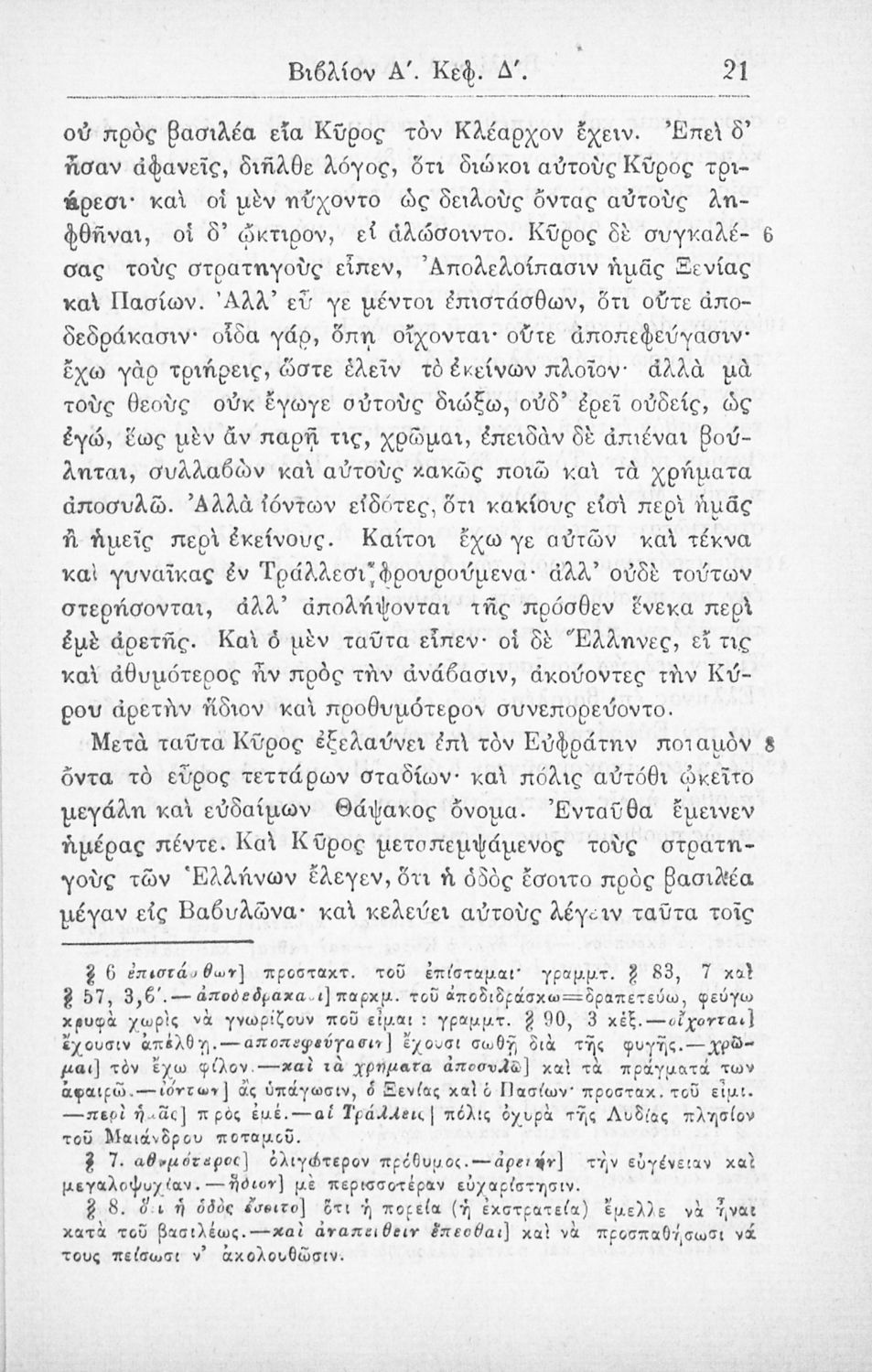 Σχολικό εγχειρίδιο Αρχαίων Ελληνικών για τα Ελληνικά Σχολεία και Παρθεναγωγεία που περιλαμβάνει αποσπάσματα από το έργο του Ξενοφώντα Κύρου Ανάβασις, και λεξικογραφικές παρατηρήσεις.
