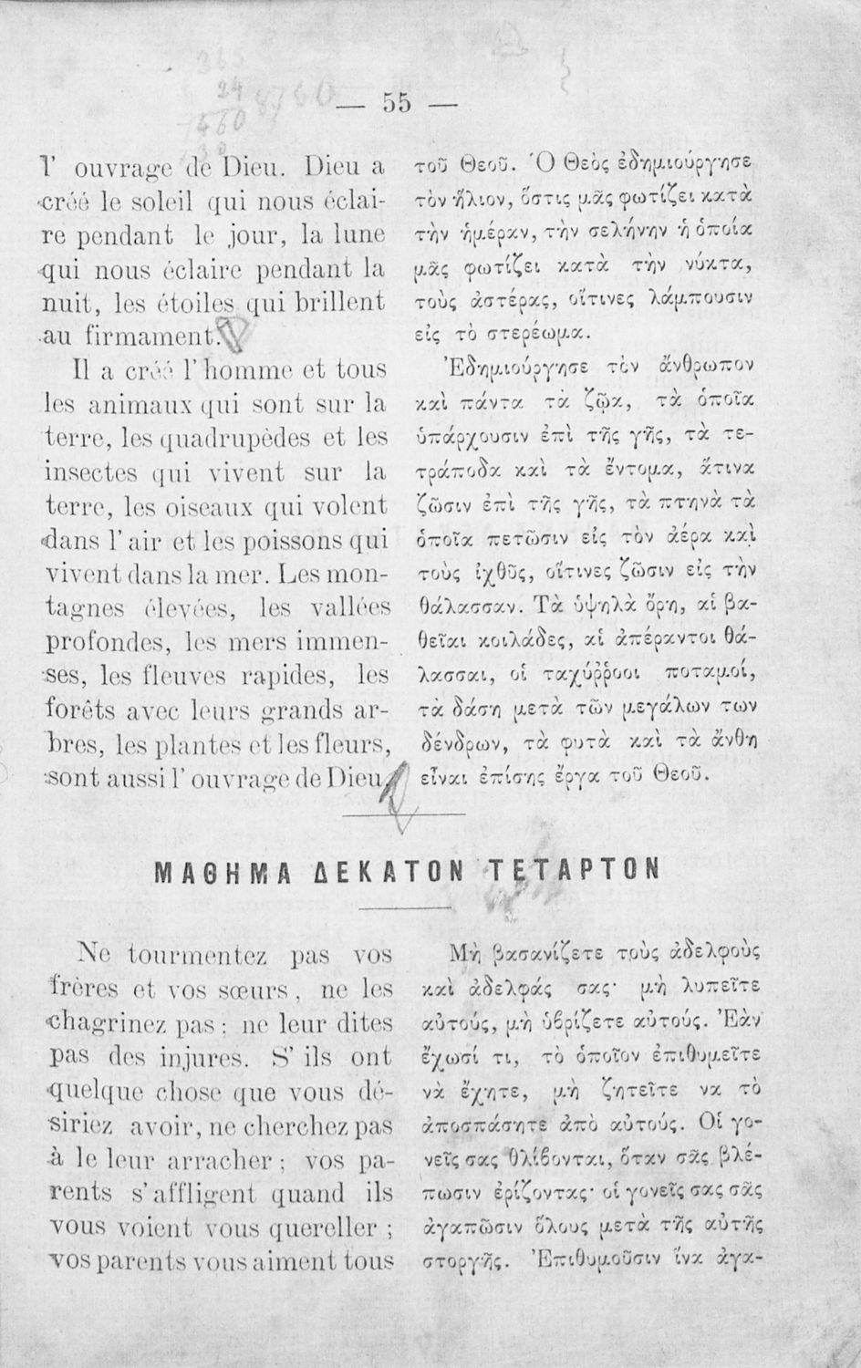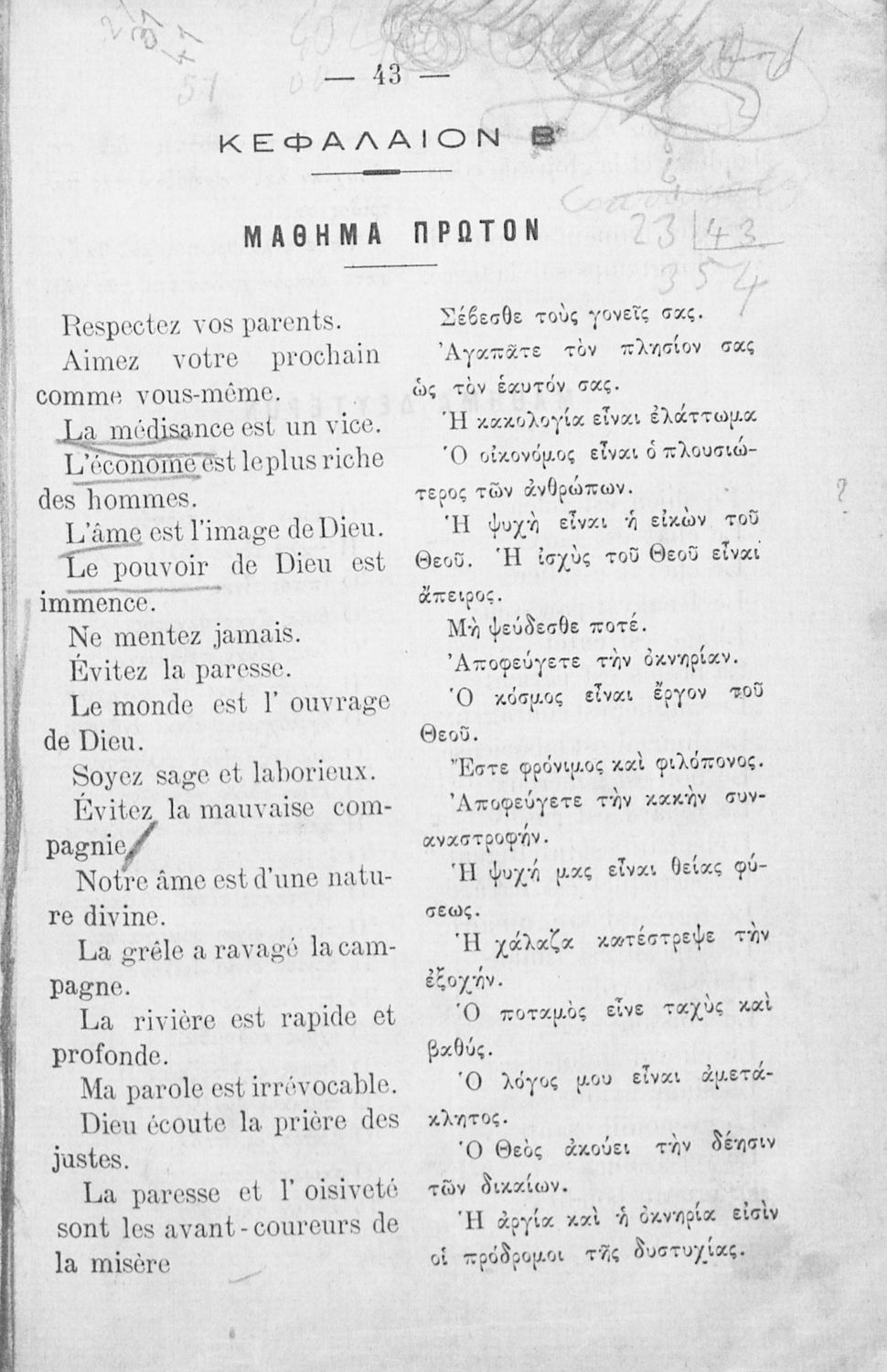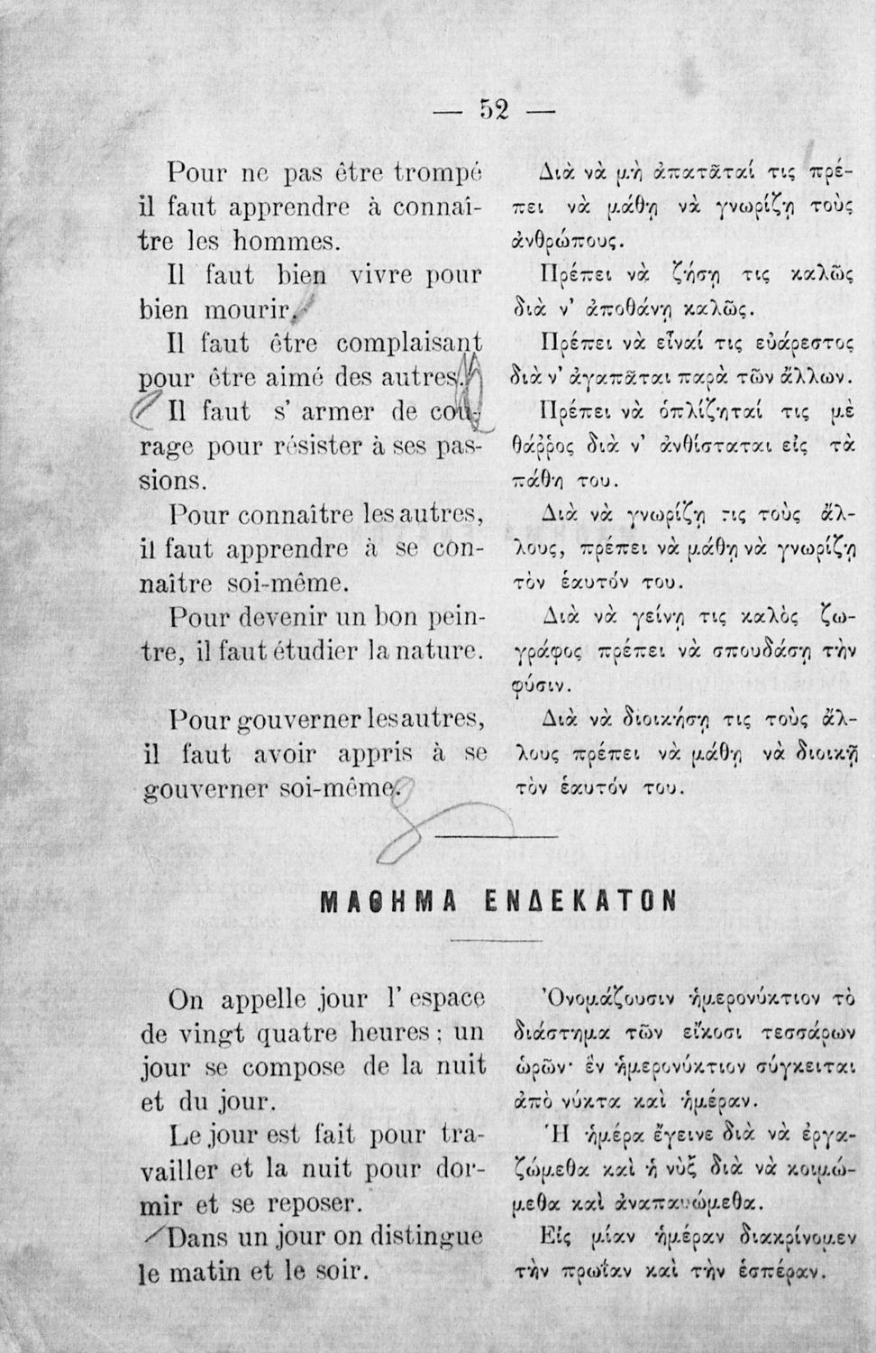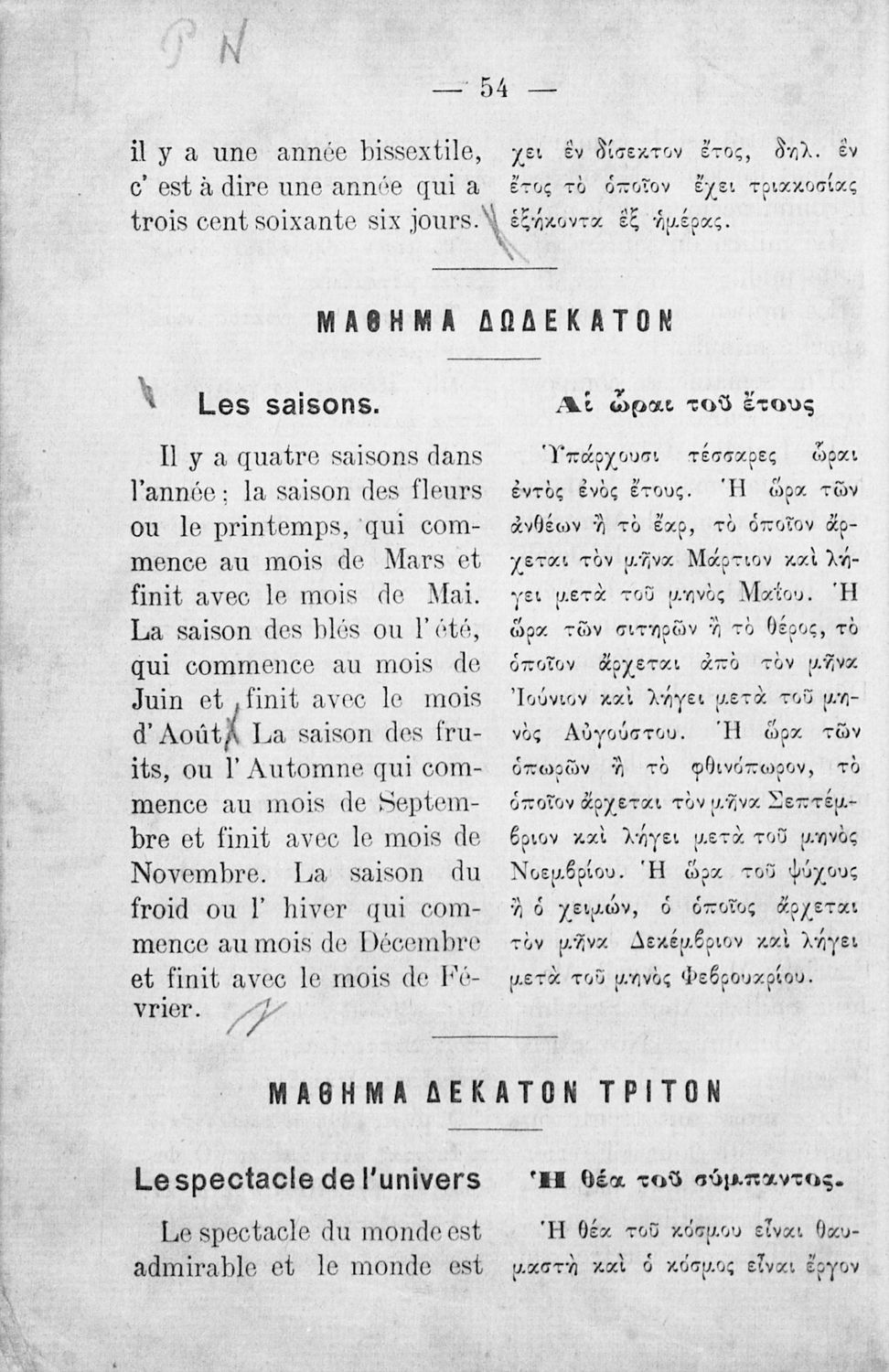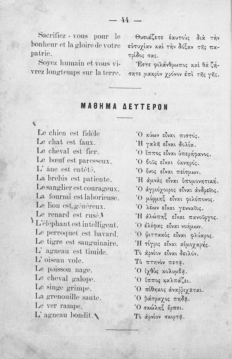 Αναγνωστικό Γαλλικών που περιλαμβάνει κείμενα στα γαλλικά και ελληνικά, θεωρία και λεξιλόγιο.