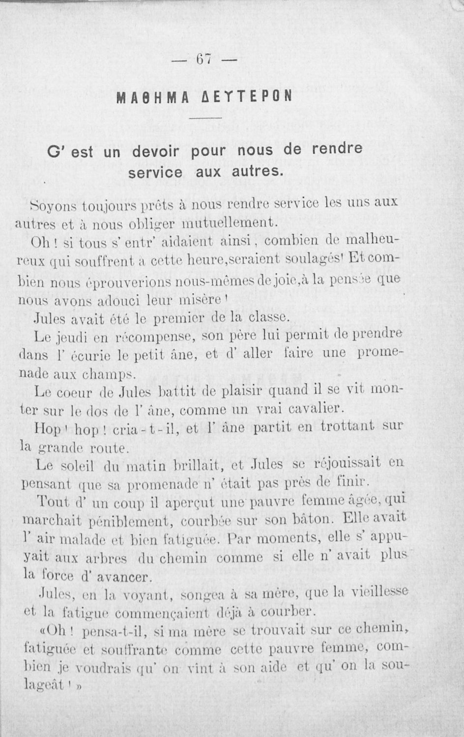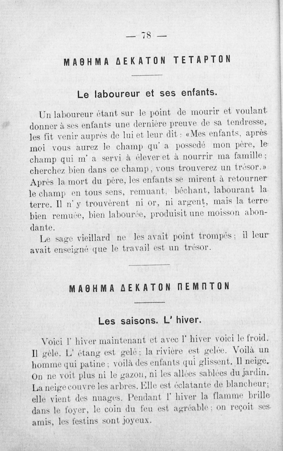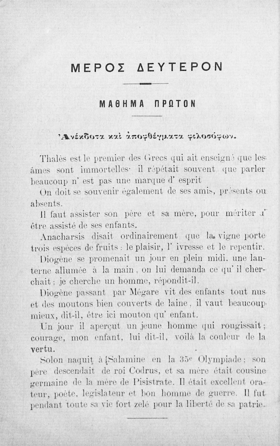 Αναγνωστικό Γαλλικών που περιλαμβάνει κείμενα στα γαλλικά και ελληνικά, θεωρία και λεξιλόγιο.