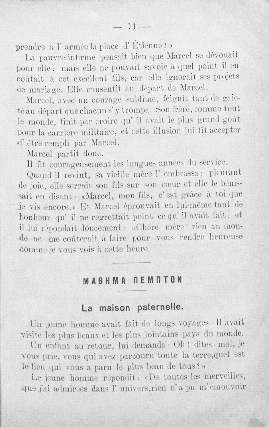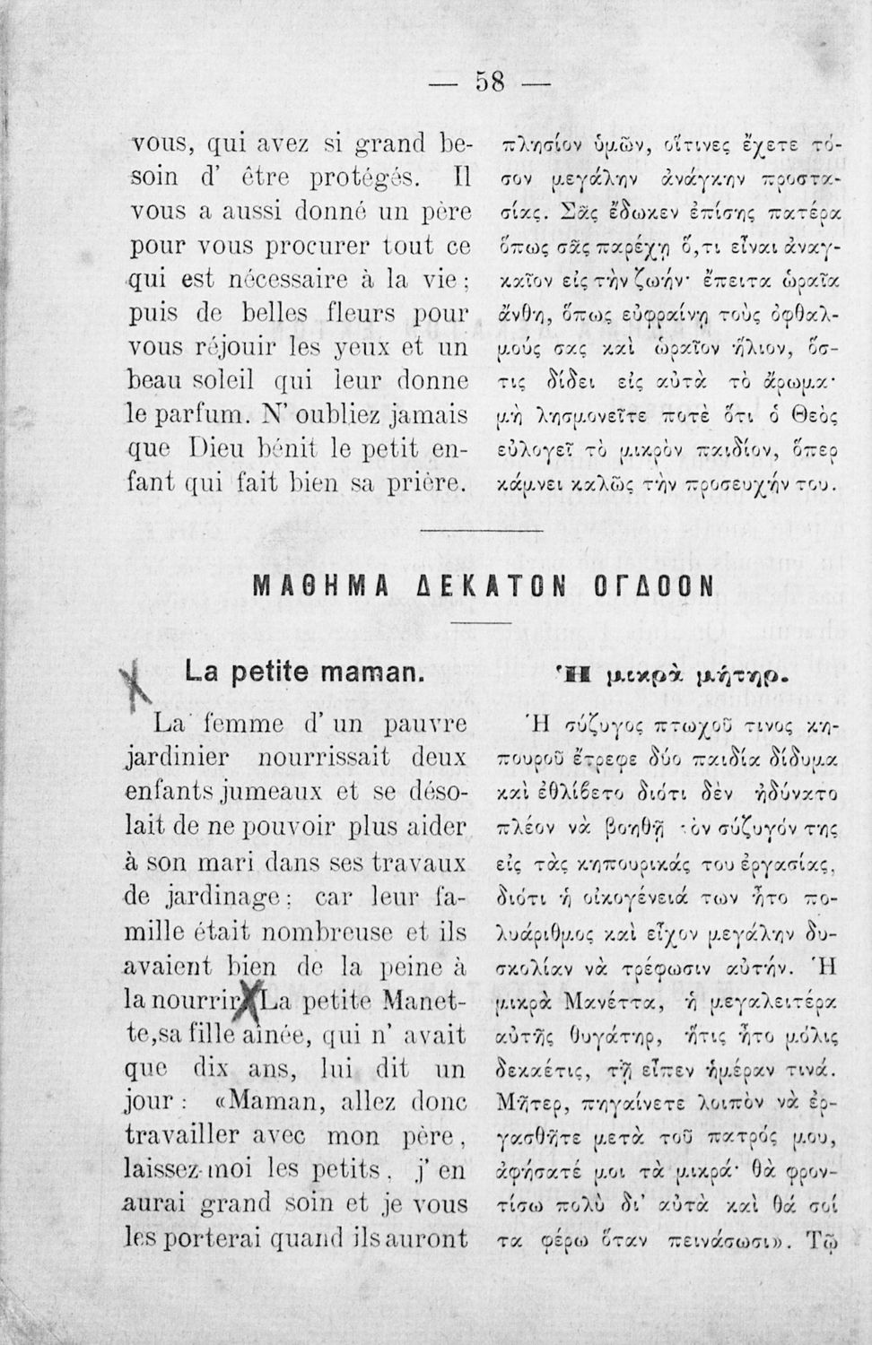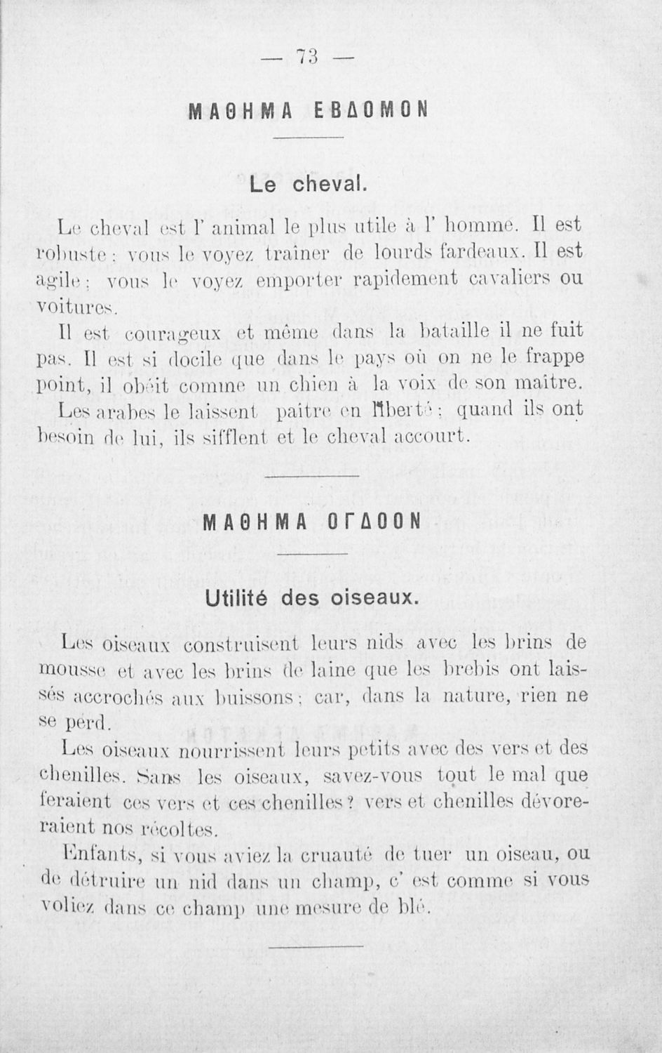 Αναγνωστικό Γαλλικών που περιλαμβάνει κείμενα στα γαλλικά και ελληνικά, θεωρία και λεξιλόγιο.