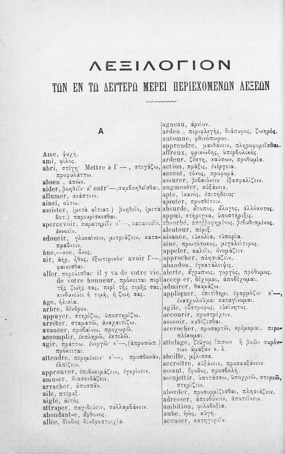 Μαθητικό βοήθημα Αρχαίων Ελληνικών για τα Ελληνικά Σχολεία, Παρθεναγωγεία και Γυμνάσια που περιλαμβάνει γραμματική της αρχαίας ελληνικής και κατάλογο ανωμάλων ρημάτων.