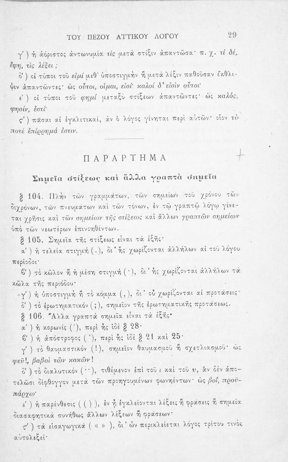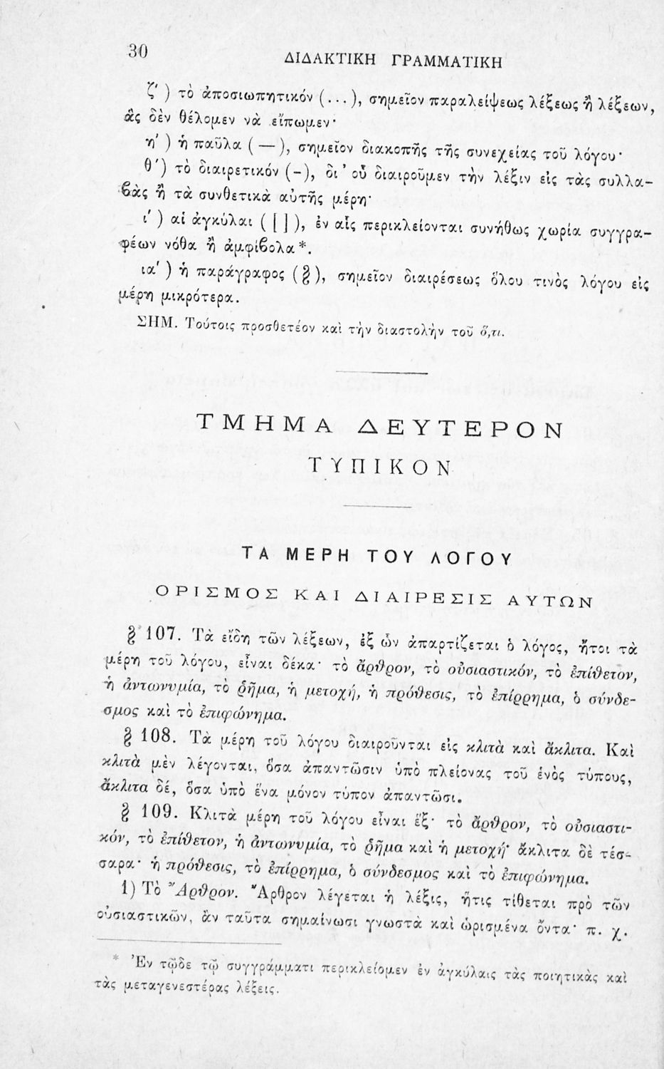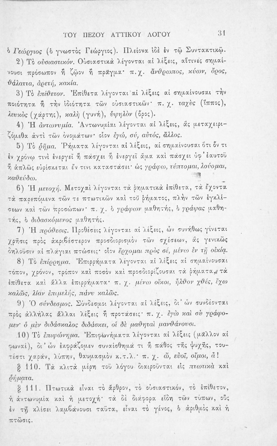 Σχολικό εγχειρίδιο Αρχαίων Ελληνικών για τους μαθητές των Ελληνικών Σχολείων και Παρθεναγωγείων που εξετάζει τα μέρη του λόγου και την σύνταξή τους.