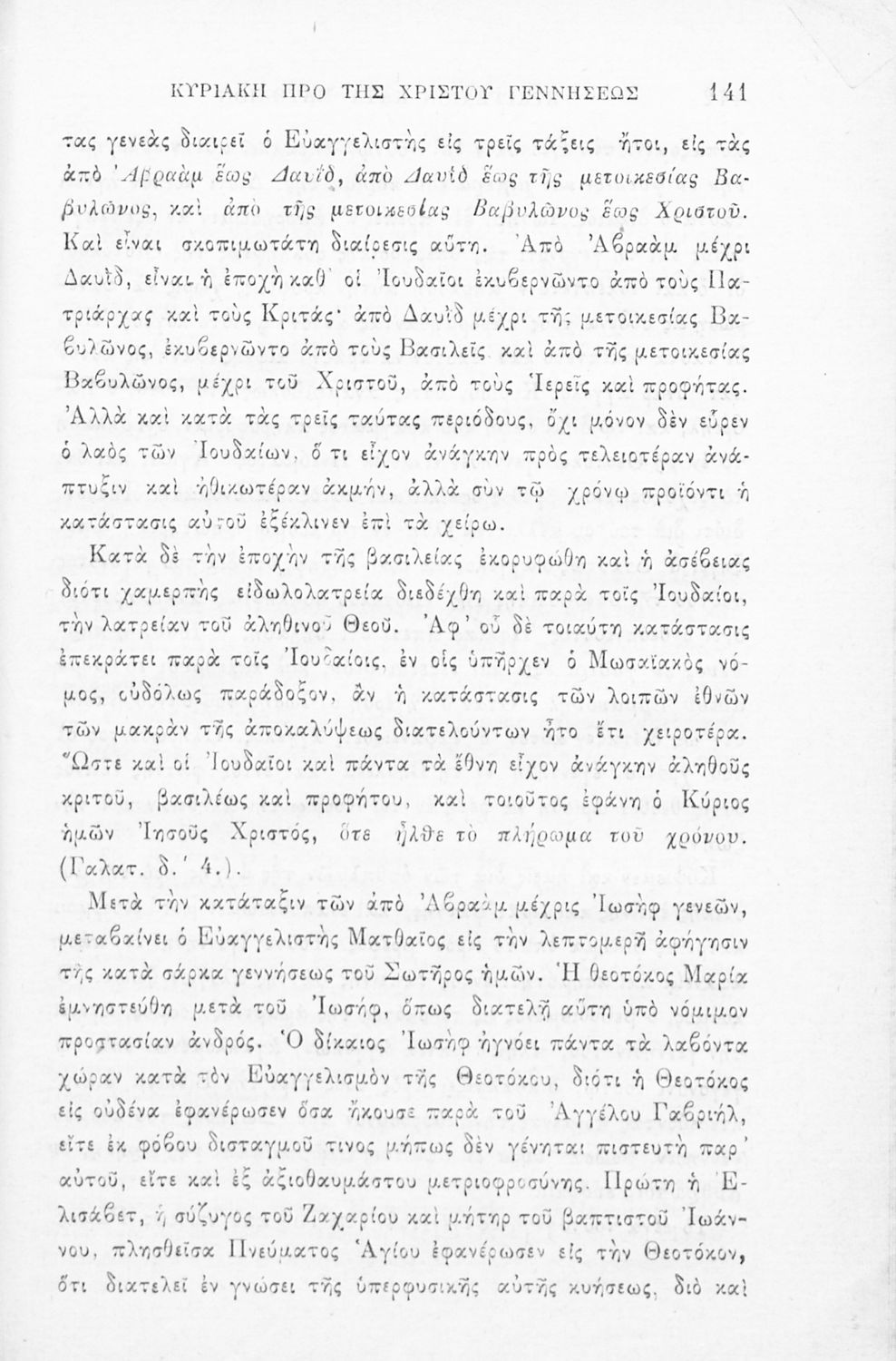 Σχολικό εγχειρίδιο Θρησκευτικών για τα Γυμνάσια, τα Διδασκαλεία και τα Παρθεναγωγεία που περιλαμβάνει αποσπάσματα από τις πράξεις των Αποστόλων, περικοπές ύμνων και ψαλμωδιών και επιστολές του Αποστόλου Παύλου.