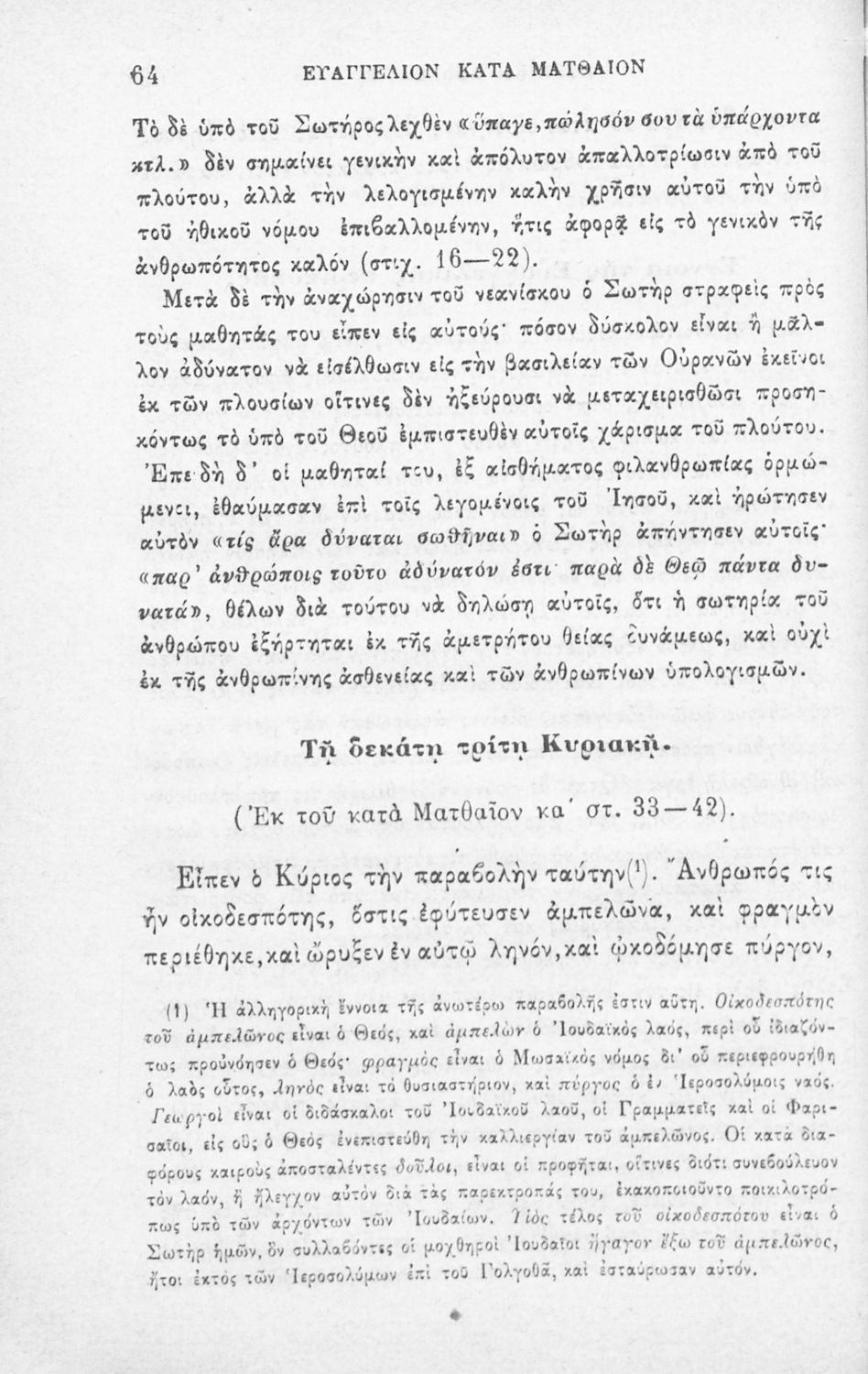 Ερμηνεία των κατά τας Κυριακάς αναγνωσκομένων ευαγγελικών περικοπών προς χρήσιν των μαθητών των Γυμνασίων