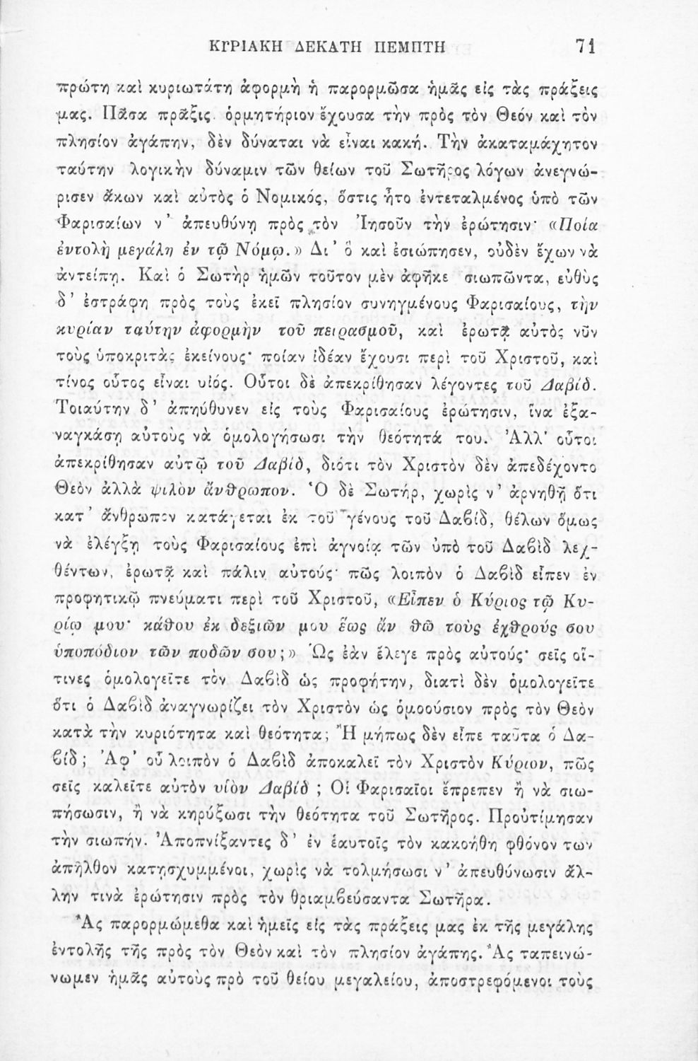 Σχολικό εγχειρίδιο Θρησκευτικών για τα Γυμνάσια, τα Διδασκαλεία και τα Παρθεναγωγεία που περιλαμβάνει αποσπάσματα από τις πράξεις των Αποστόλων, περικοπές ύμνων και ψαλμωδιών και επιστολές του Αποστόλου Παύλου.