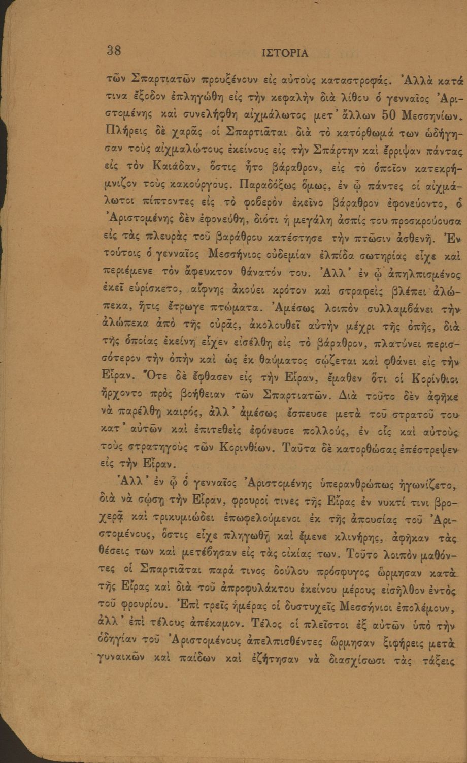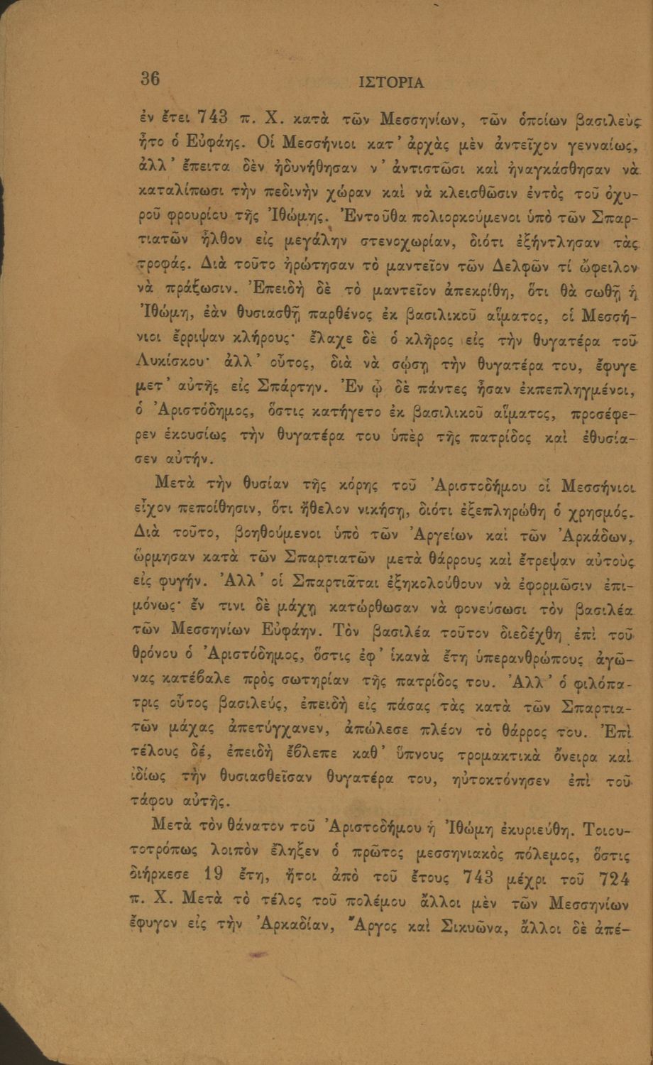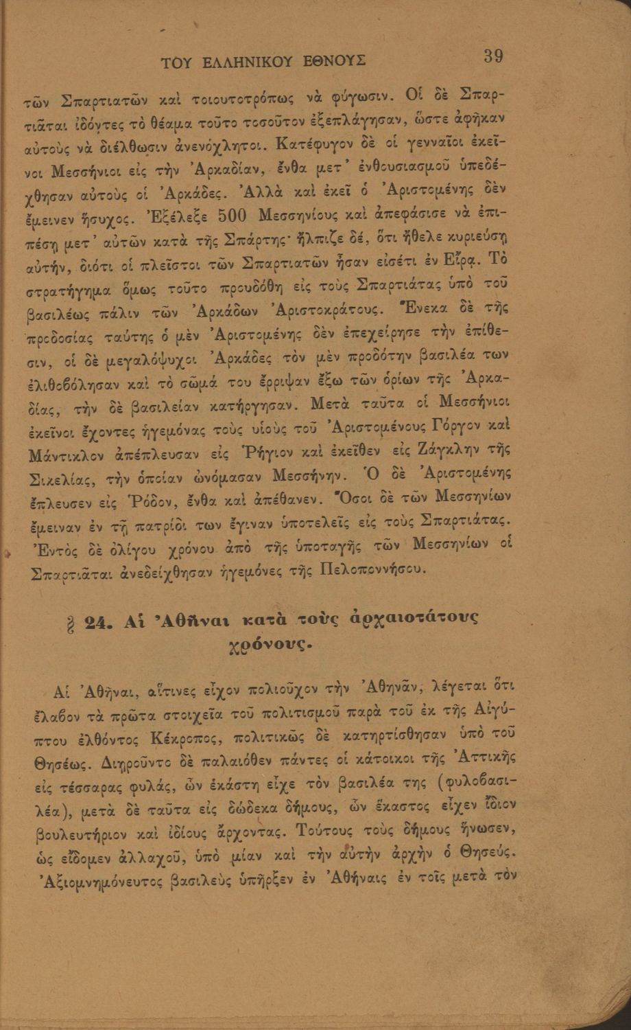 Σχολικό εγχειρίδιο Ιστορίας Α΄ Ελληνικού και Παρθεναγωγείου που καλύπτει την περίοδο από τους μυθικούς και ηρωικούς χρόνους μέχρι την μάχη της Μαντινείας και τον θάνατο του Επαμεινώνδα.