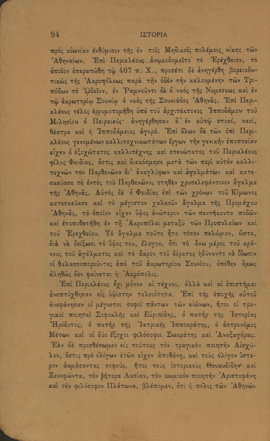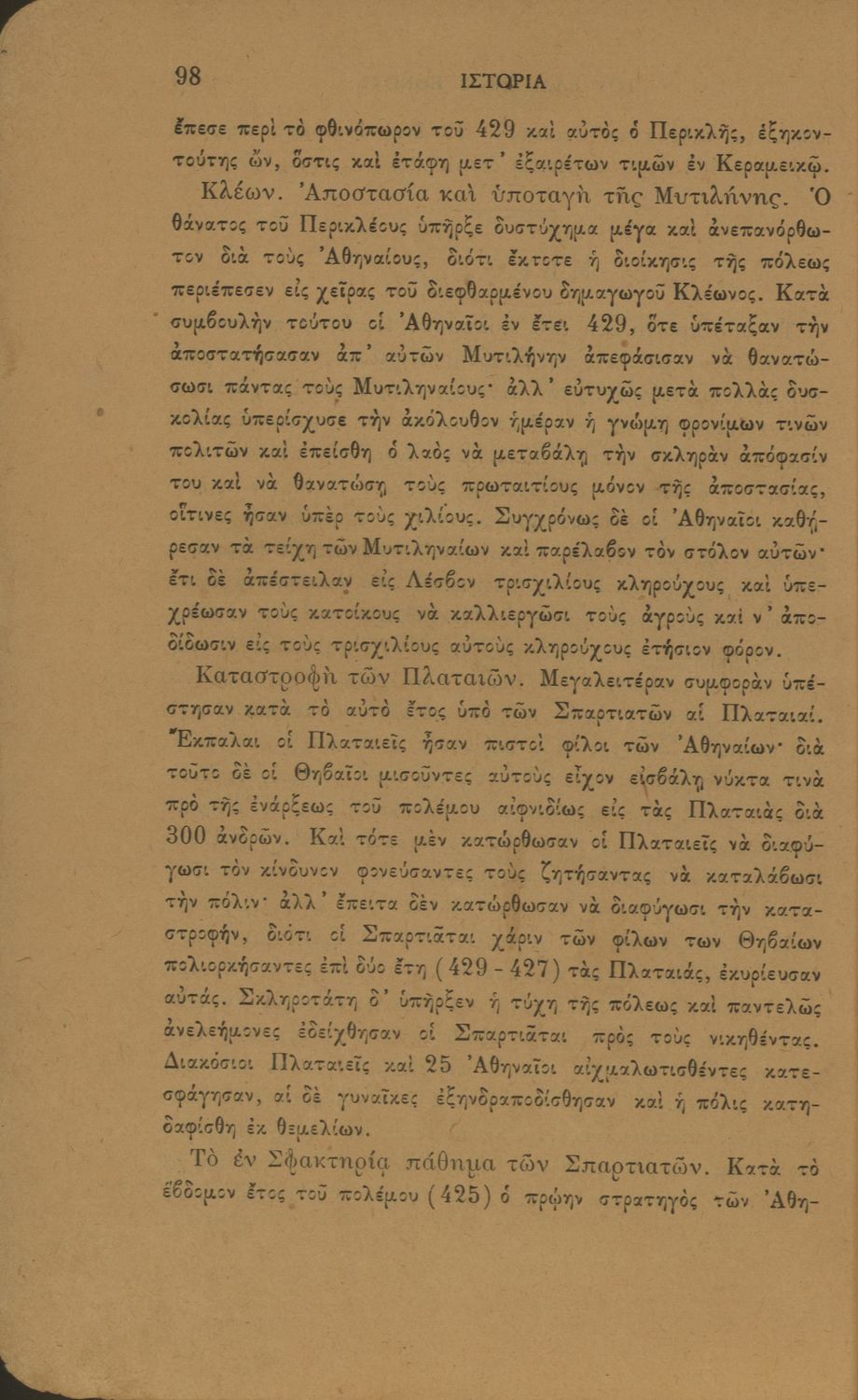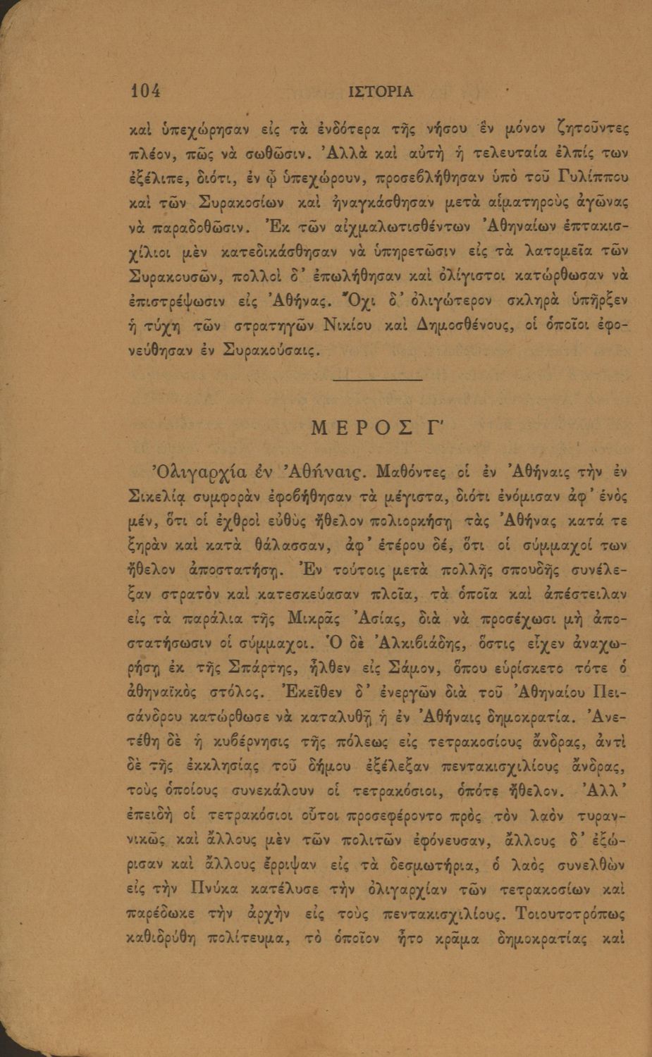 Σχολικό εγχειρίδιο Ιστορίας Α΄ Ελληνικού και Παρθεναγωγείου που καλύπτει την περίοδο από τους μυθικούς και ηρωικούς χρόνους μέχρι την μάχη της Μαντινείας και τον θάνατο του Επαμεινώνδα.
