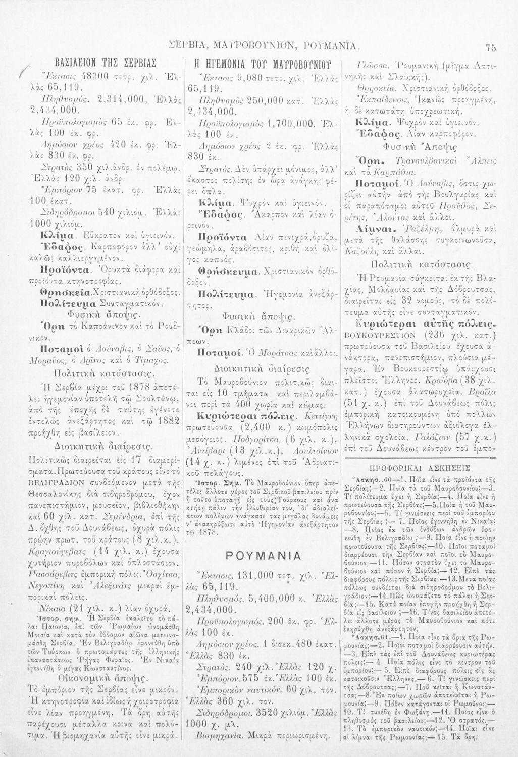 Σχολικό εγχειρίδιο Γεωγραφίας για τους μαθητές των Ελληνικών Σχολείων και Παρθεναγωγείων που περιλαμβάνει μια γενική επισκόπηση της πολιτικής, οικονομικής και φυσικής γεωγραφίας της Ελλάδας και ενδεικτικών ...